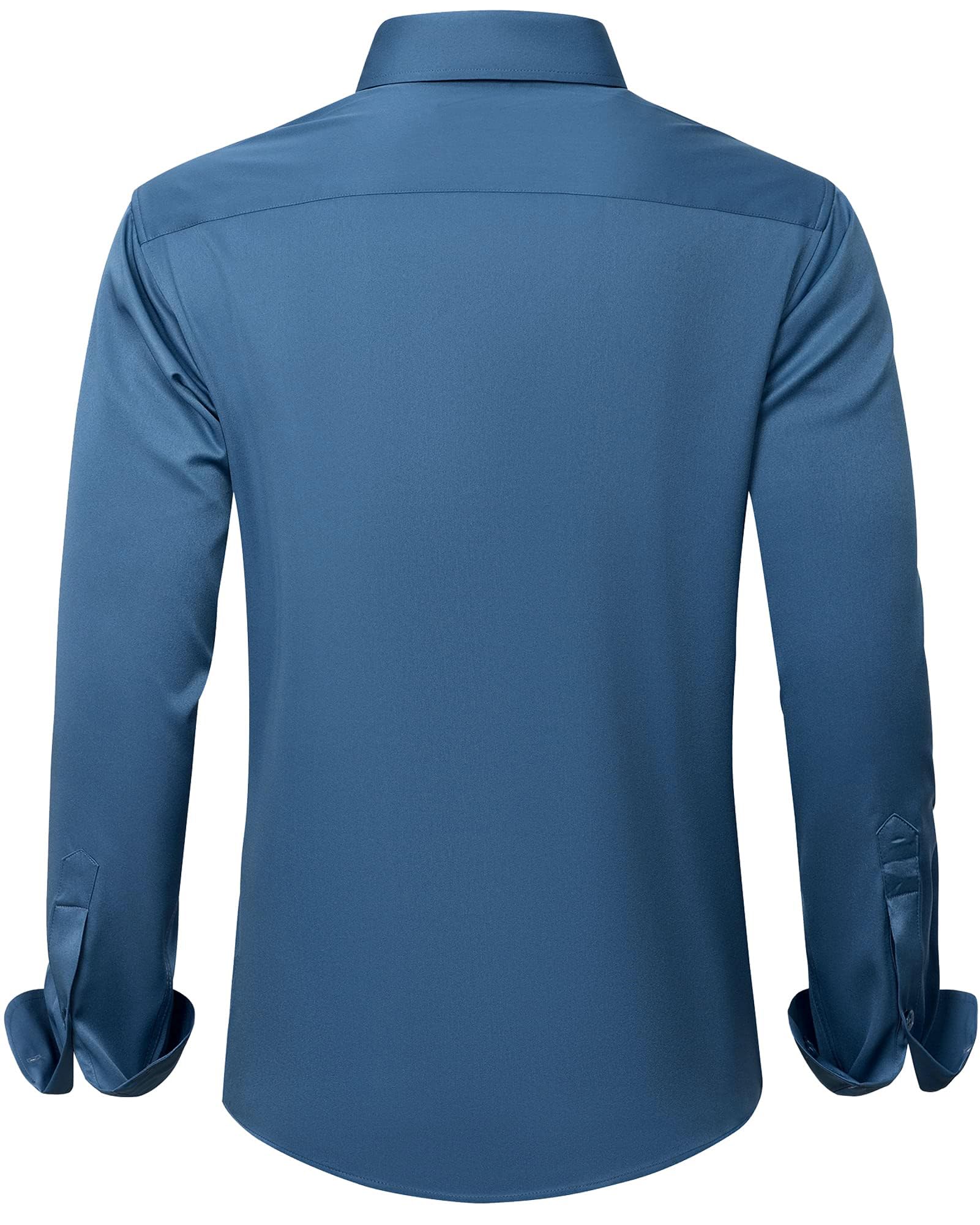 Men's Dress Shirts Solid Long Sleeve Stretch Wrinkle-Free Formal Shirt Business Casual Button Down Shirts