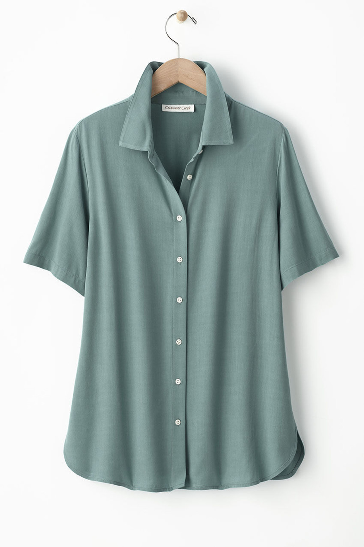 A bestseller for its softness, beautiful drape and casual versatility, our button-front Bistro Shirt is back with a refined feminine fit and longer length. Straight hem with rounded side slits. Imported.