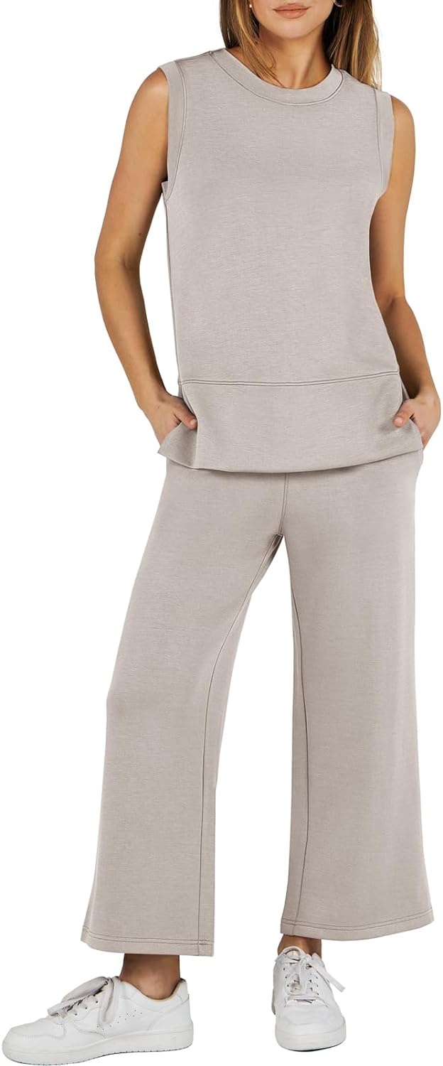 Feature --- Crewneck / Sleeveless / High Waist / Drawstring/ Wide Leg