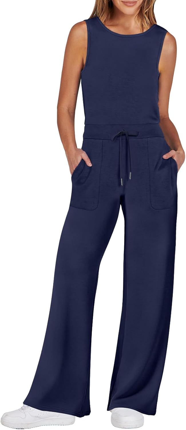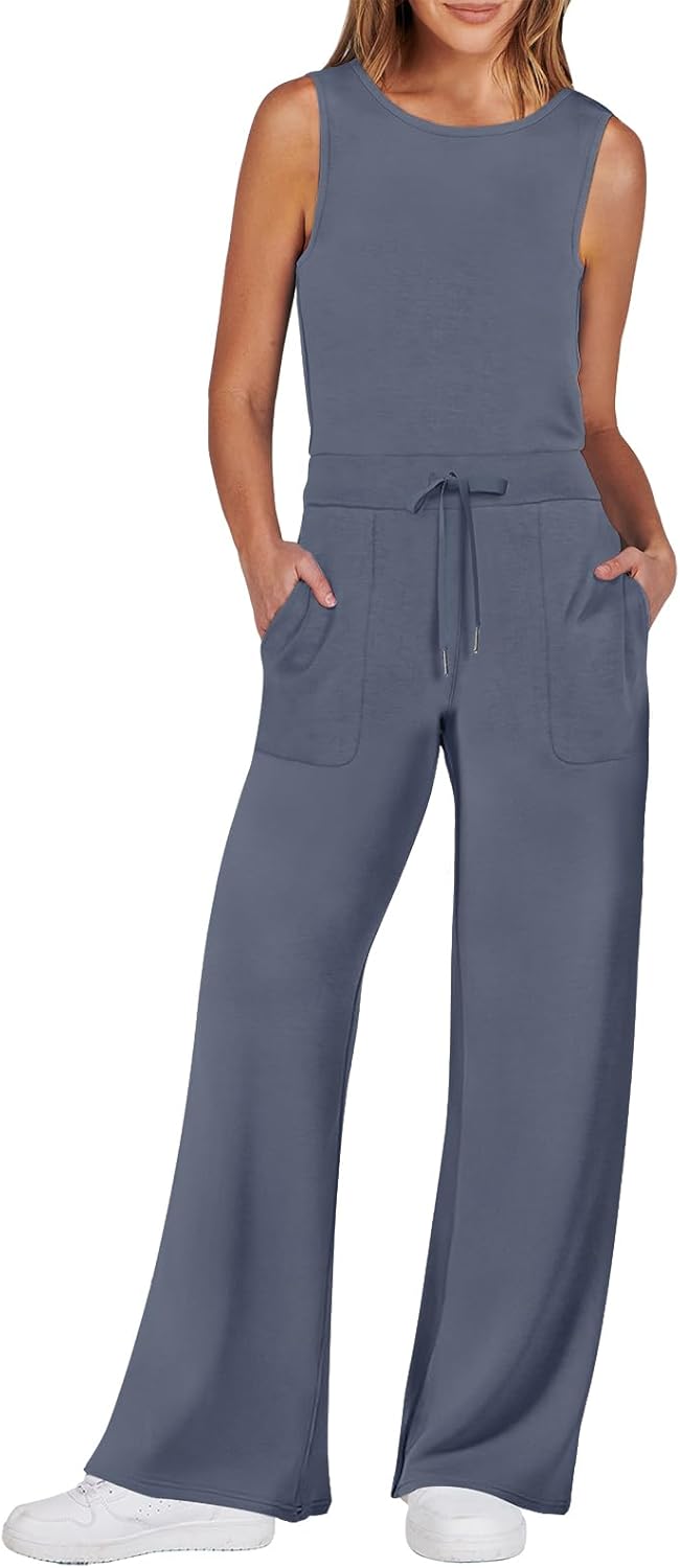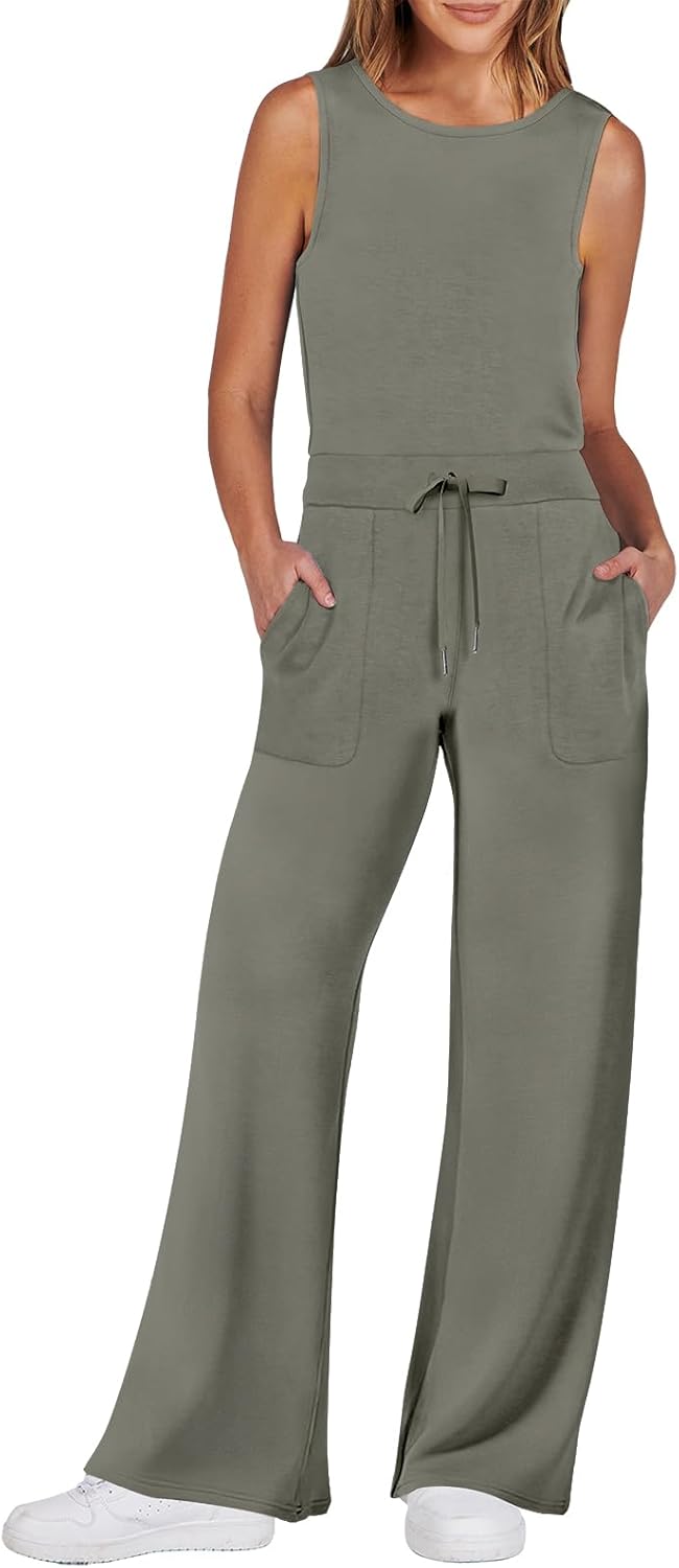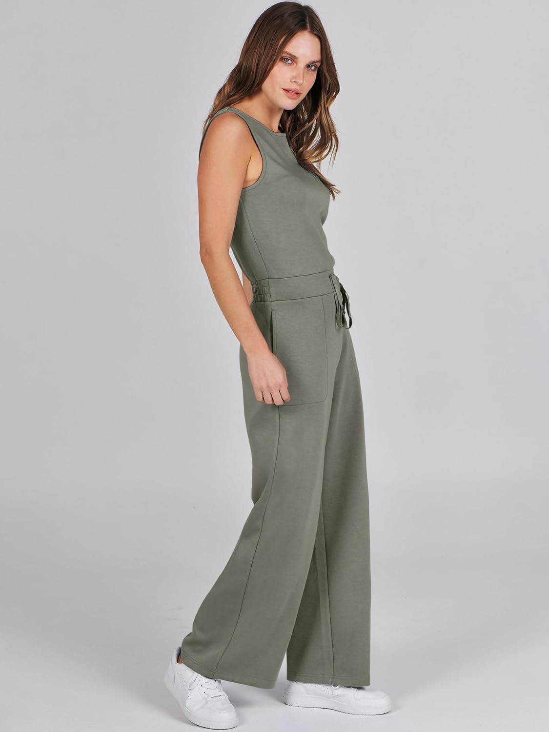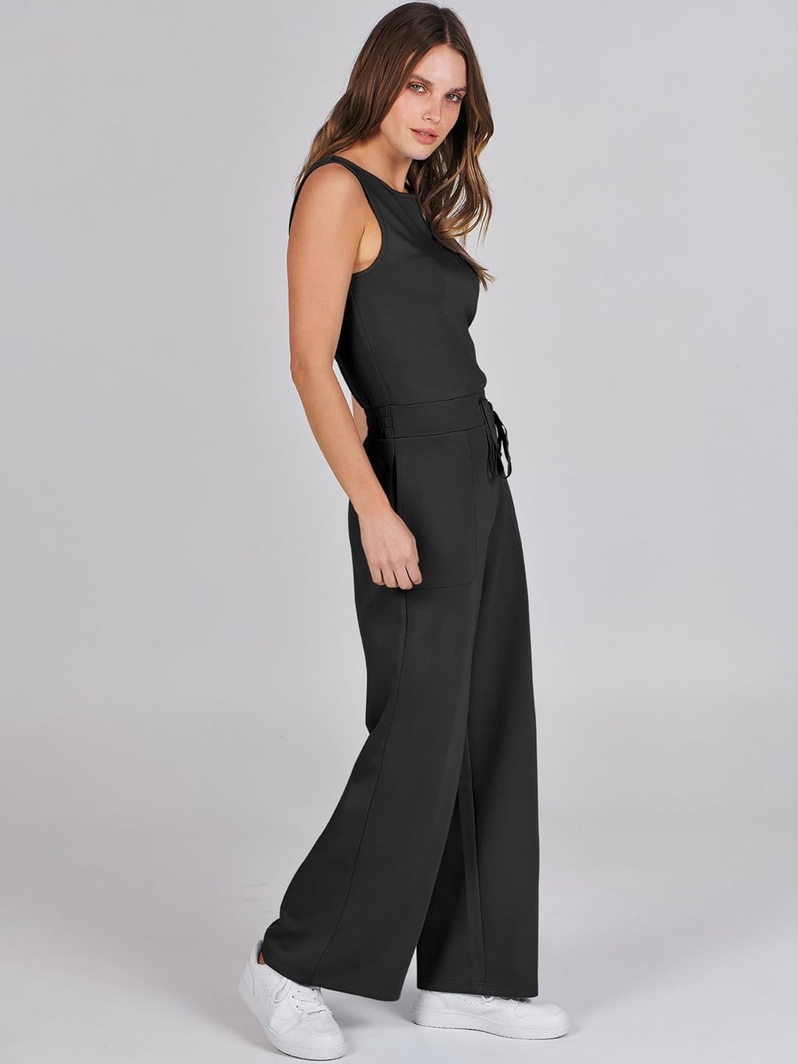 • Womens Jumpsuits 2025 Casual Summer Dressy Romper Sleeveless Wide Leg Long Pants Outfits Fashion Travel Clothes