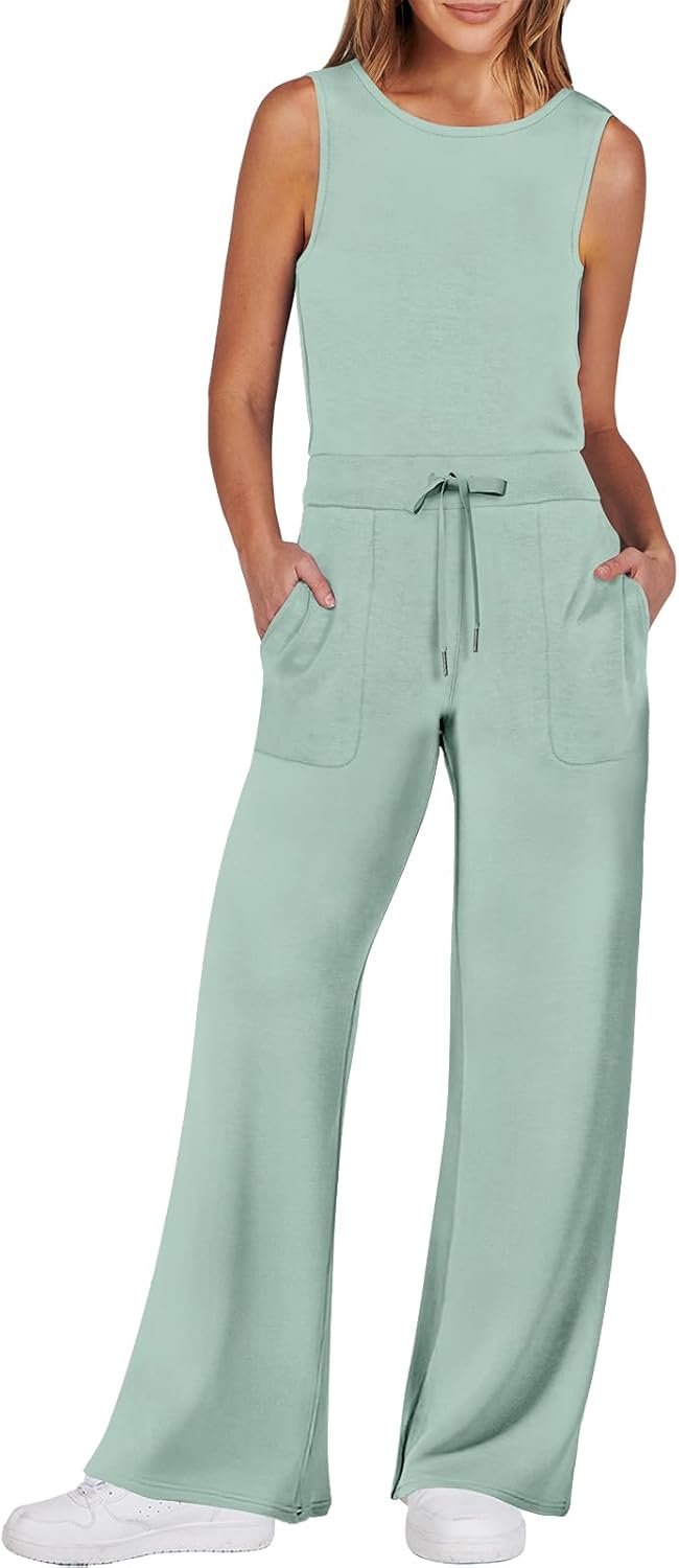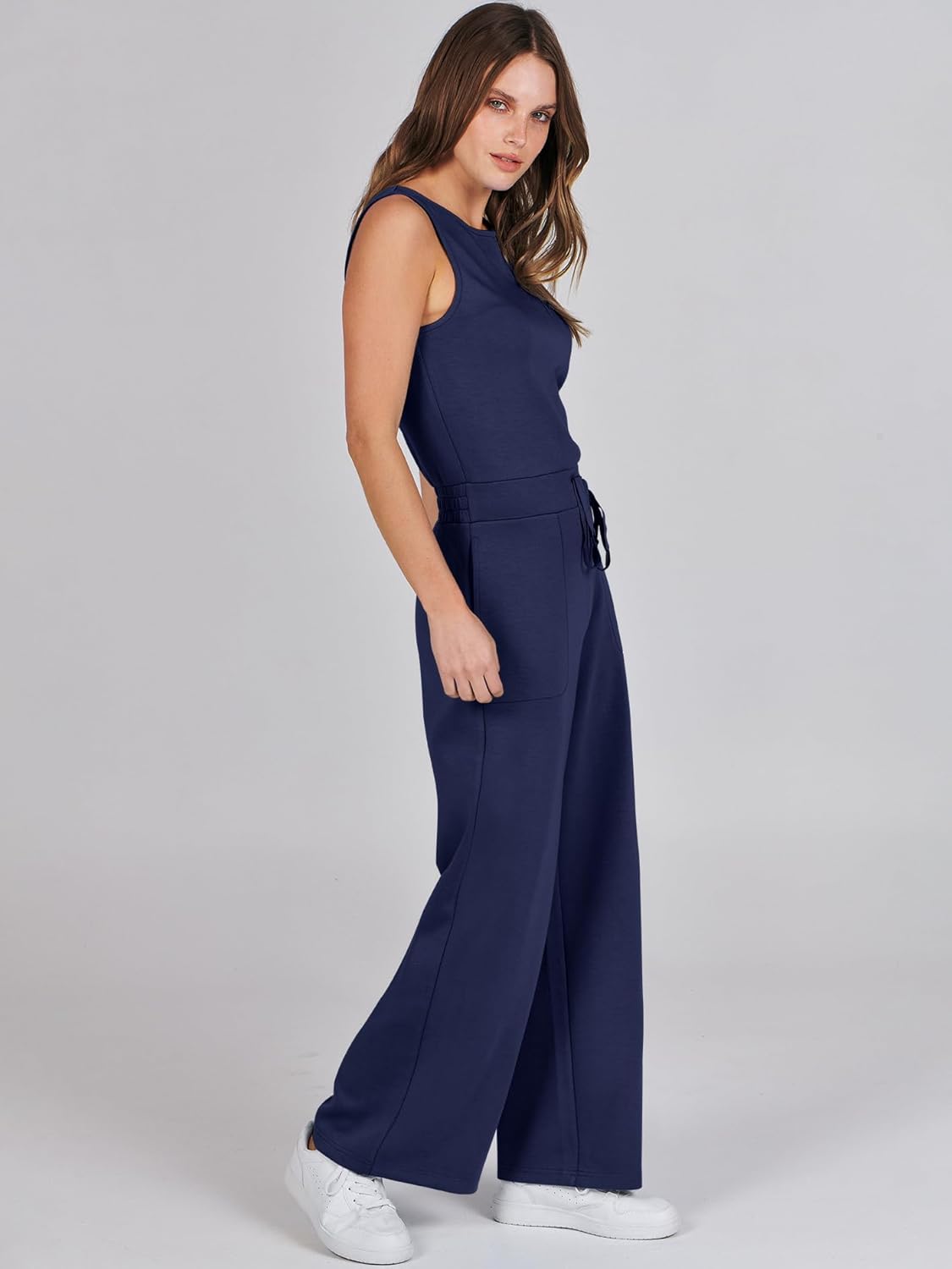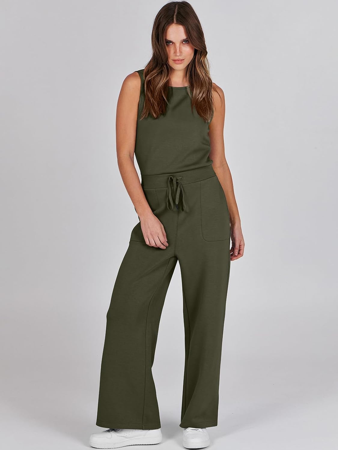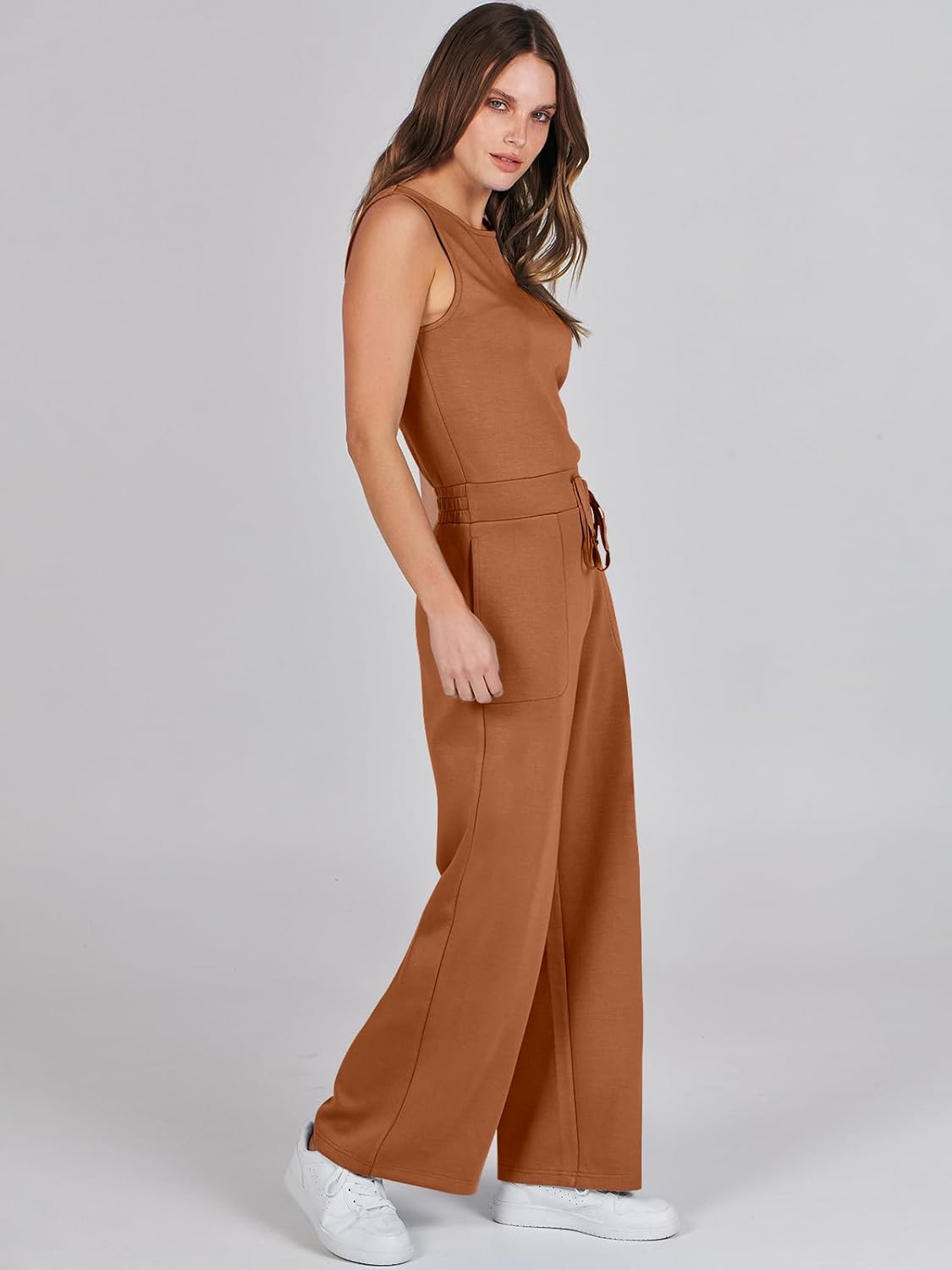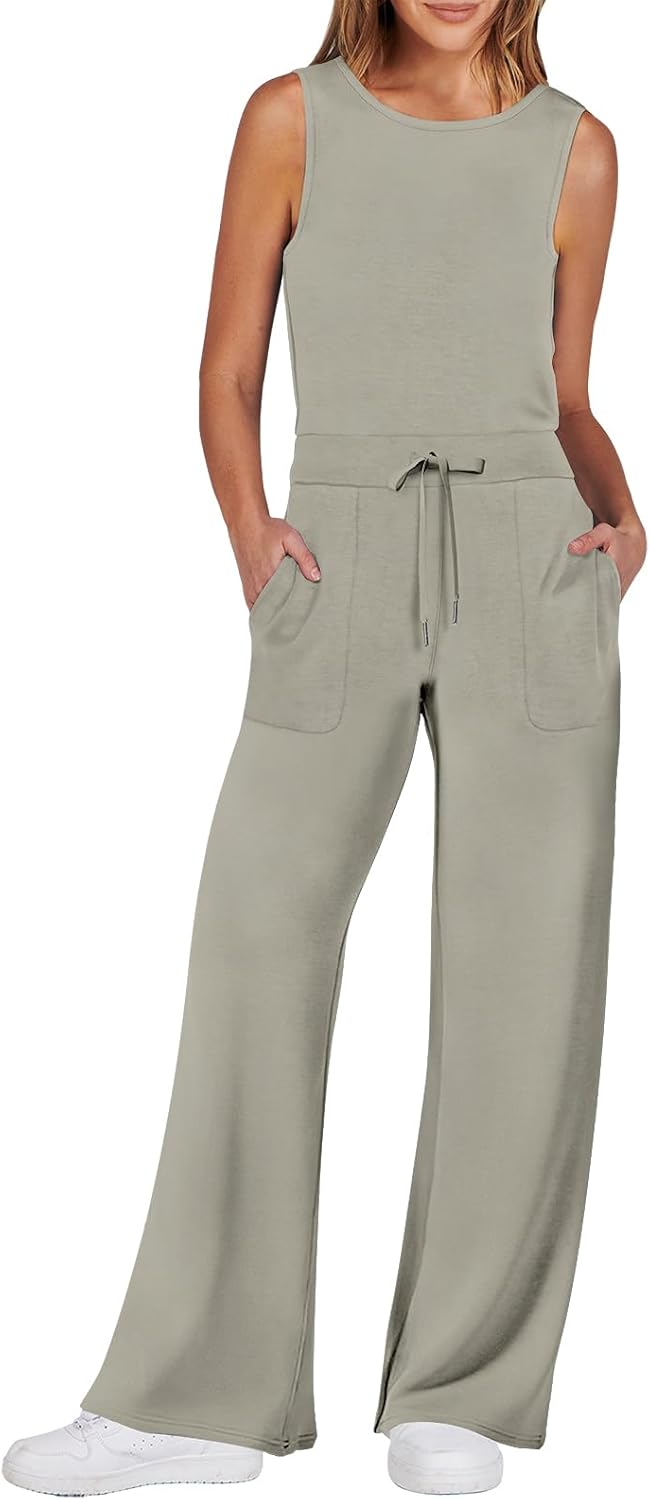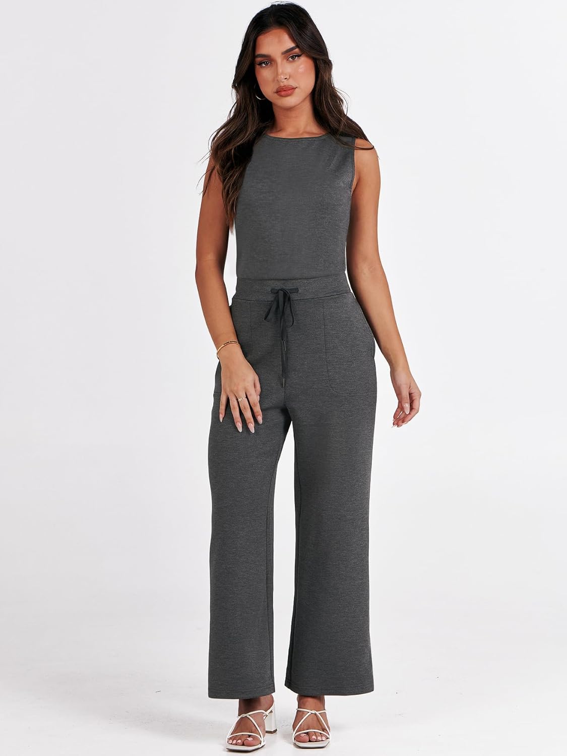 • Womens Jumpsuits 2025 Casual Summer Dressy Romper Sleeveless Wide Leg Long Pants Outfits Fashion Travel Clothes