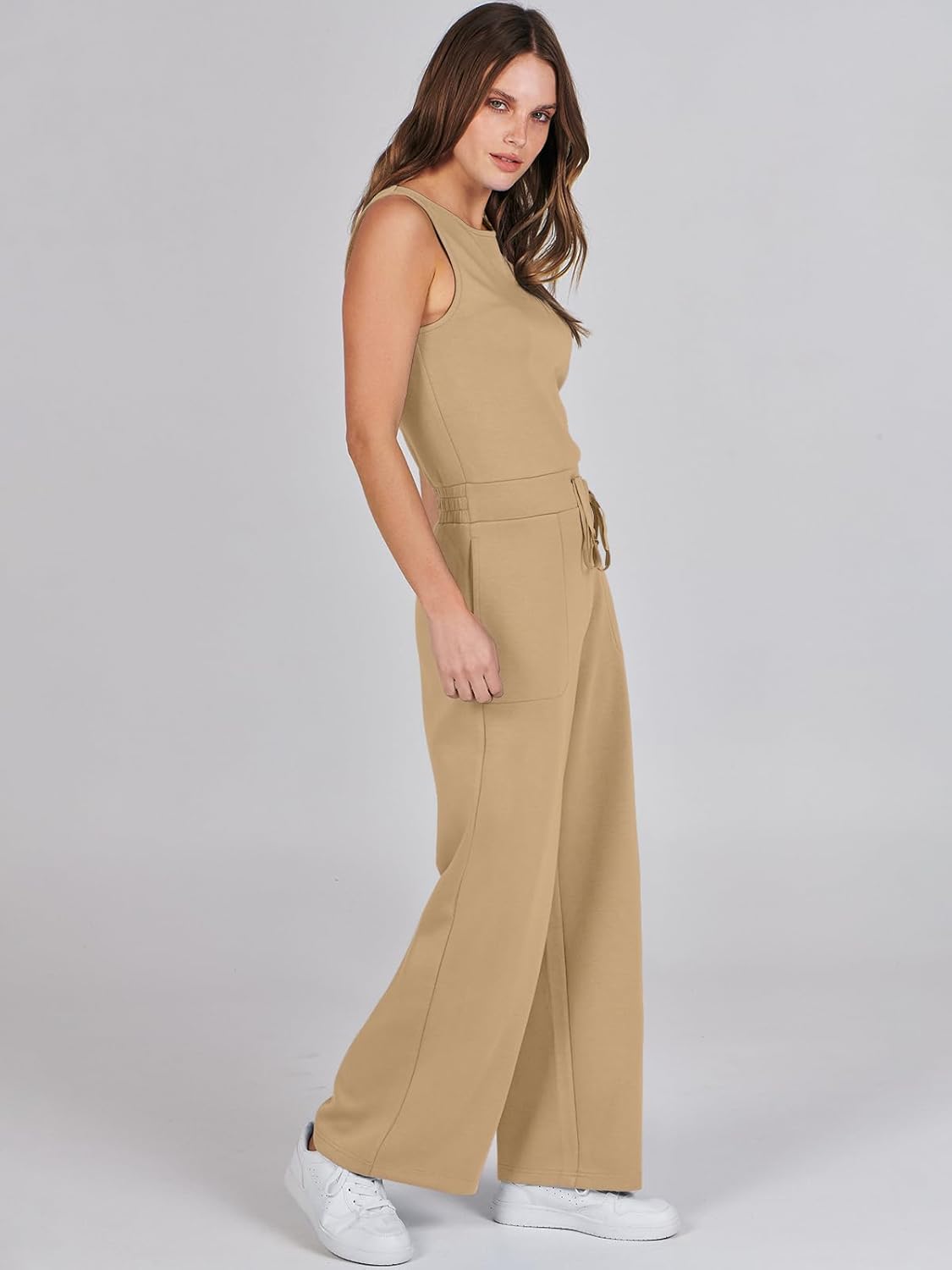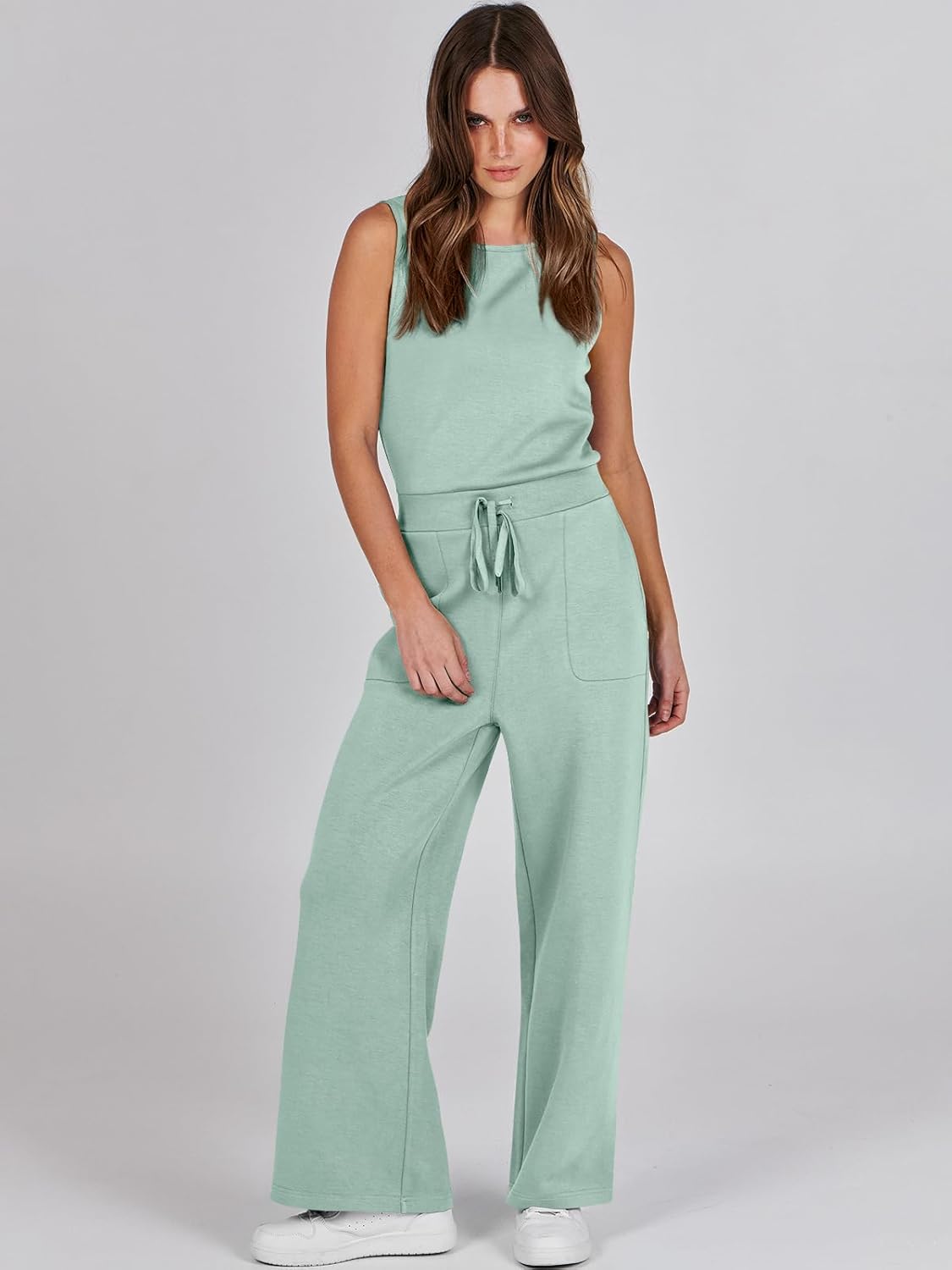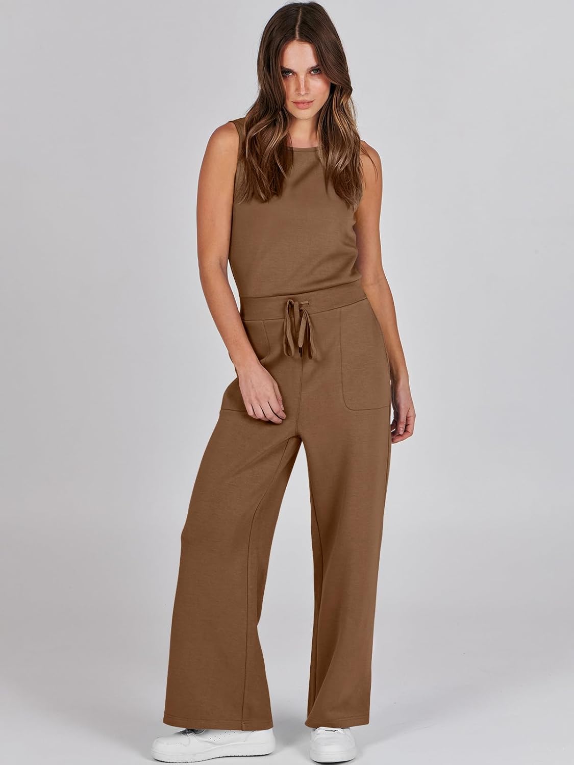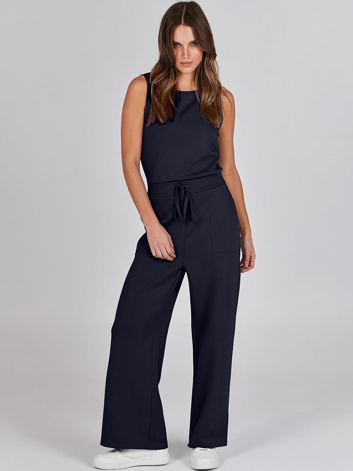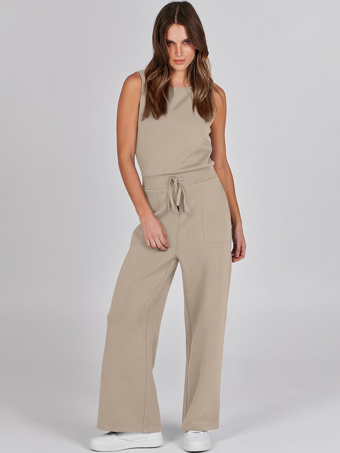 • Womens Jumpsuits 2025 Casual Summer Dressy Romper Sleeveless Wide Leg Long Pants Outfits Fashion Travel Clothes