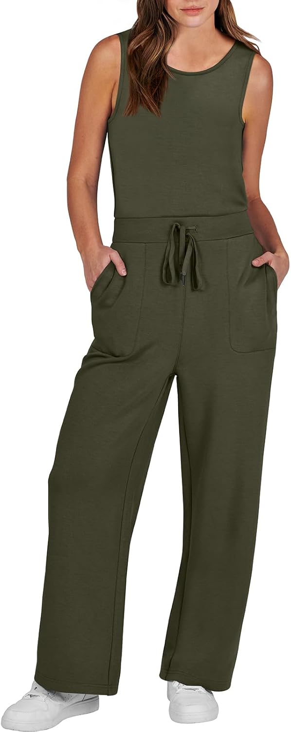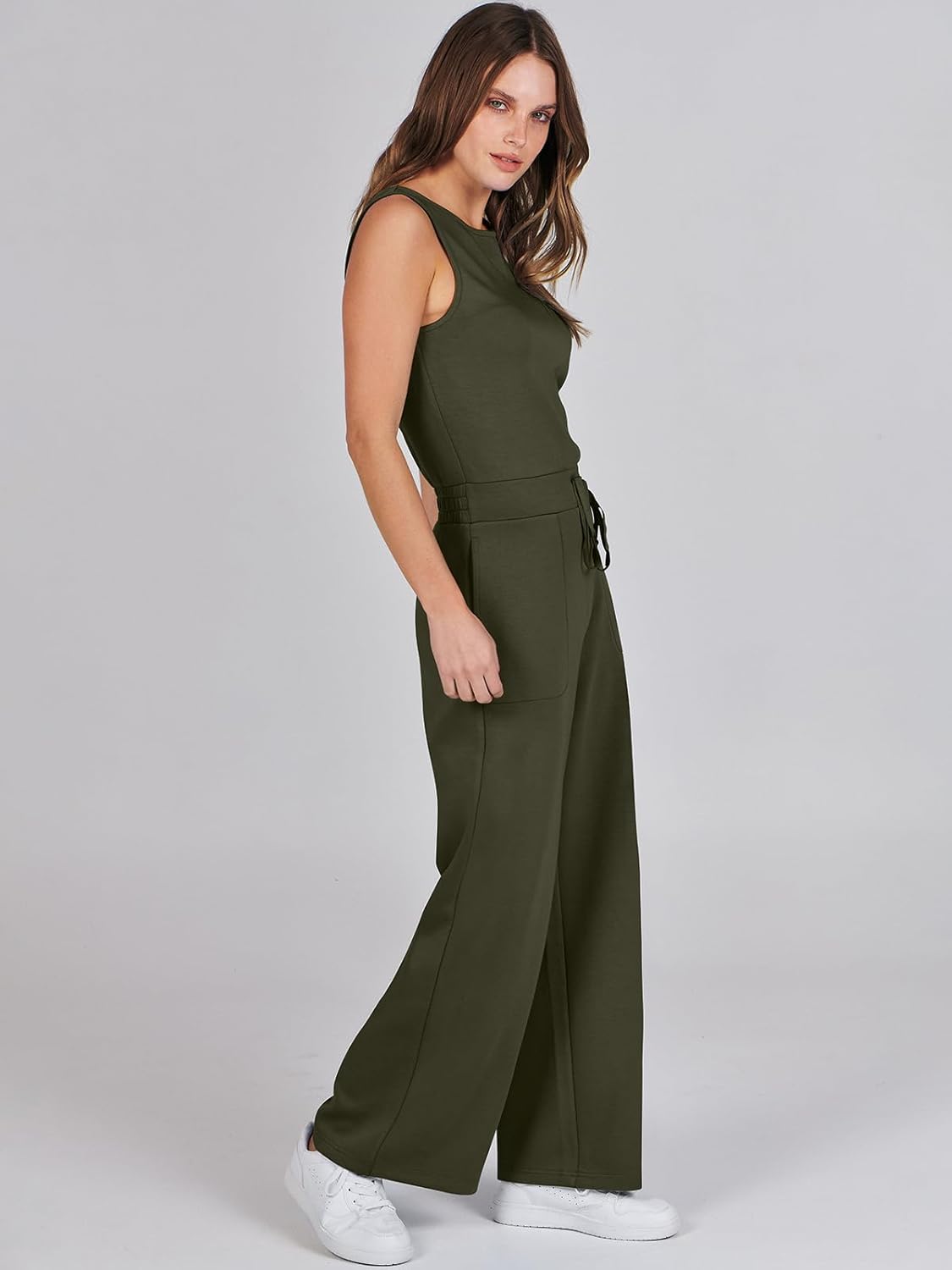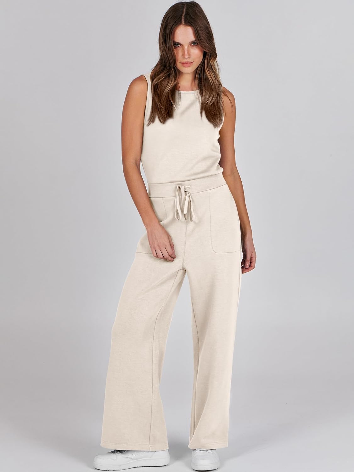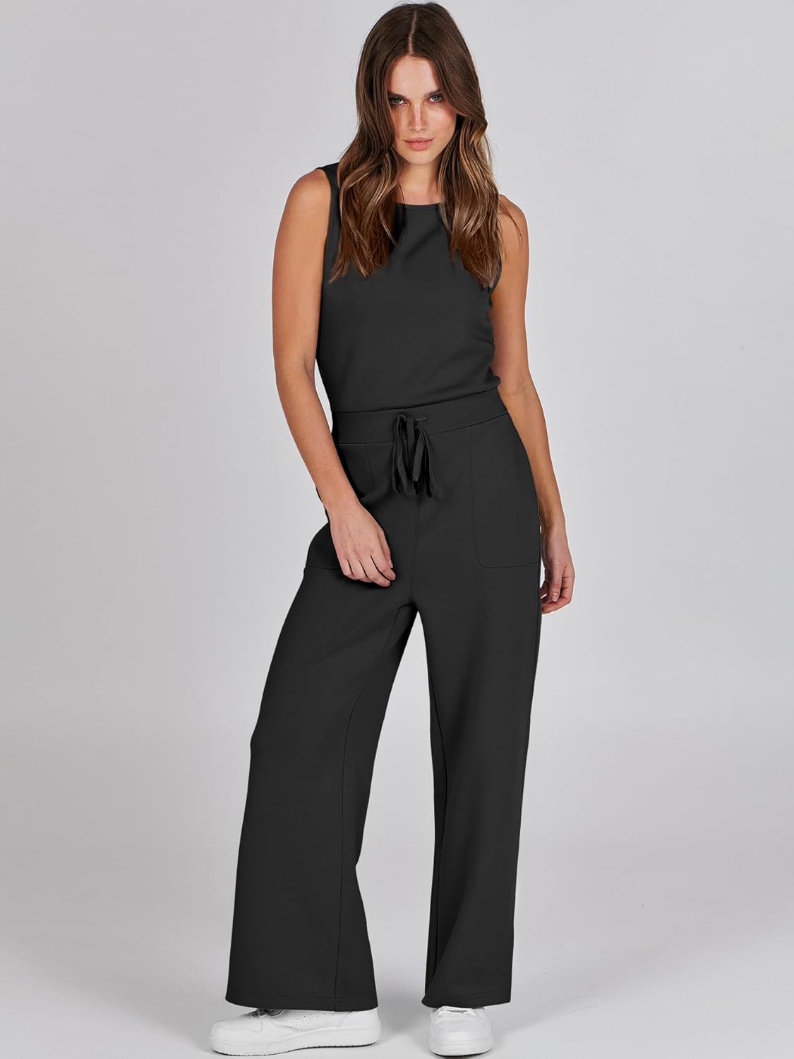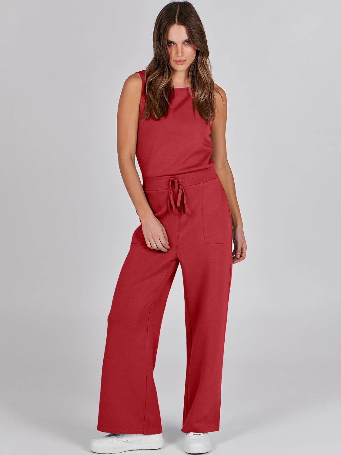 • Womens Jumpsuits 2025 Casual Summer Dressy Romper Sleeveless Wide Leg Long Pants Outfits Fashion Travel Clothes