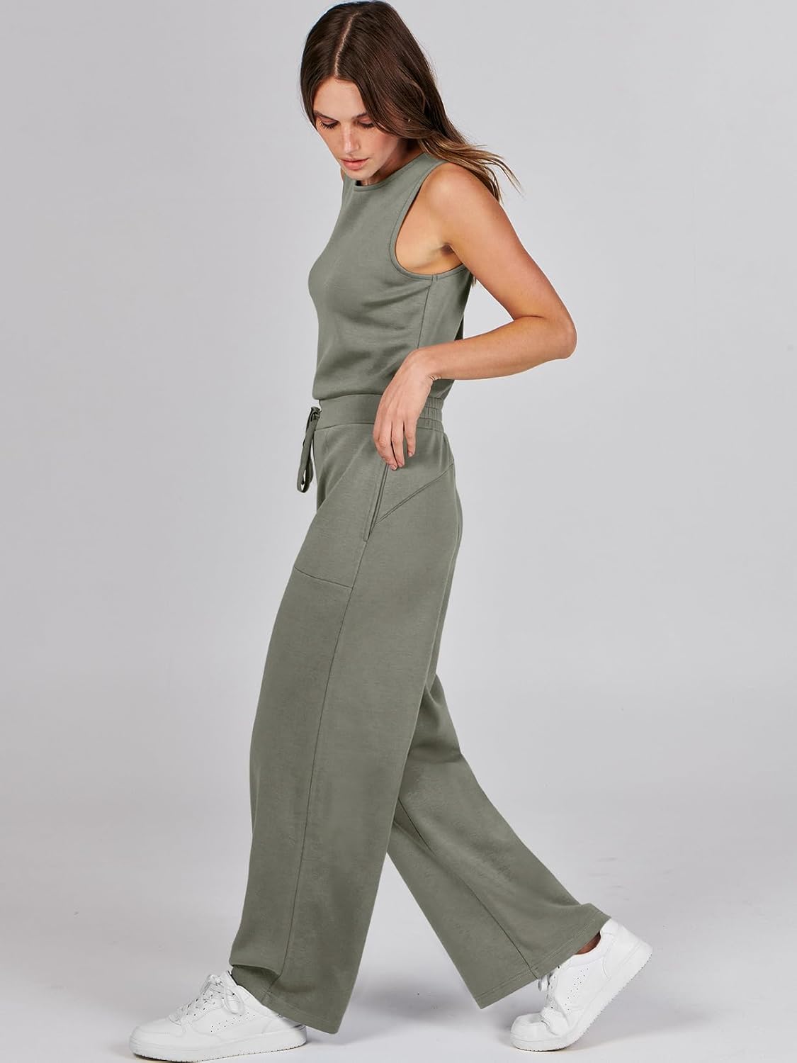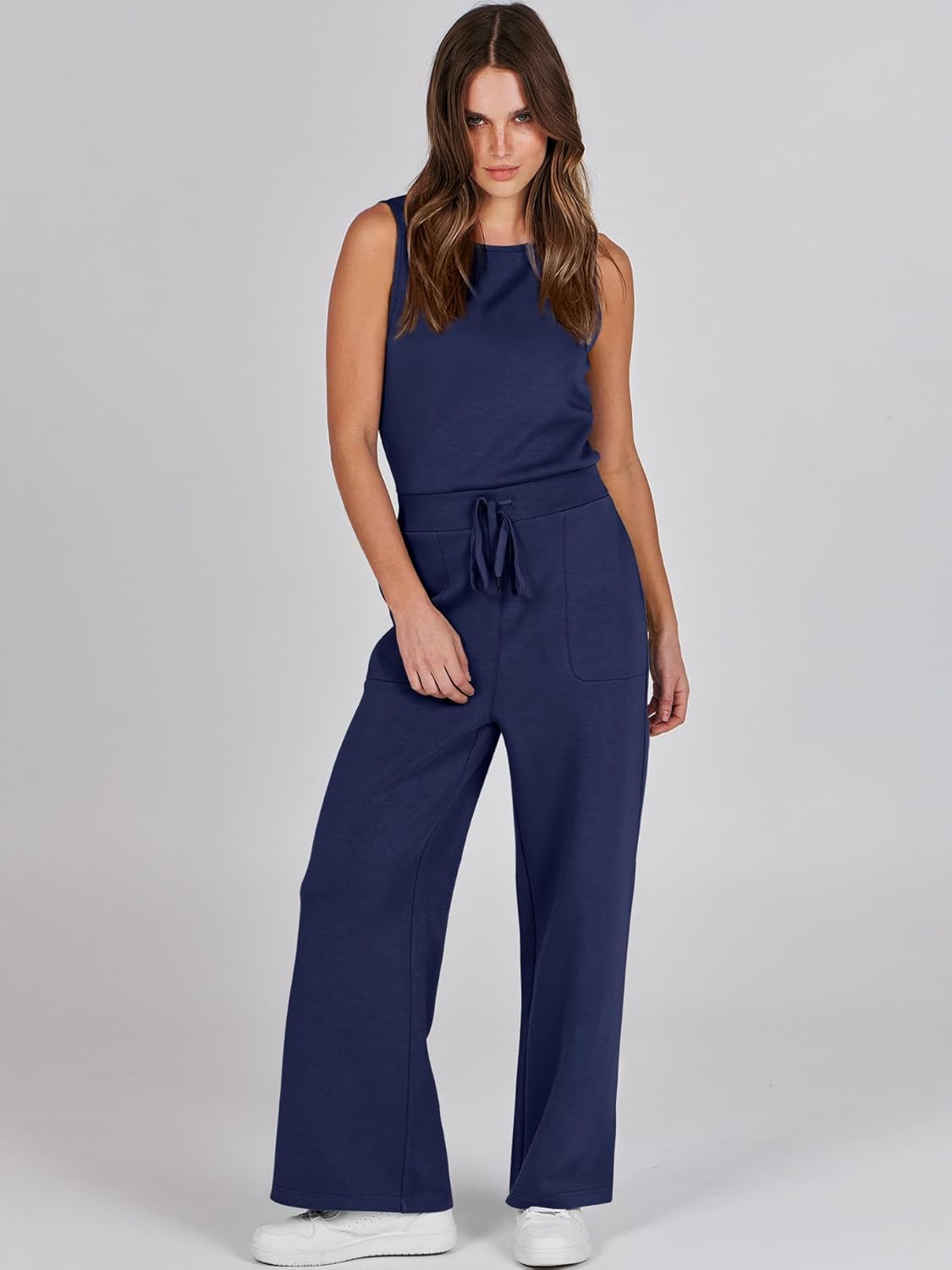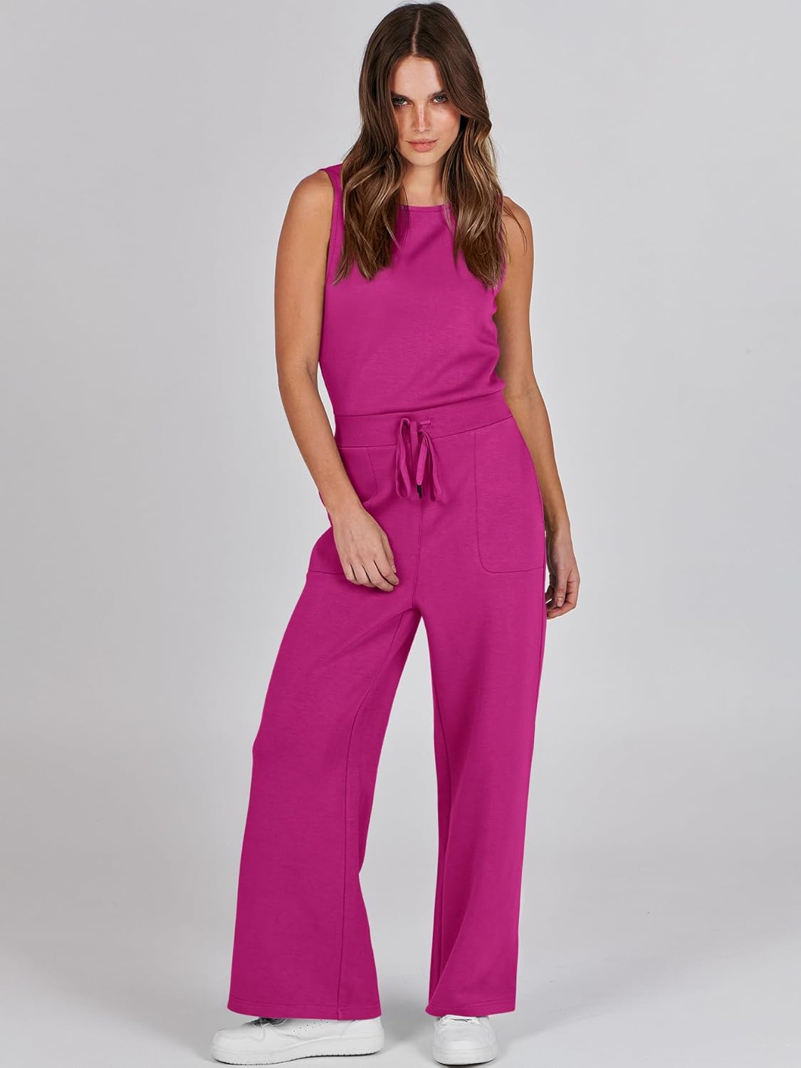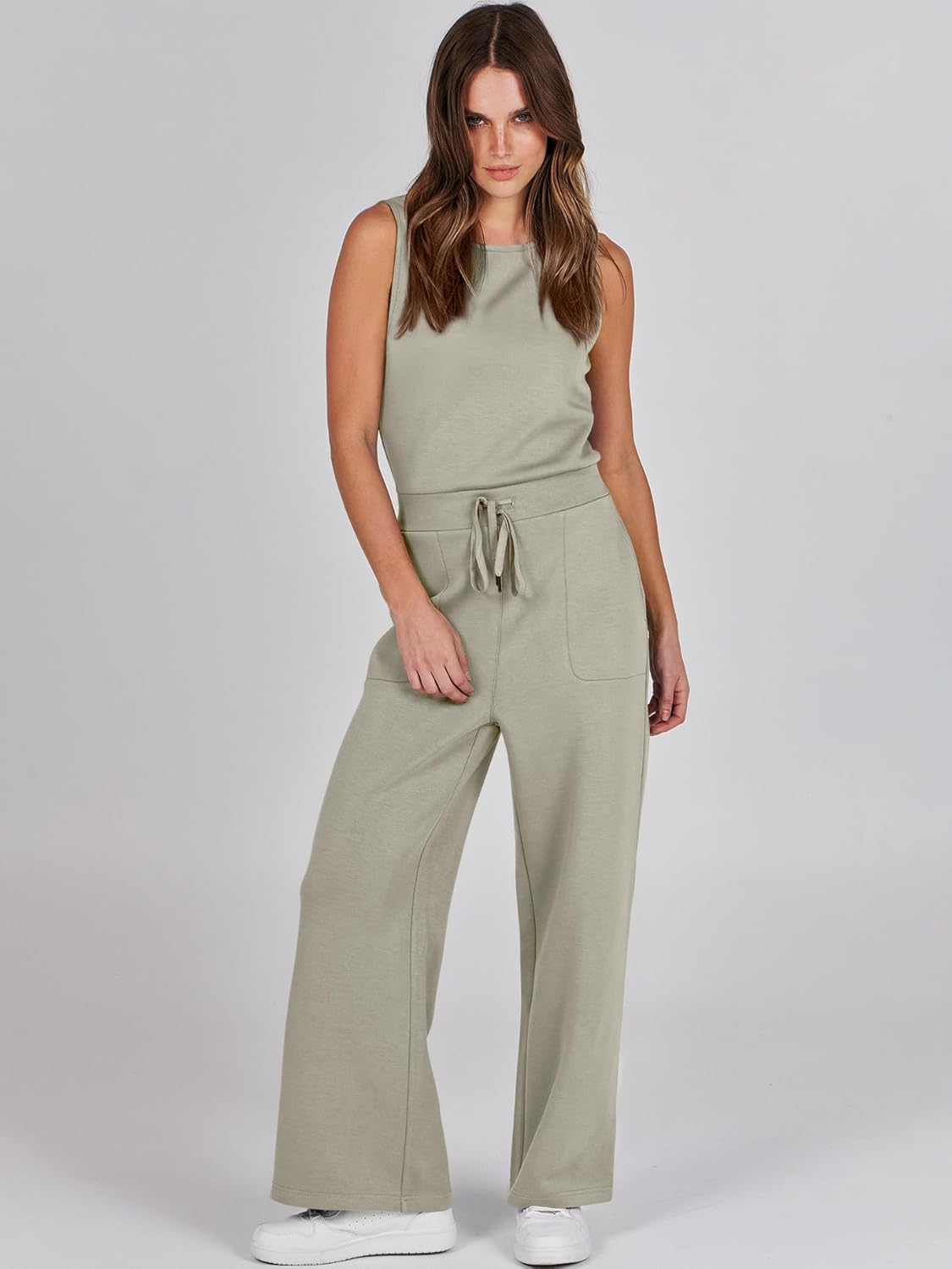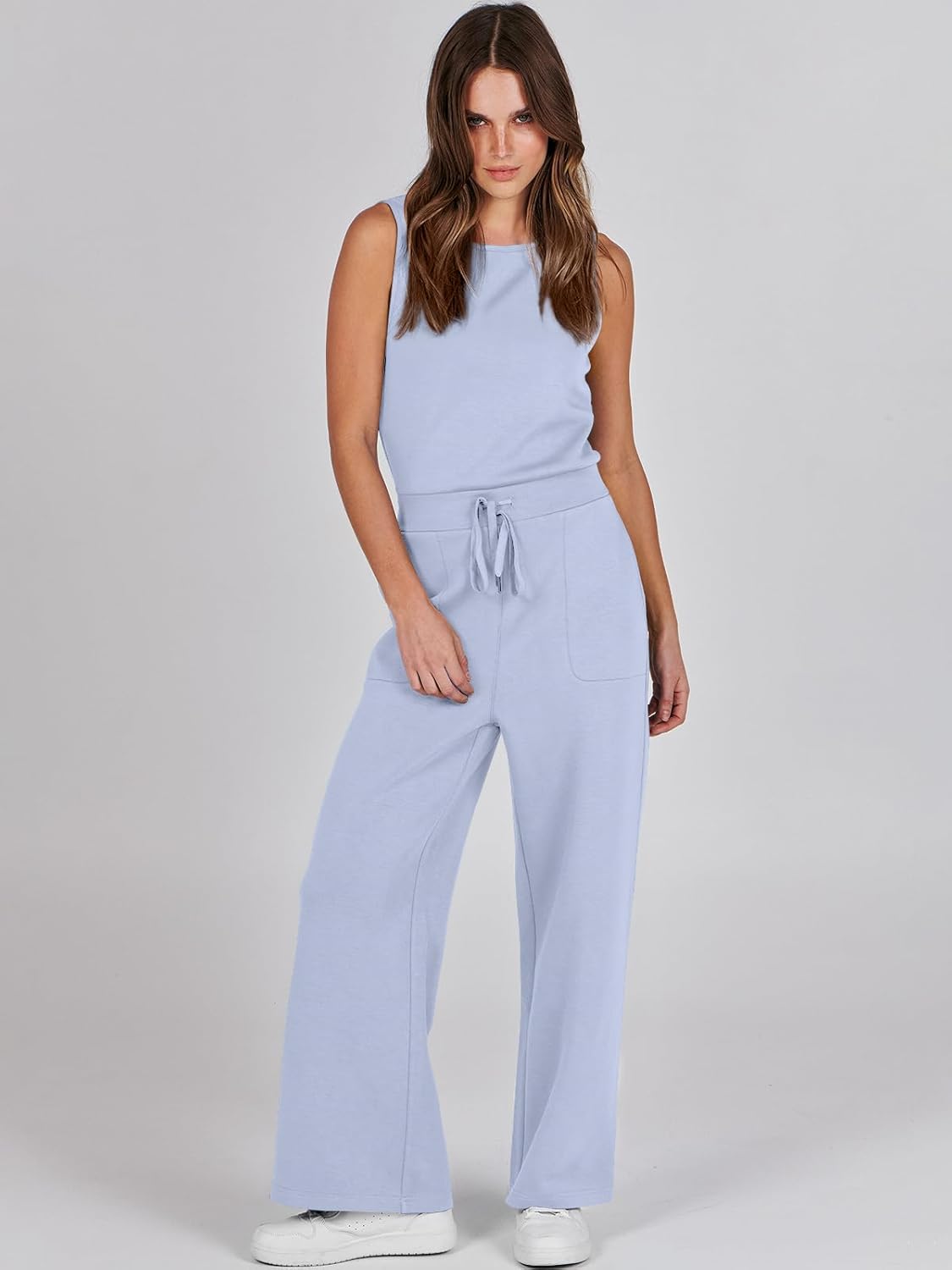 • Womens Jumpsuits 2025 Casual Summer Dressy Romper Sleeveless Wide Leg Long Pants Outfits Fashion Travel Clothes