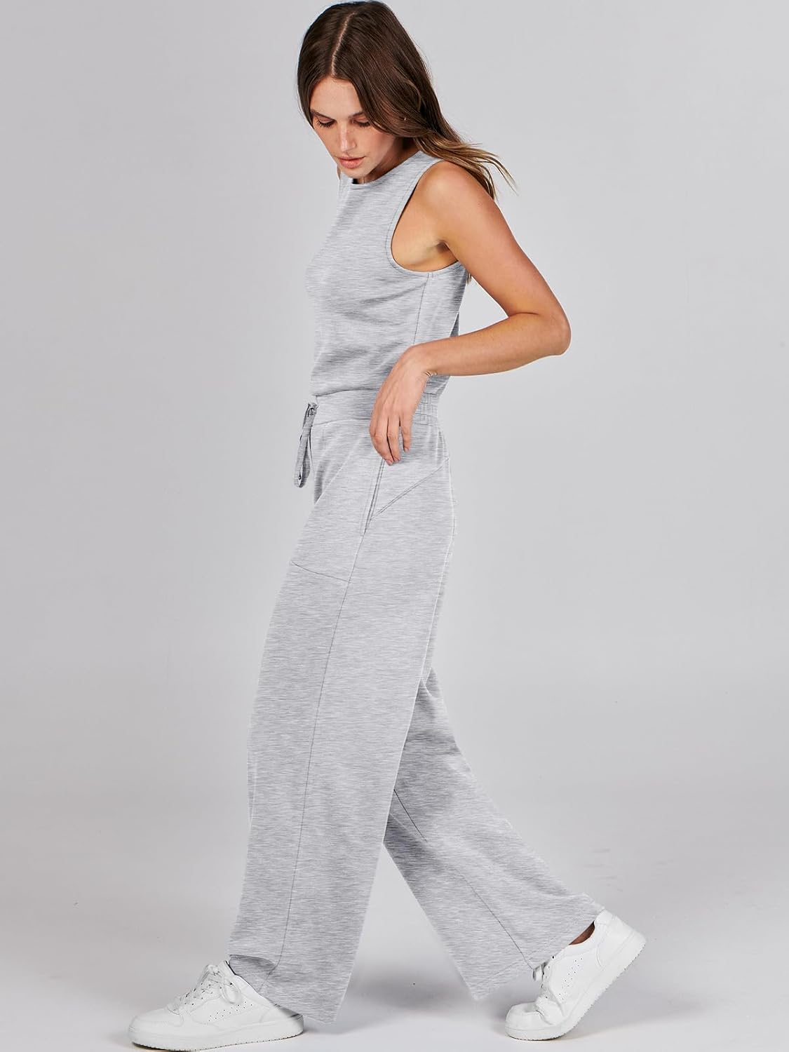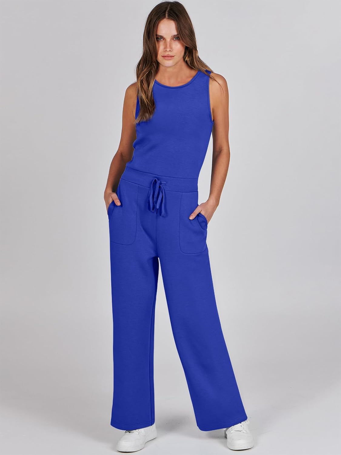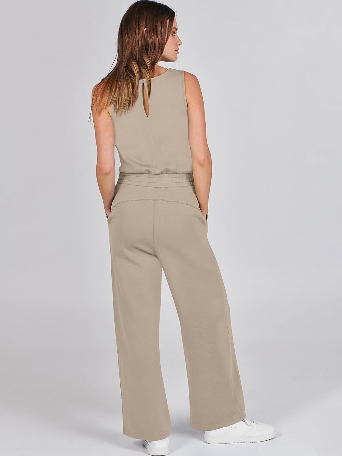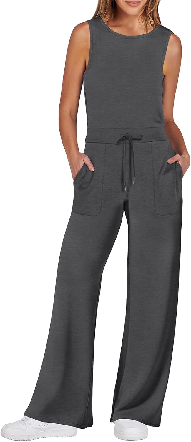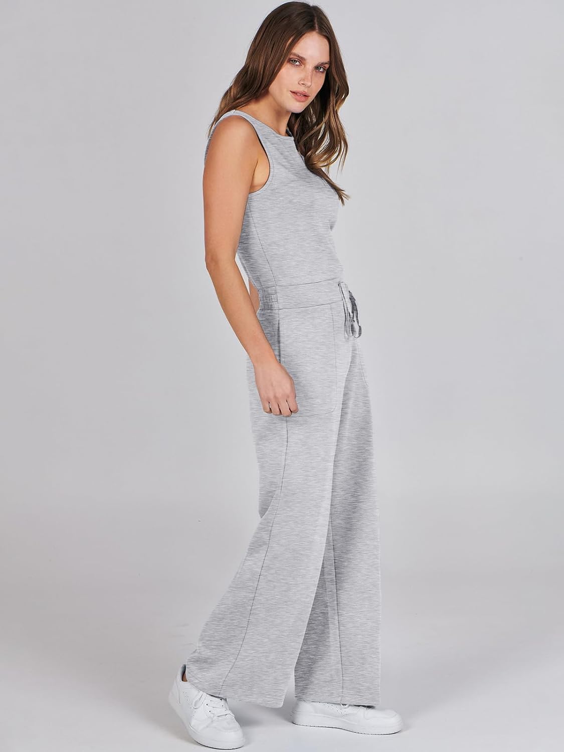 • Womens Jumpsuits 2025 Casual Summer Dressy Romper Sleeveless Wide Leg Long Pants Outfits Fashion Travel Clothes