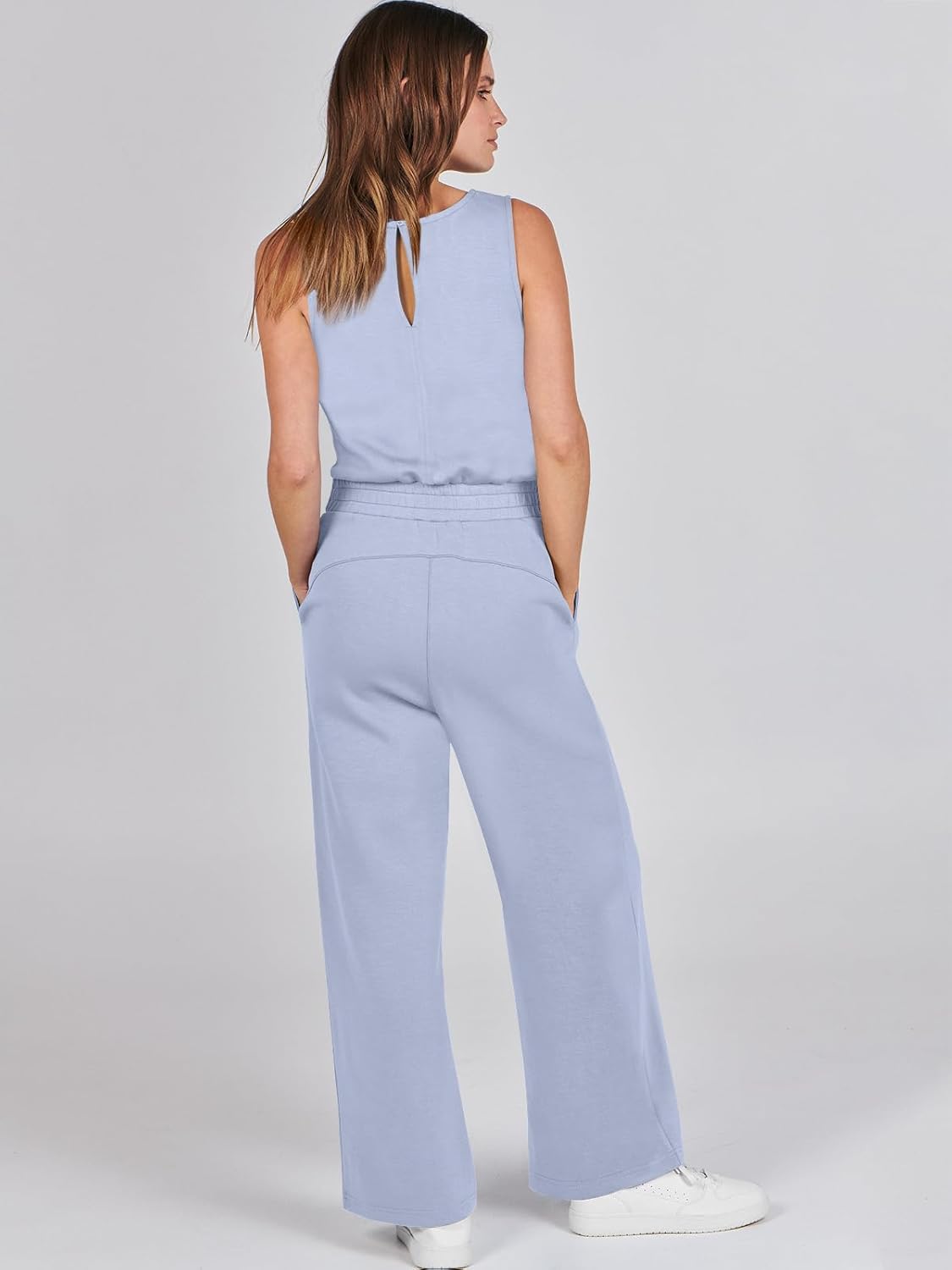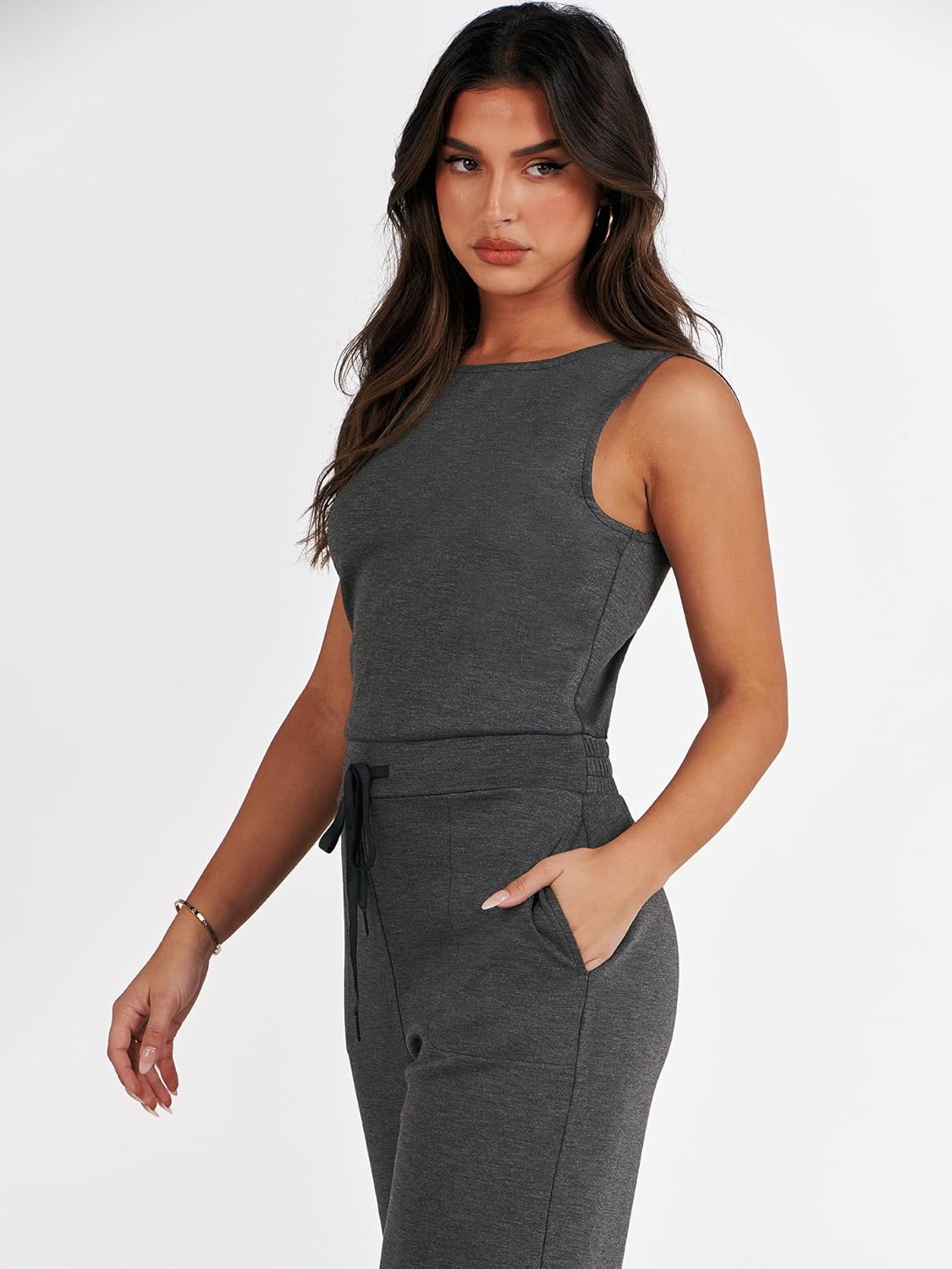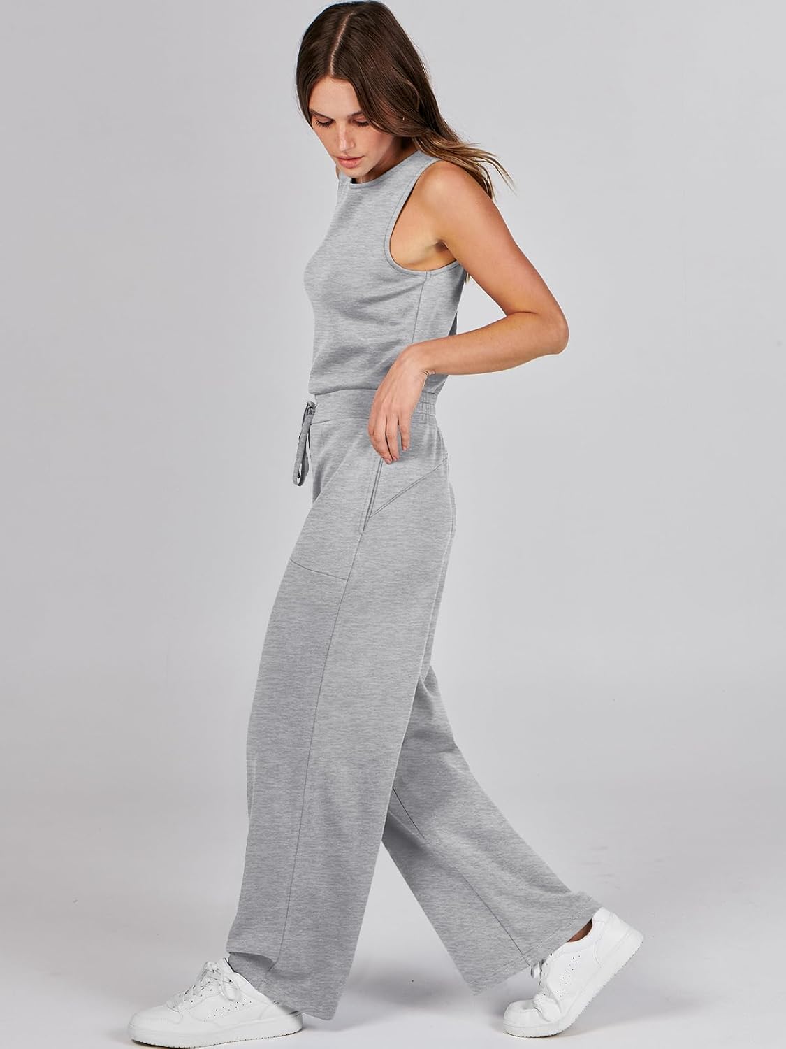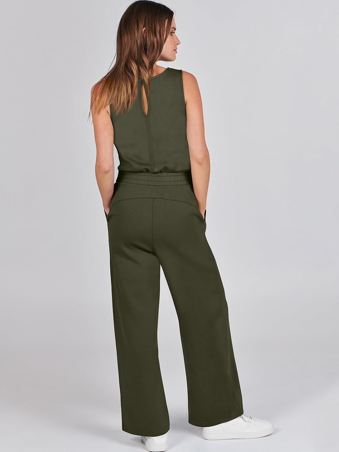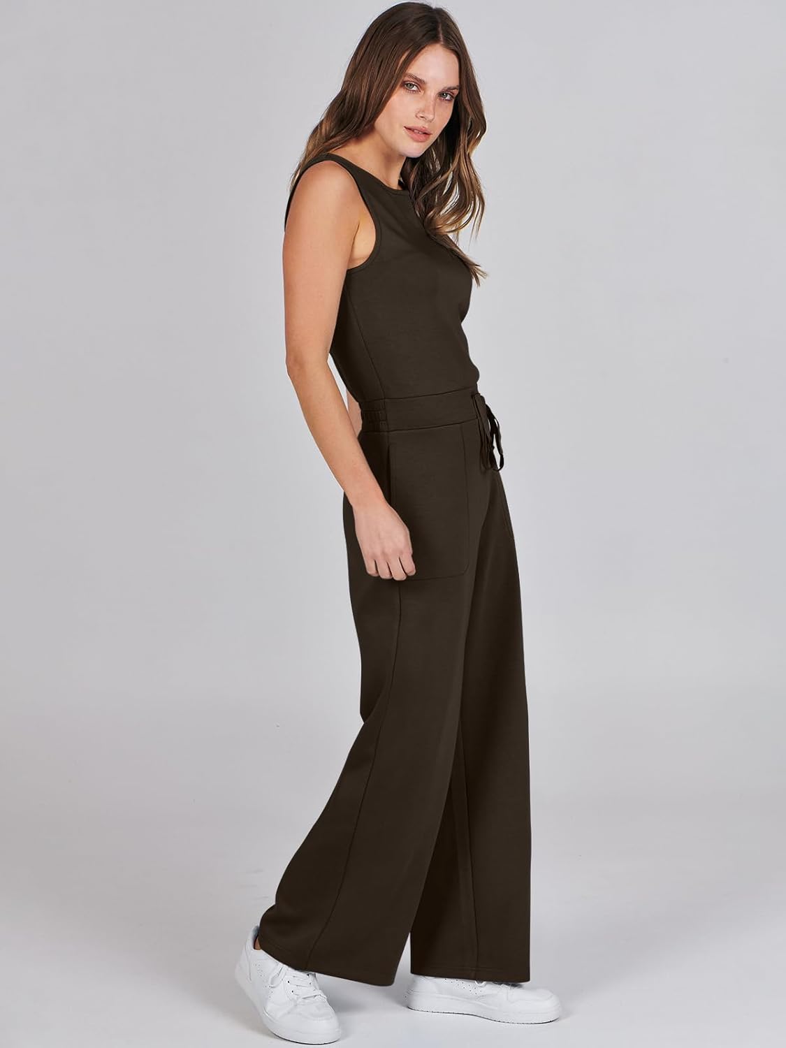 • Womens Jumpsuits 2025 Casual Summer Dressy Romper Sleeveless Wide Leg Long Pants Outfits Fashion Travel Clothes