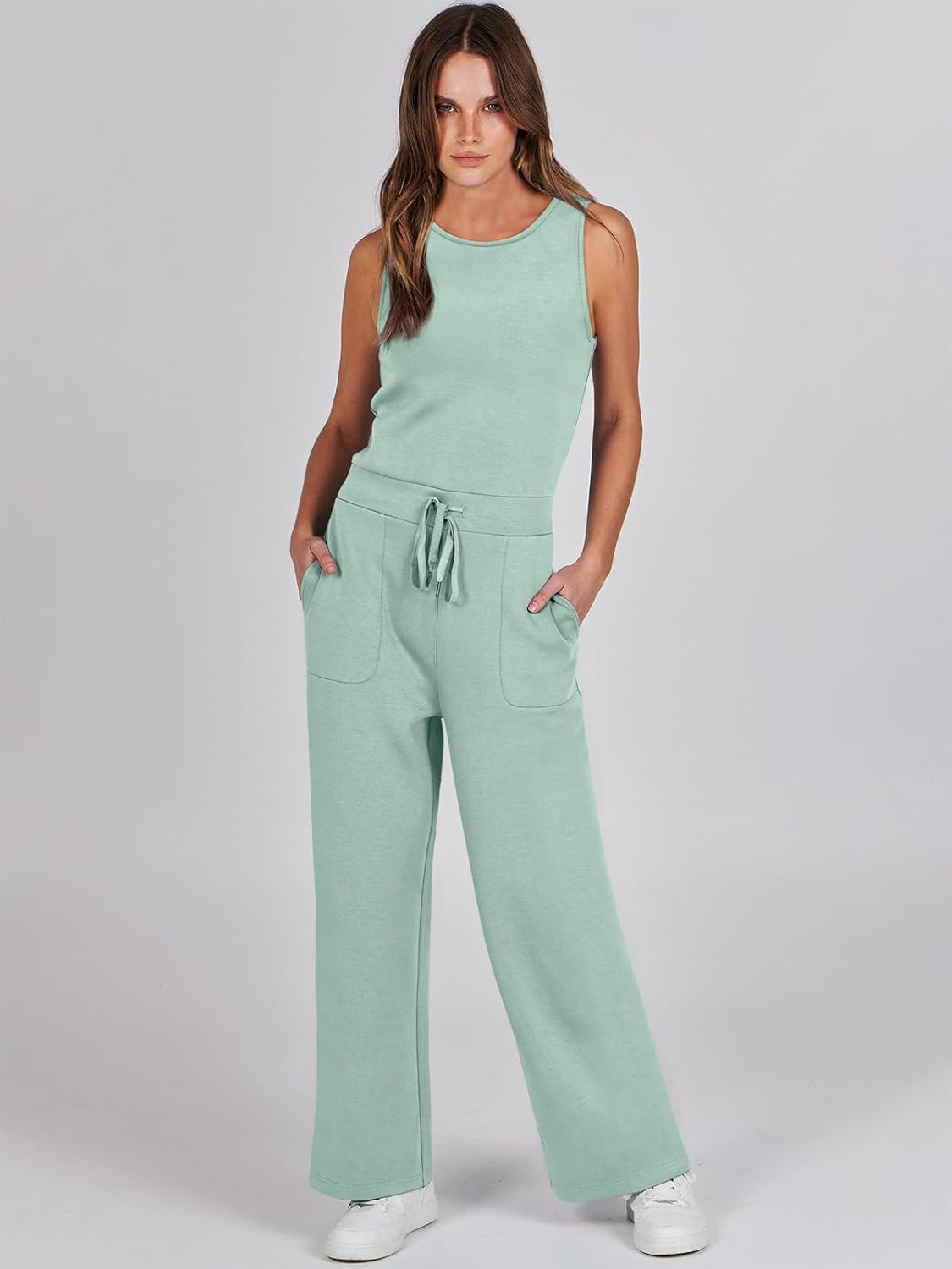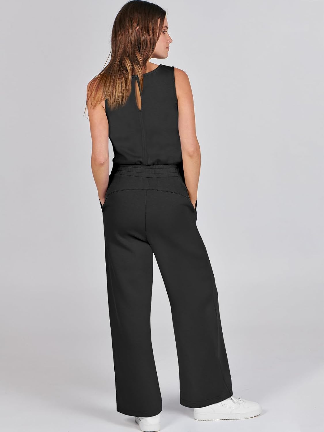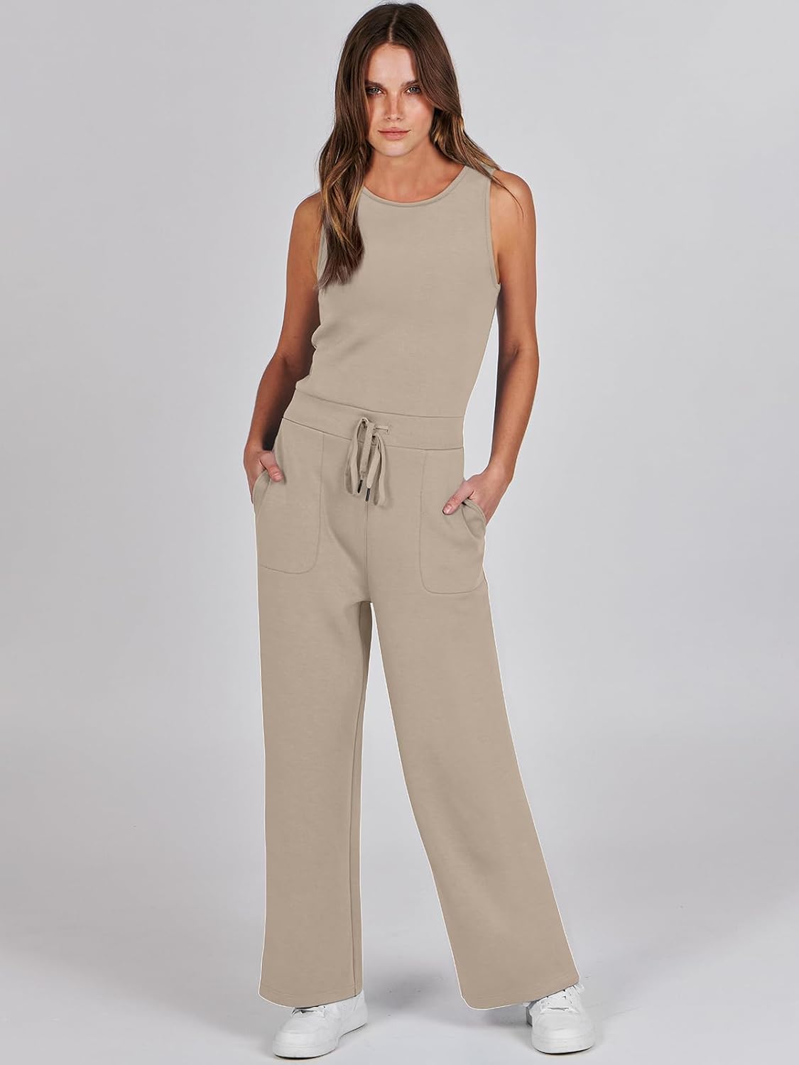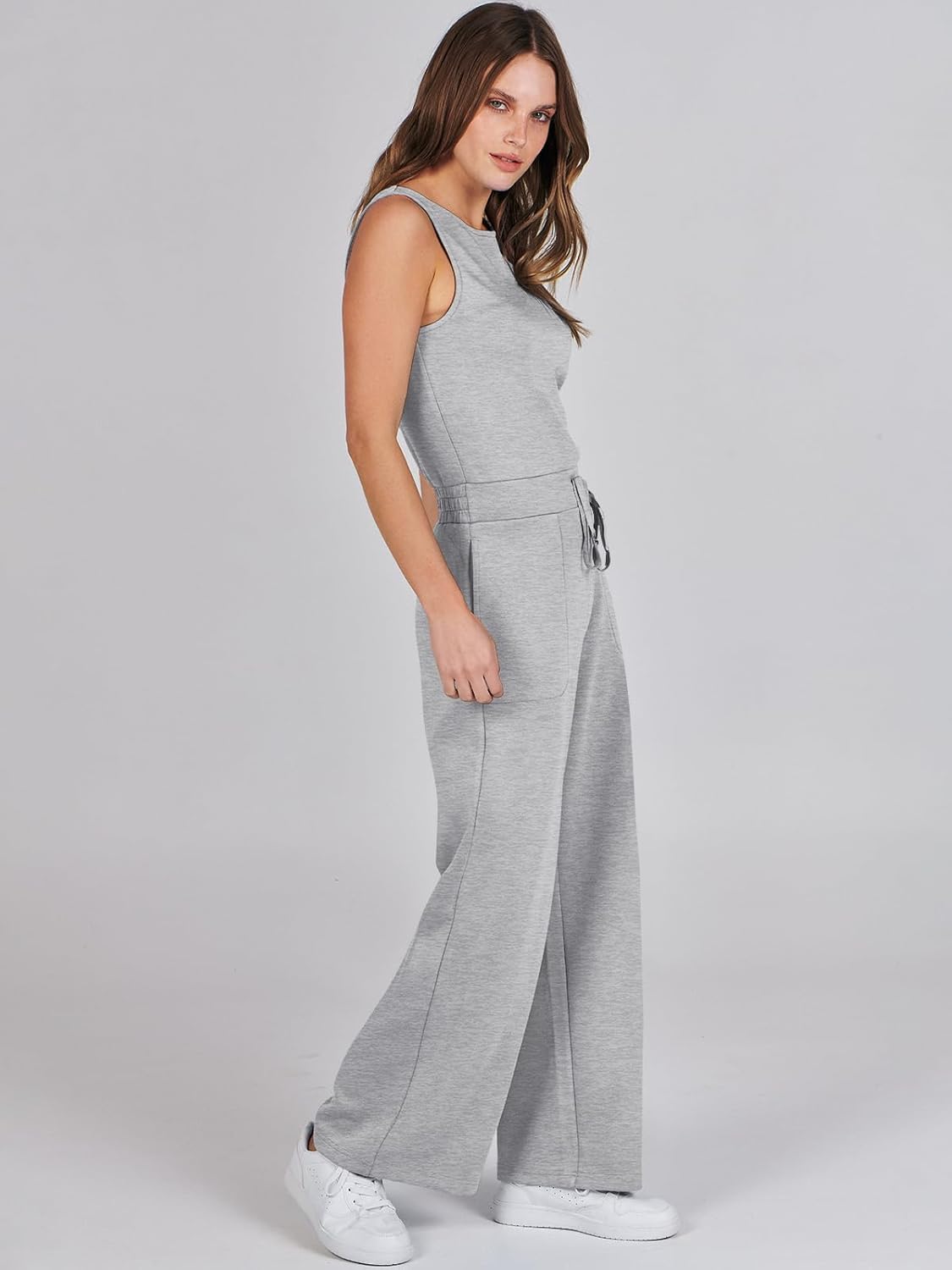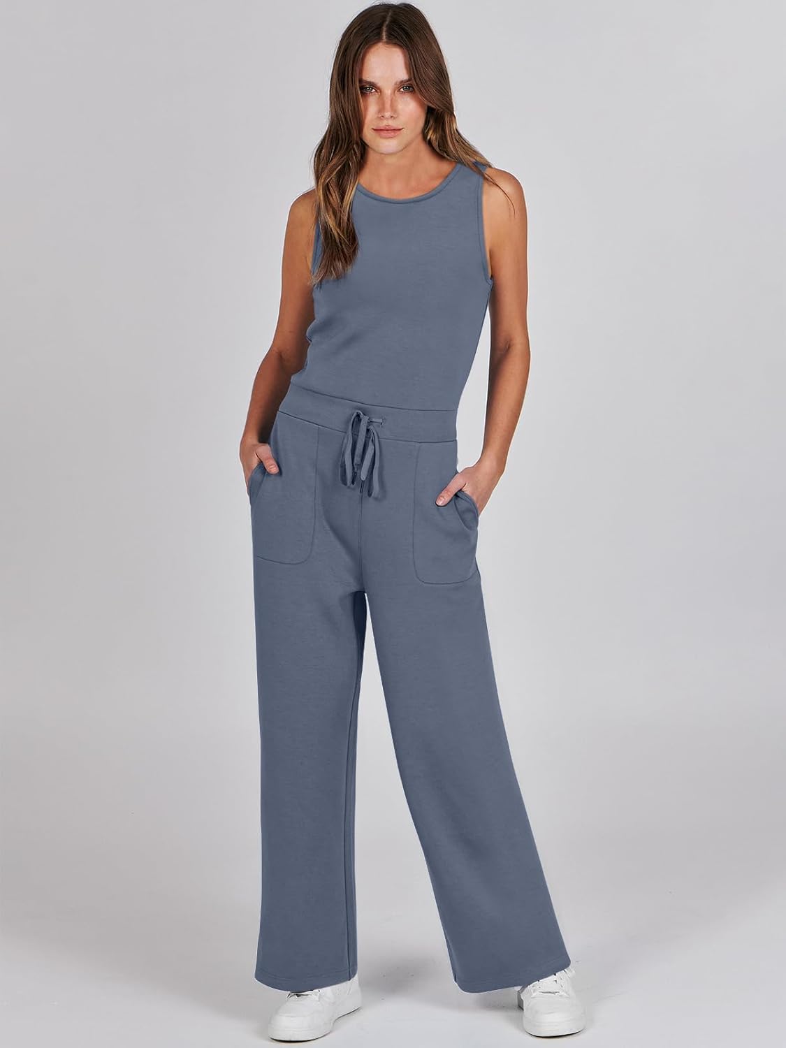 • Womens Jumpsuits 2025 Casual Summer Dressy Romper Sleeveless Wide Leg Long Pants Outfits Fashion Travel Clothes