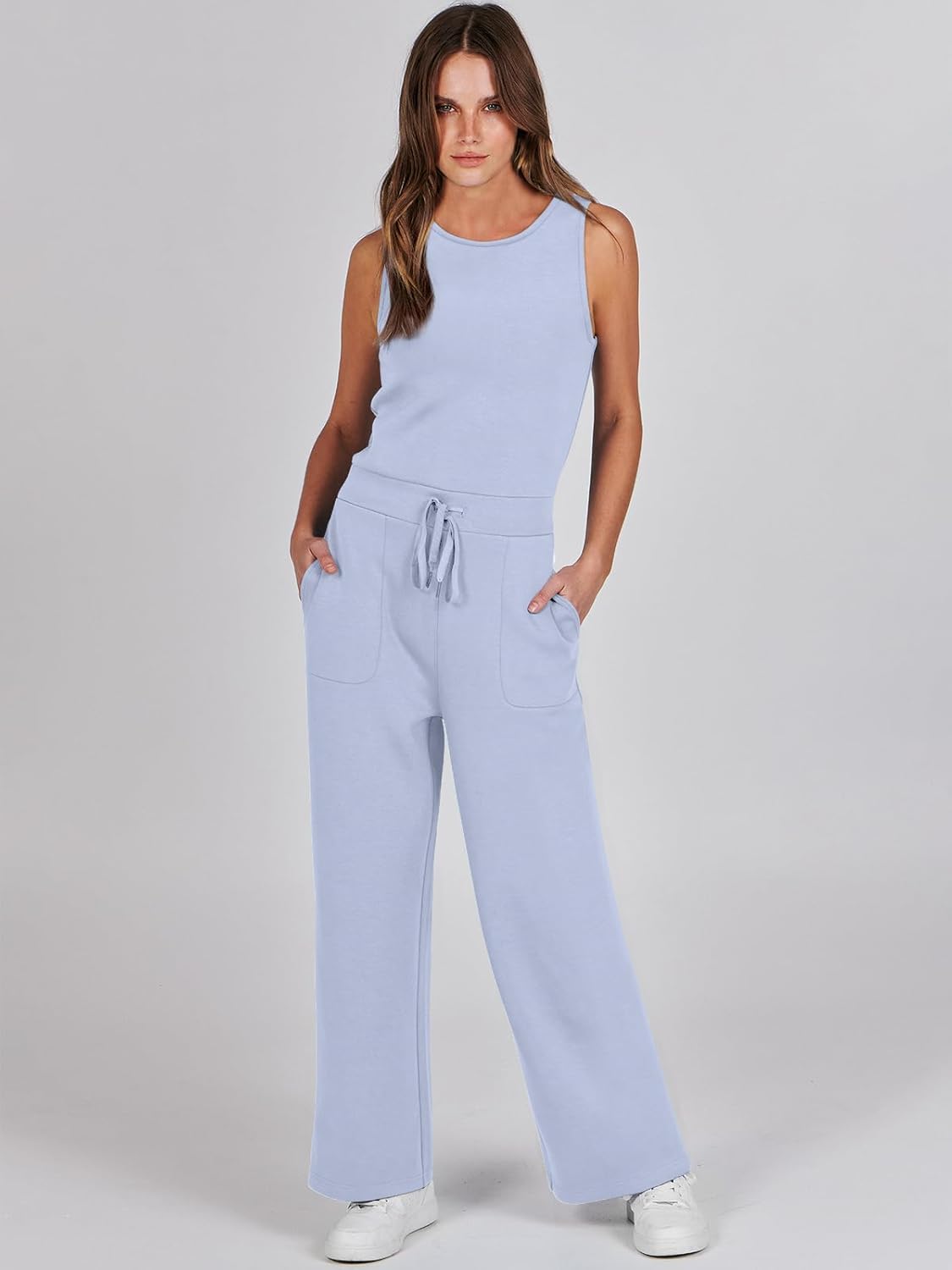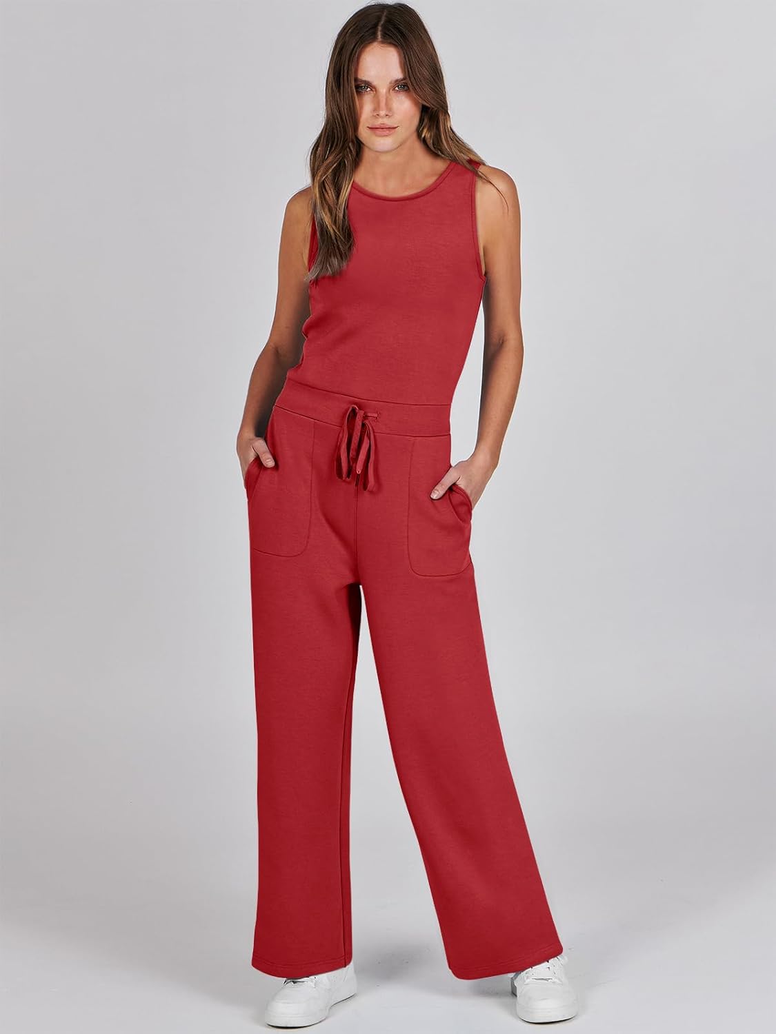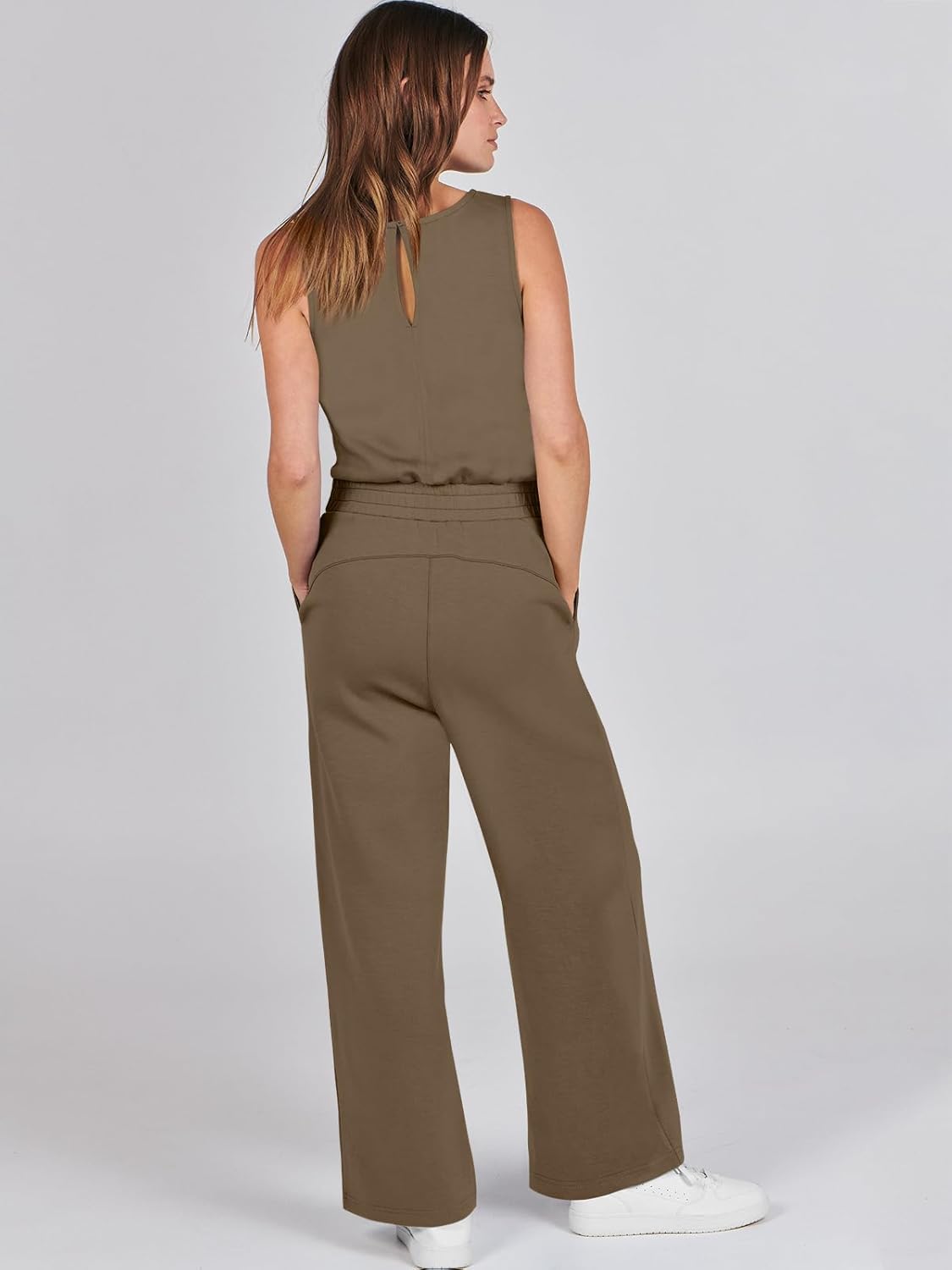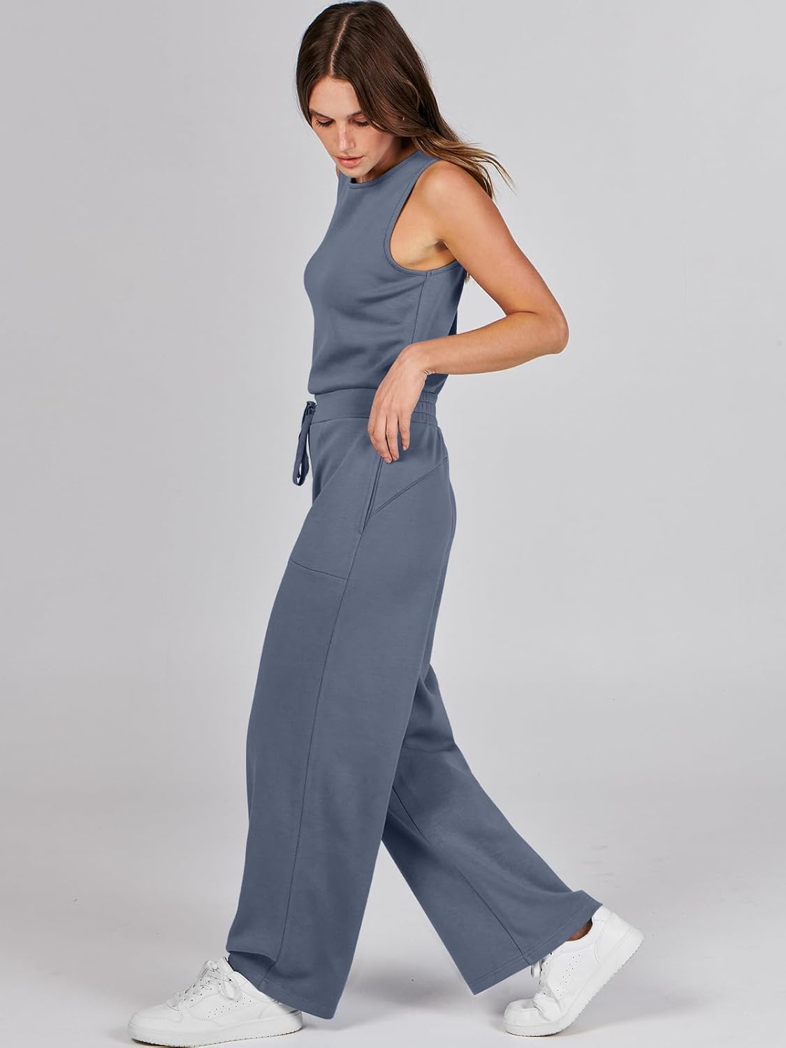 • Womens Jumpsuits 2025 Casual Summer Dressy Romper Sleeveless Wide Leg Long Pants Outfits Fashion Travel Clothes