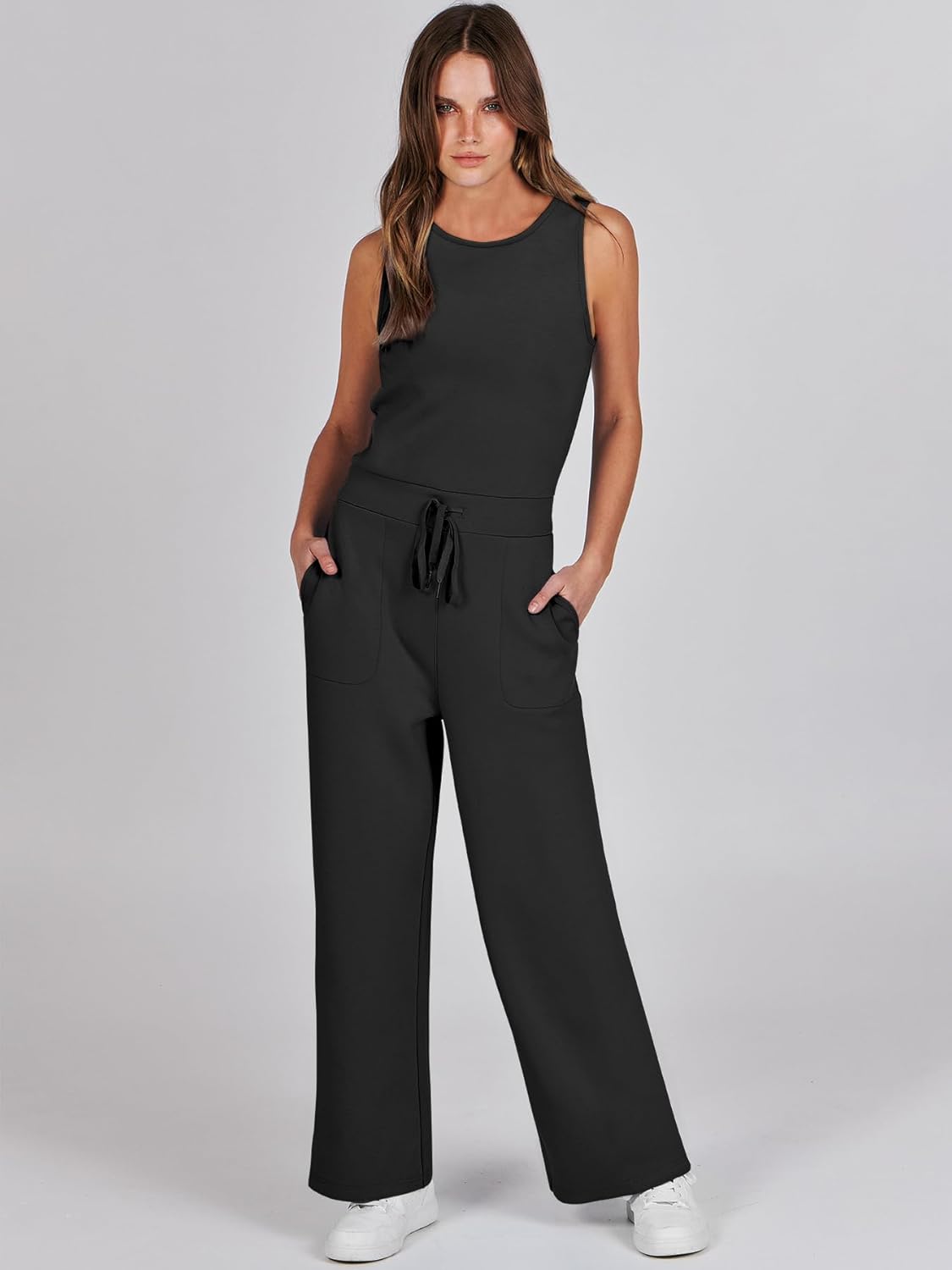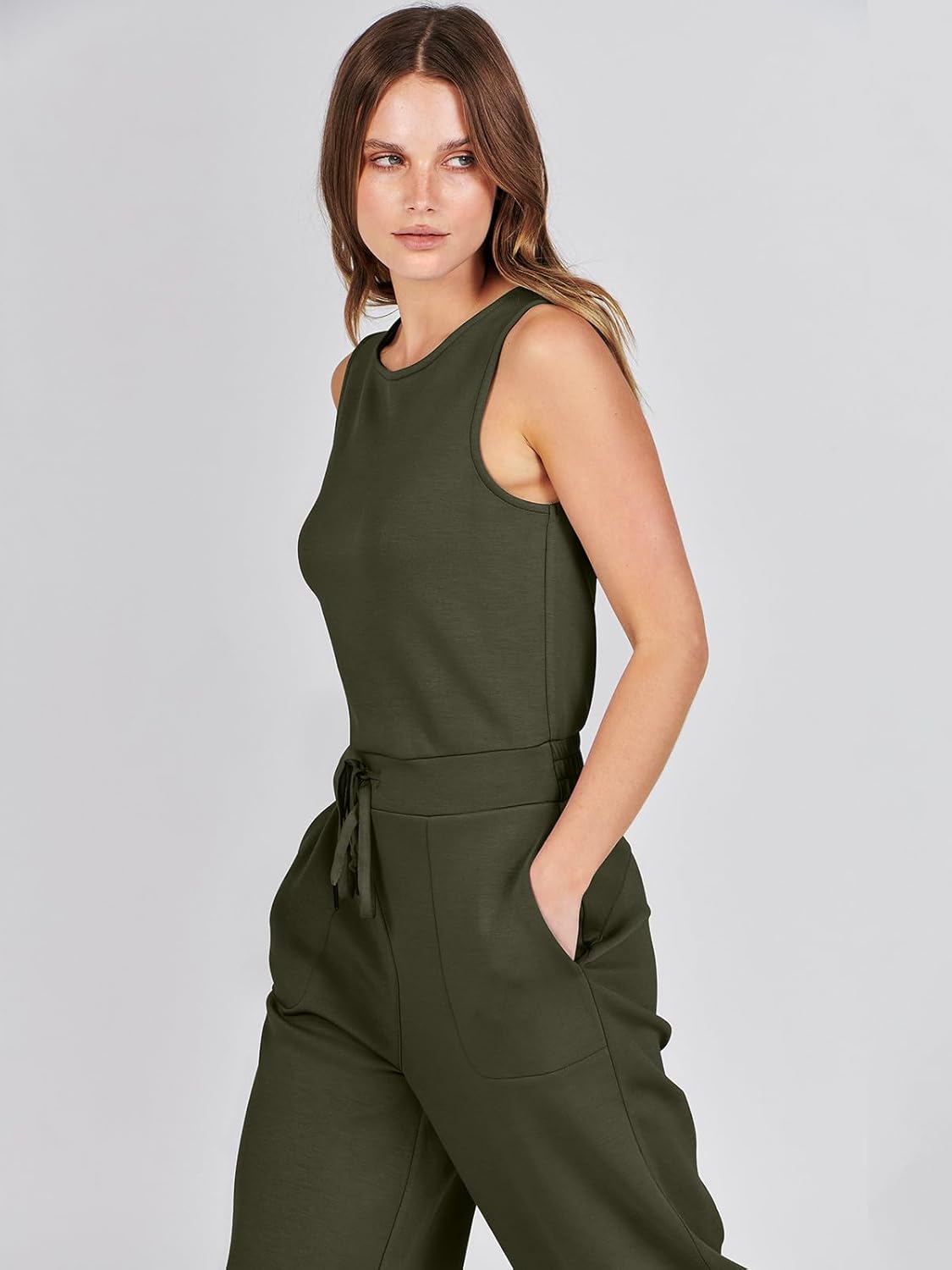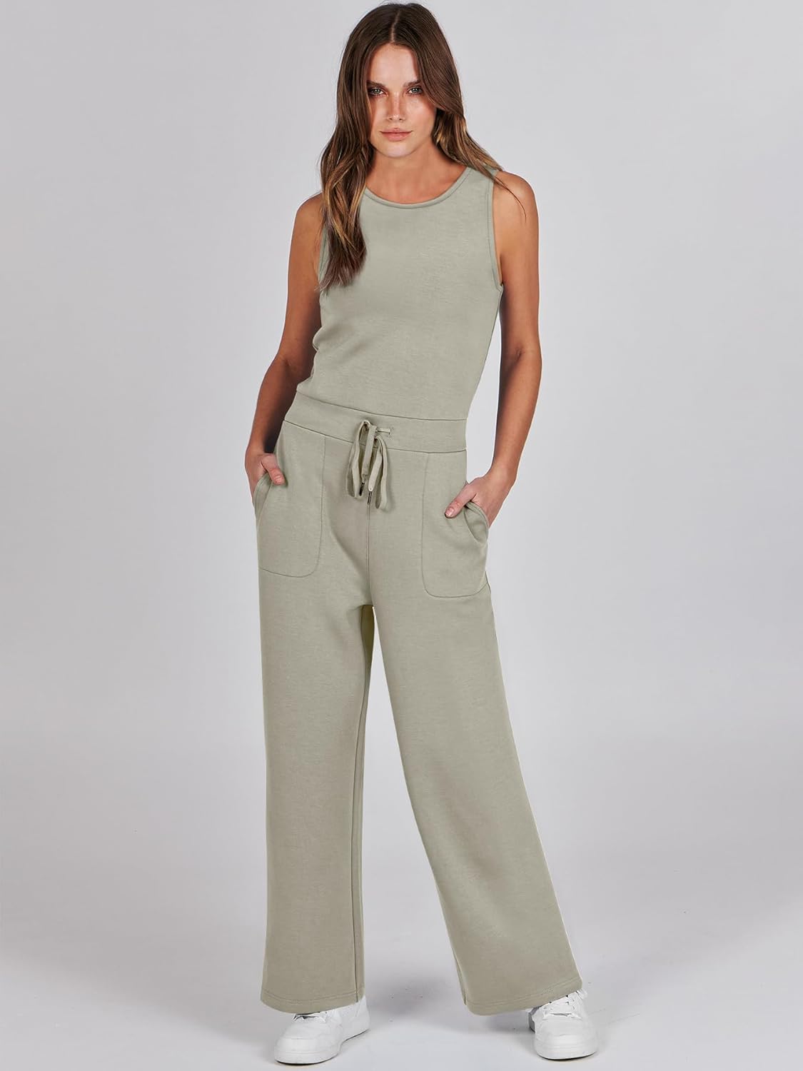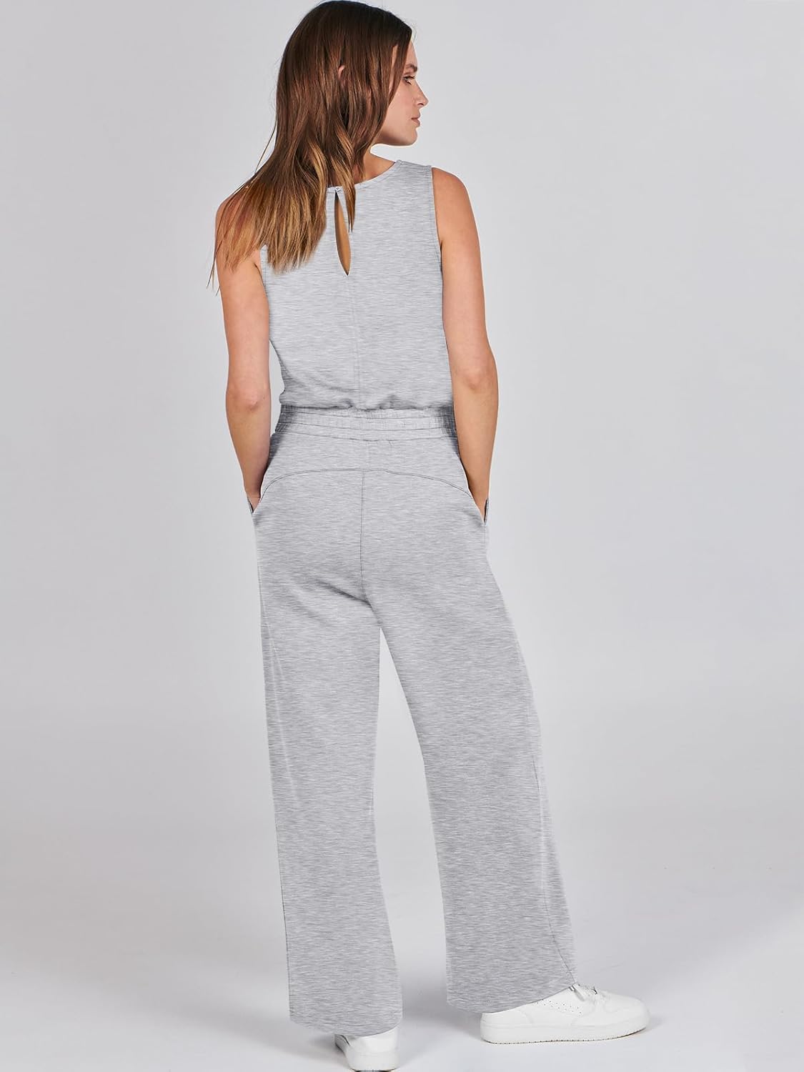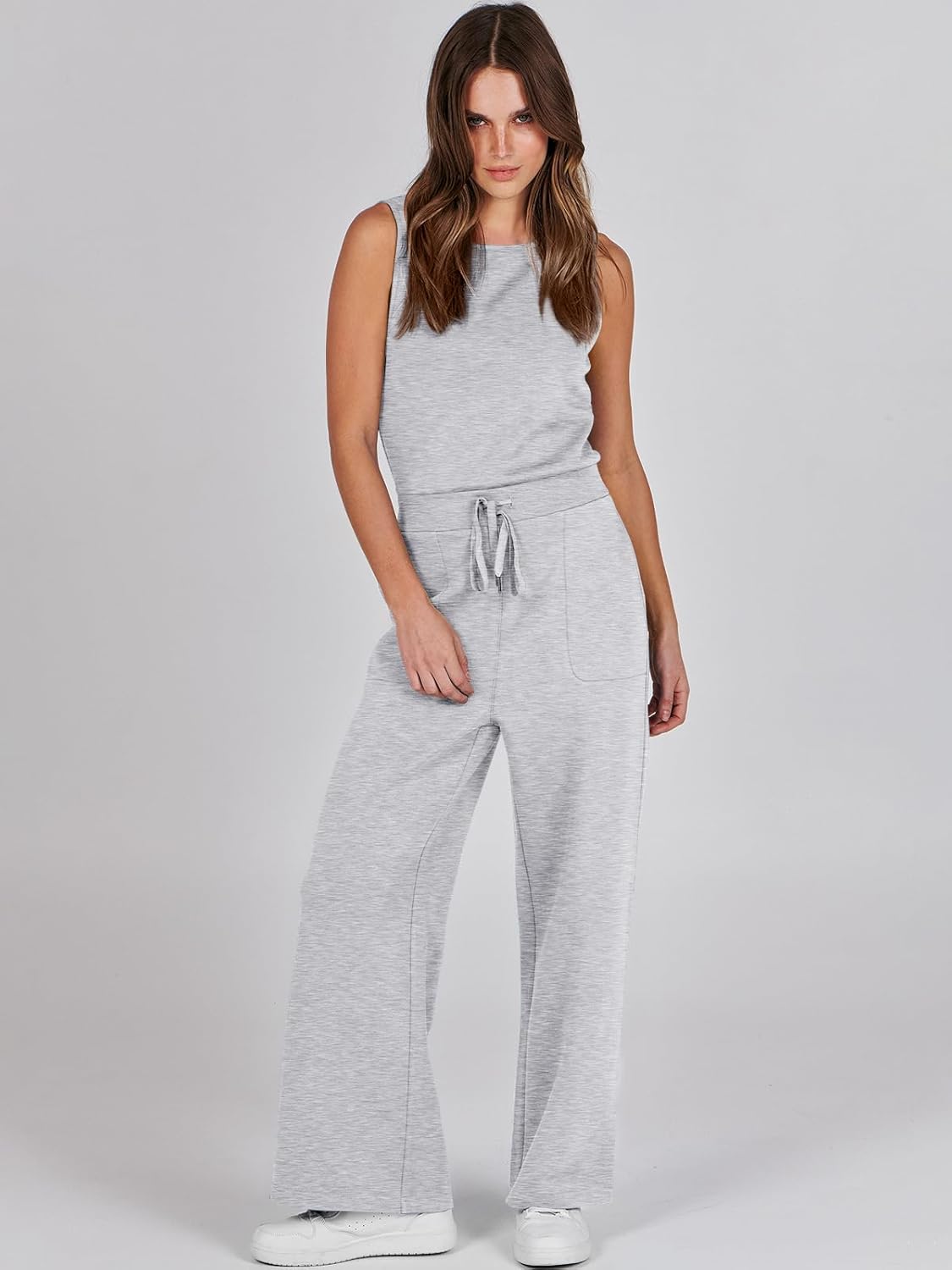• Womens Jumpsuits 2025 Casual Summer Dressy Romper Sleeveless Wide Leg Long Pants Outfits Fashion Travel Clothes