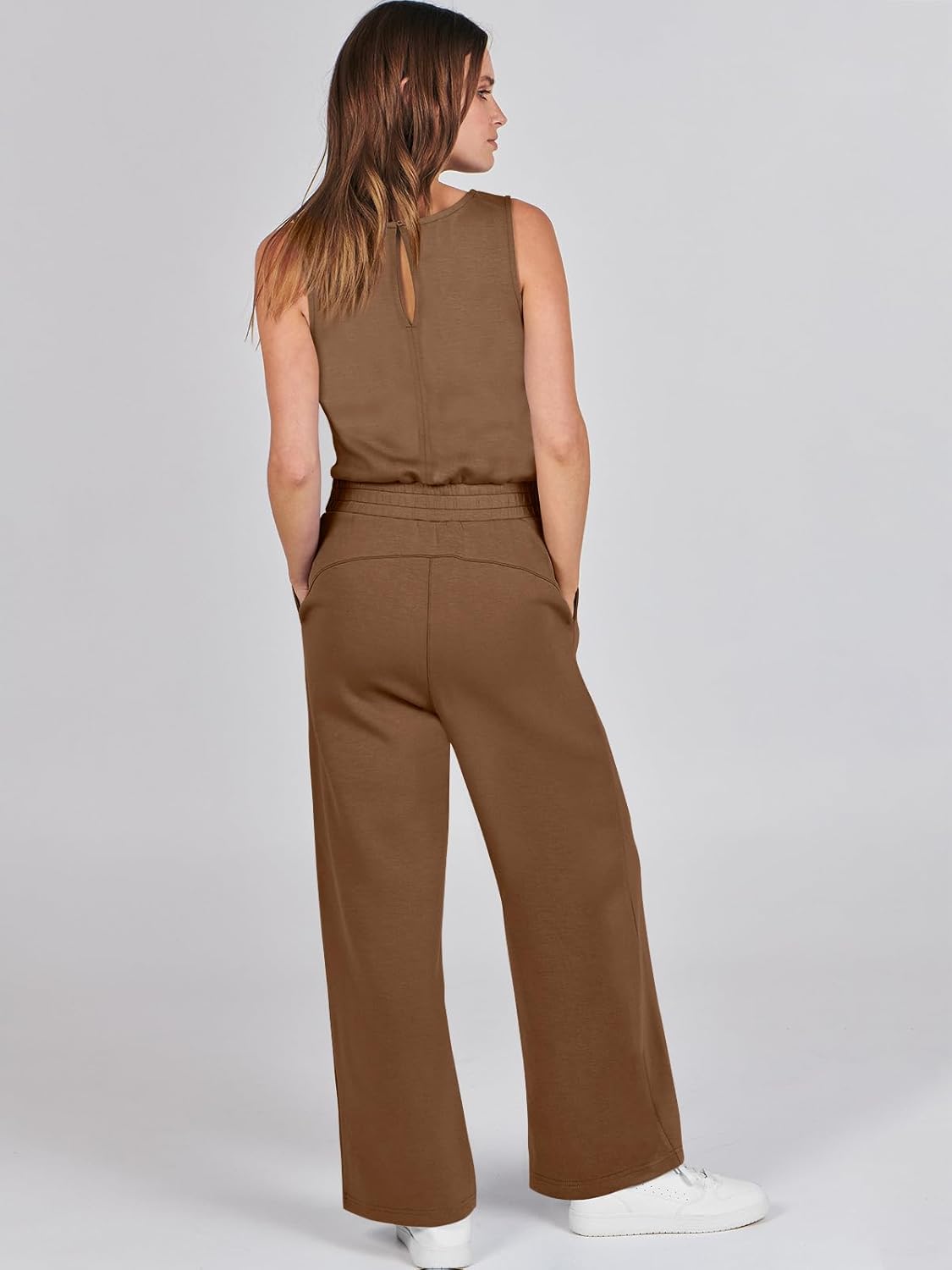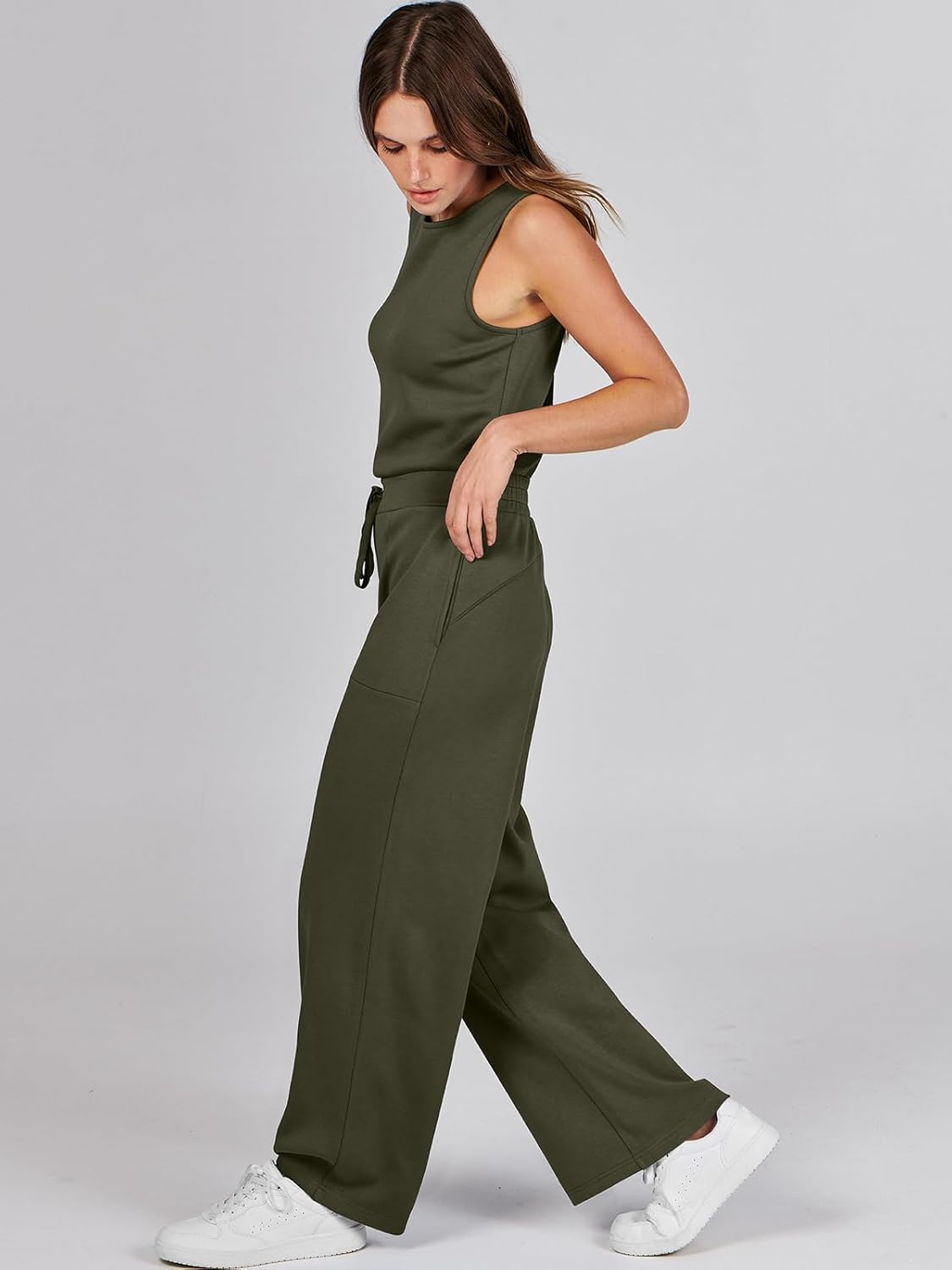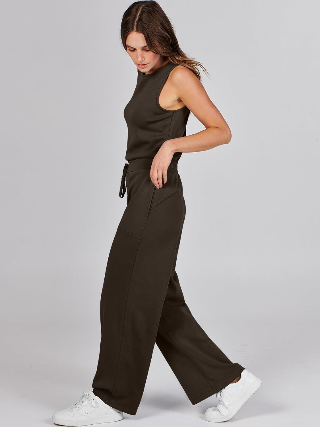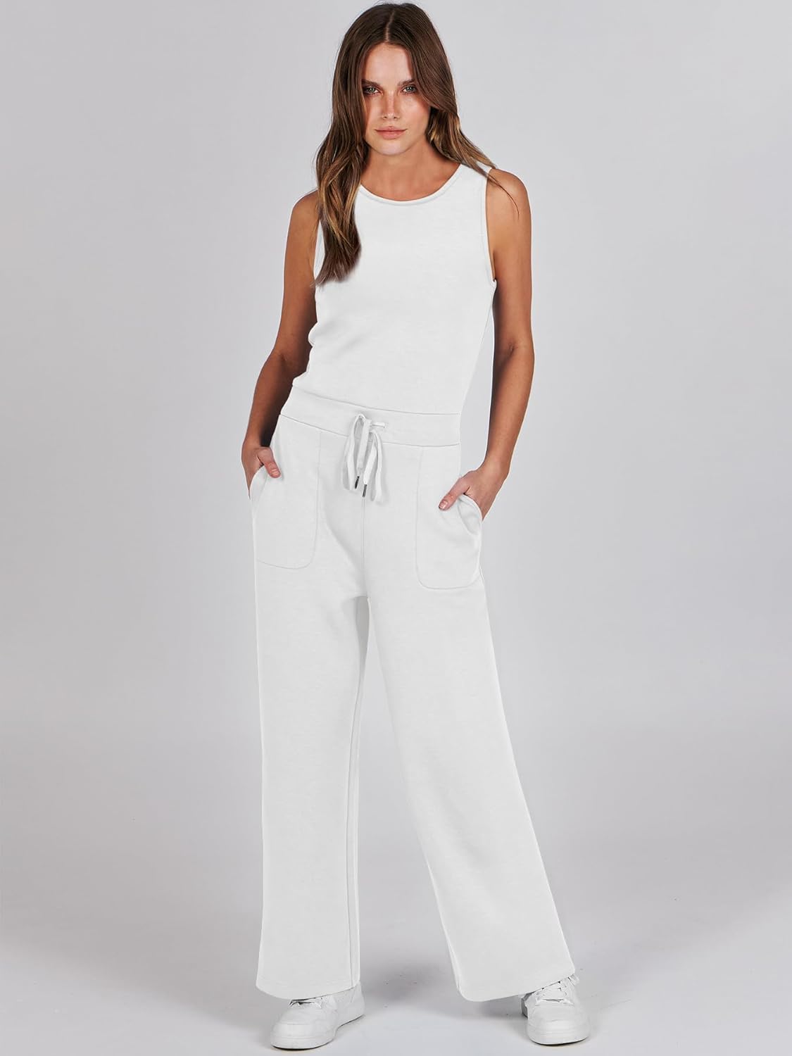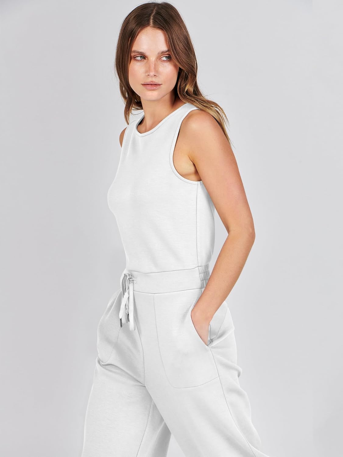 • Womens Jumpsuits 2025 Casual Summer Dressy Romper Sleeveless Wide Leg Long Pants Outfits Fashion Travel Clothes