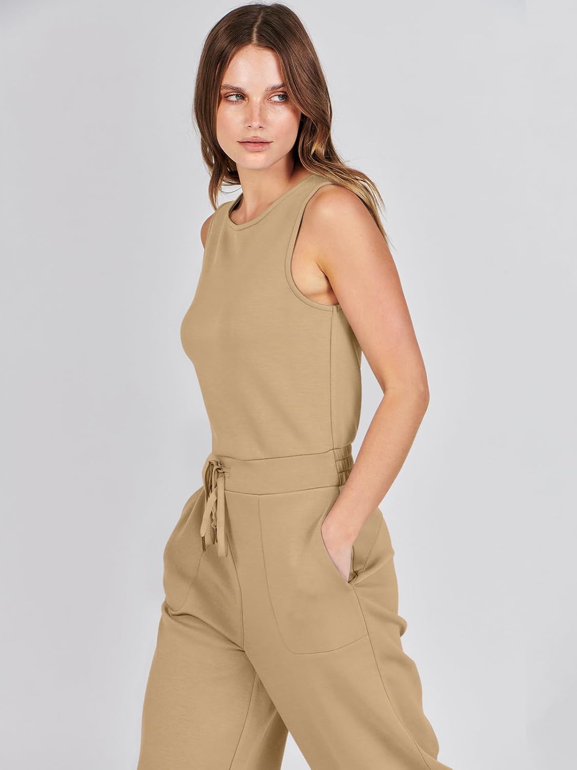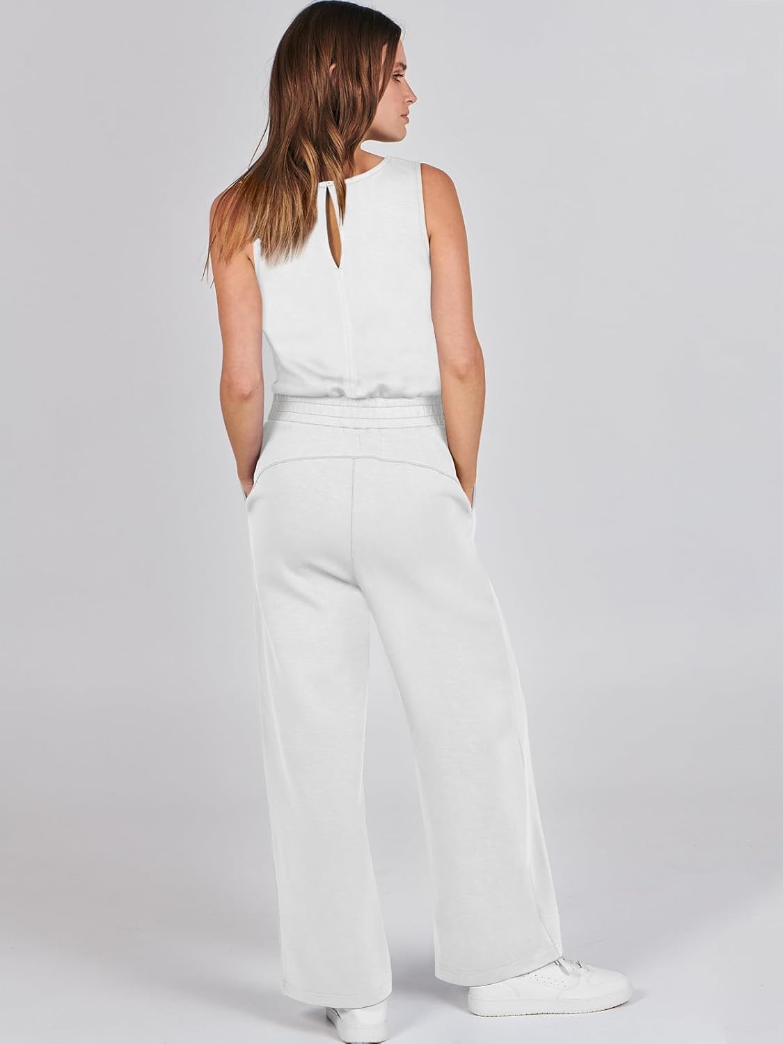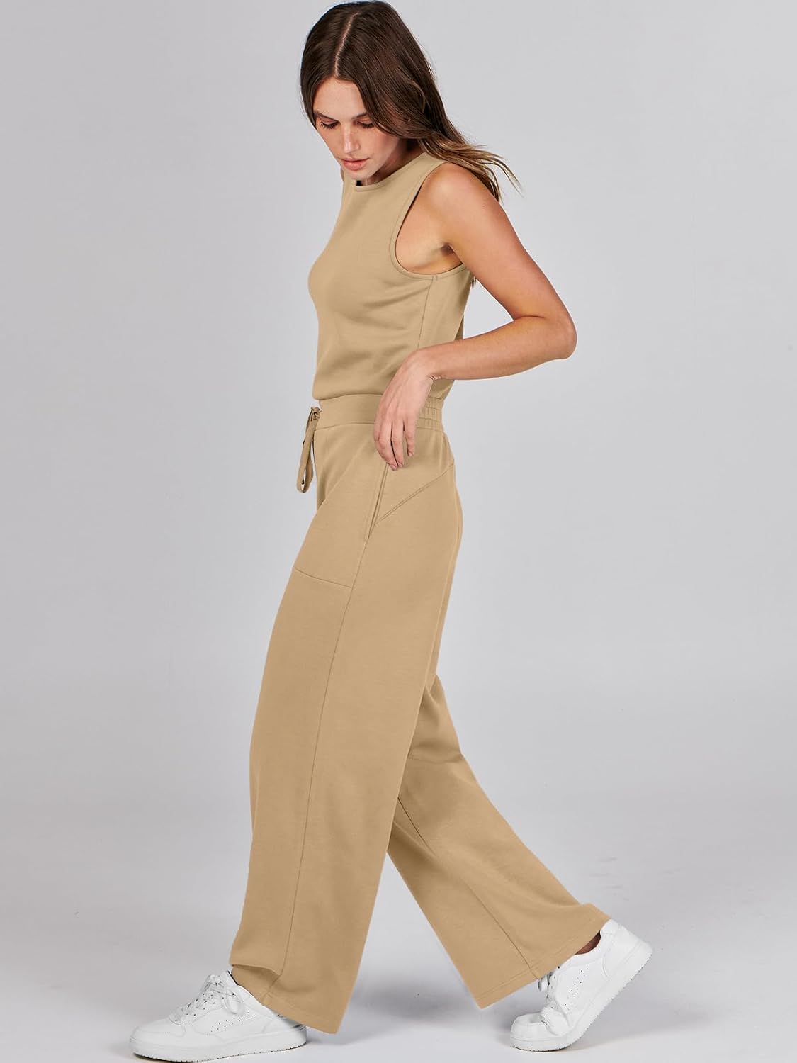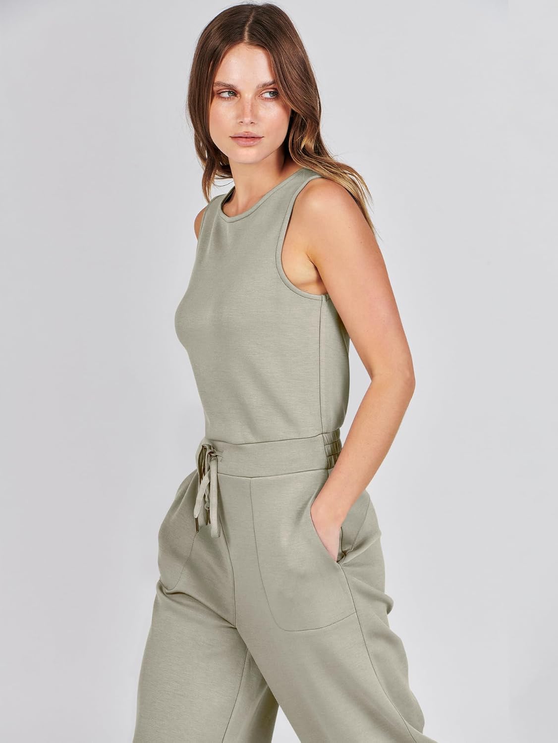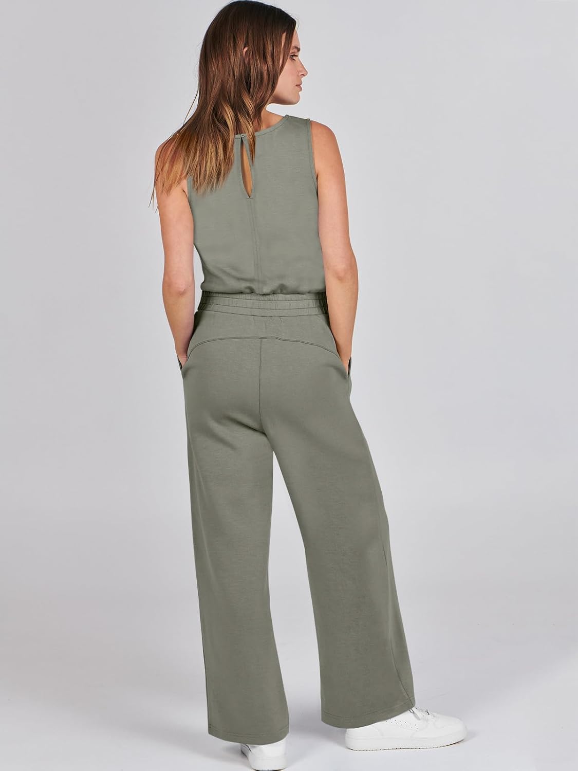 • Womens Jumpsuits 2025 Casual Summer Dressy Romper Sleeveless Wide Leg Long Pants Outfits Fashion Travel Clothes