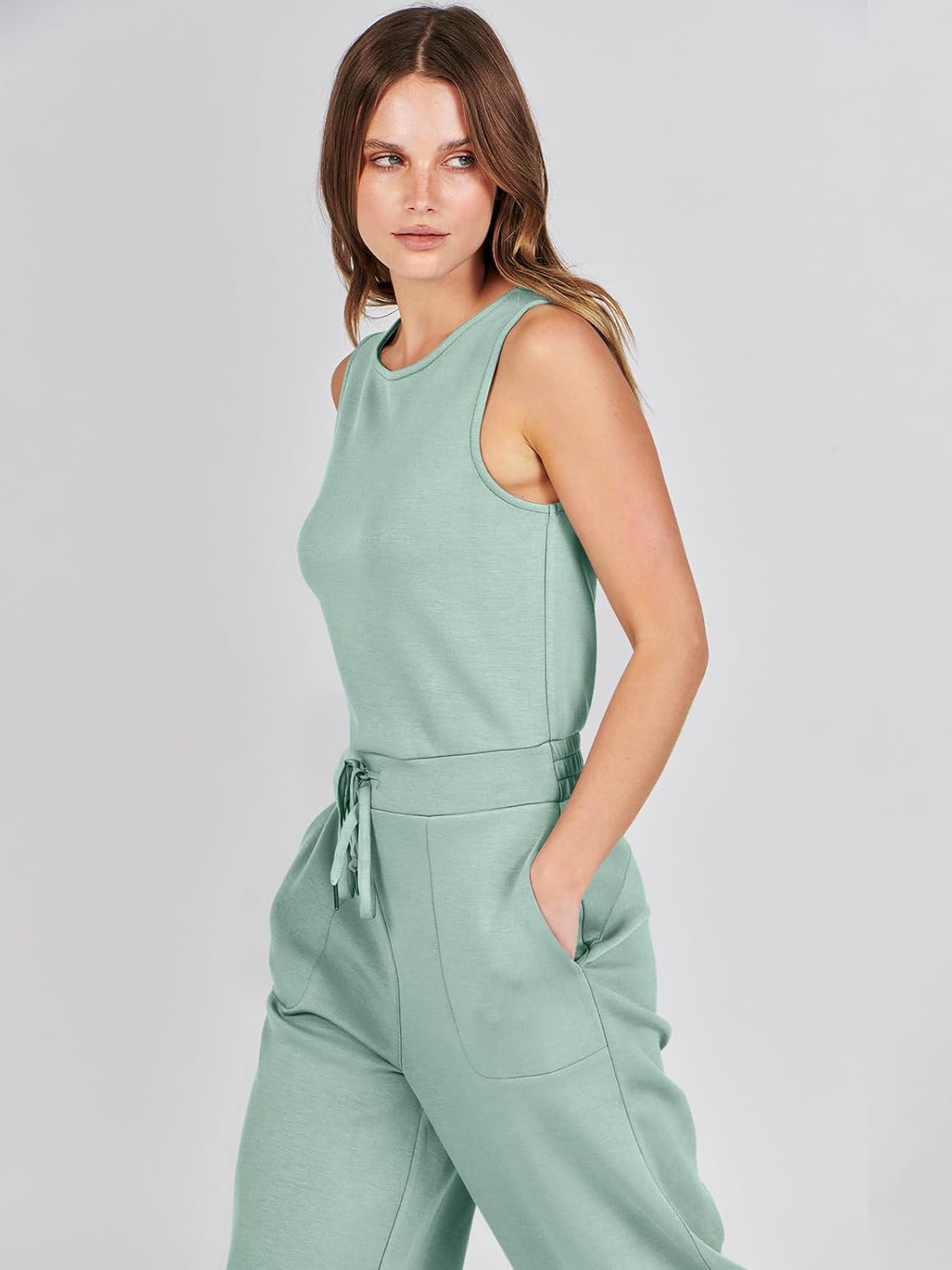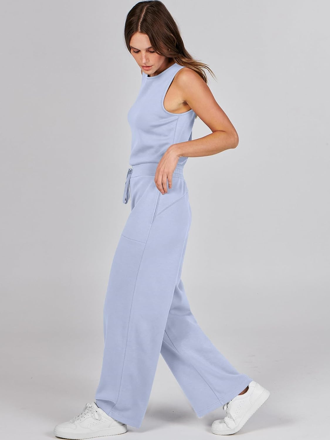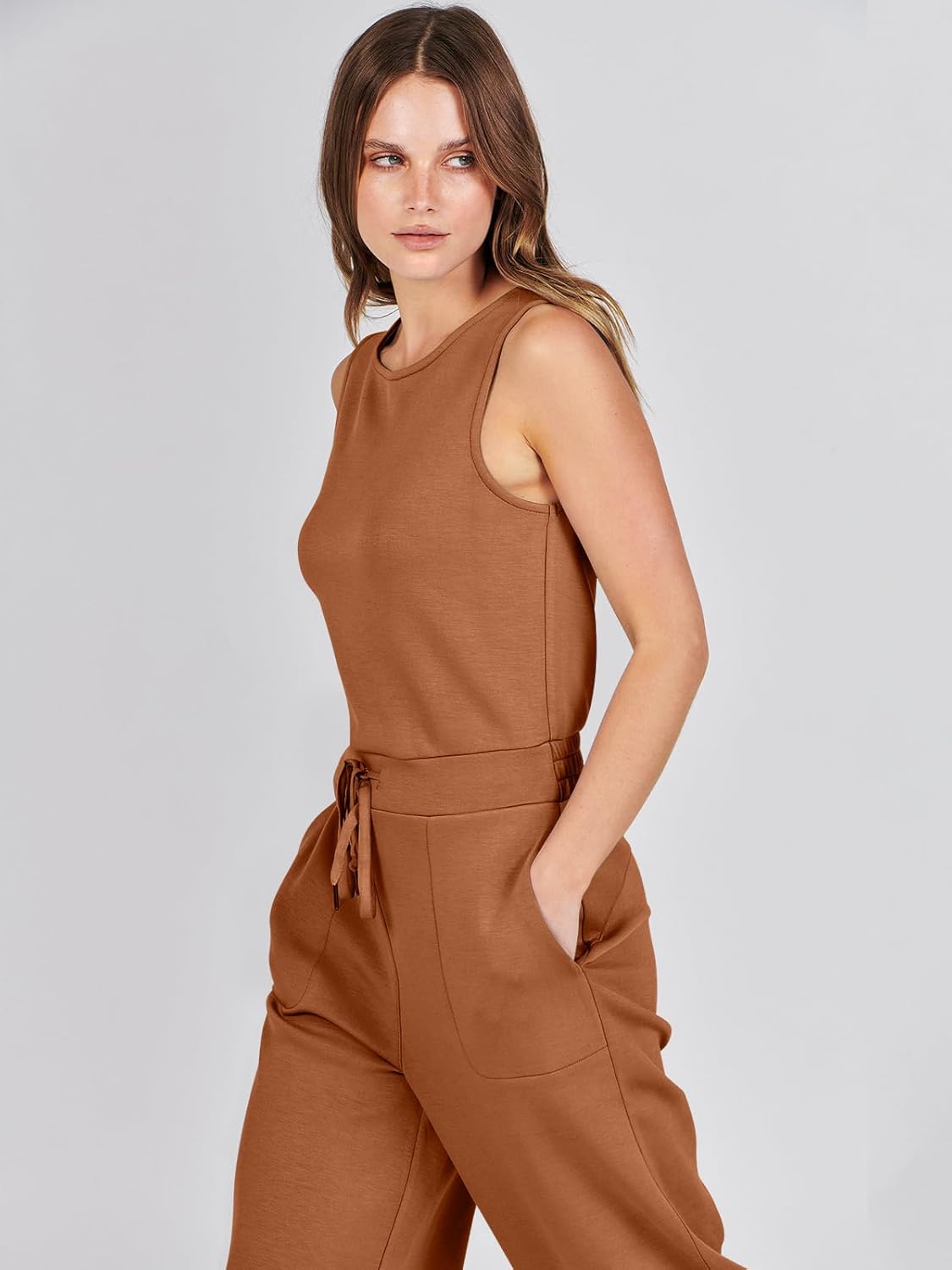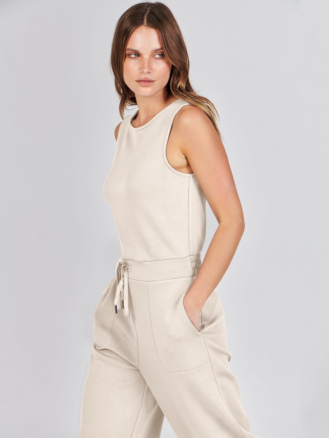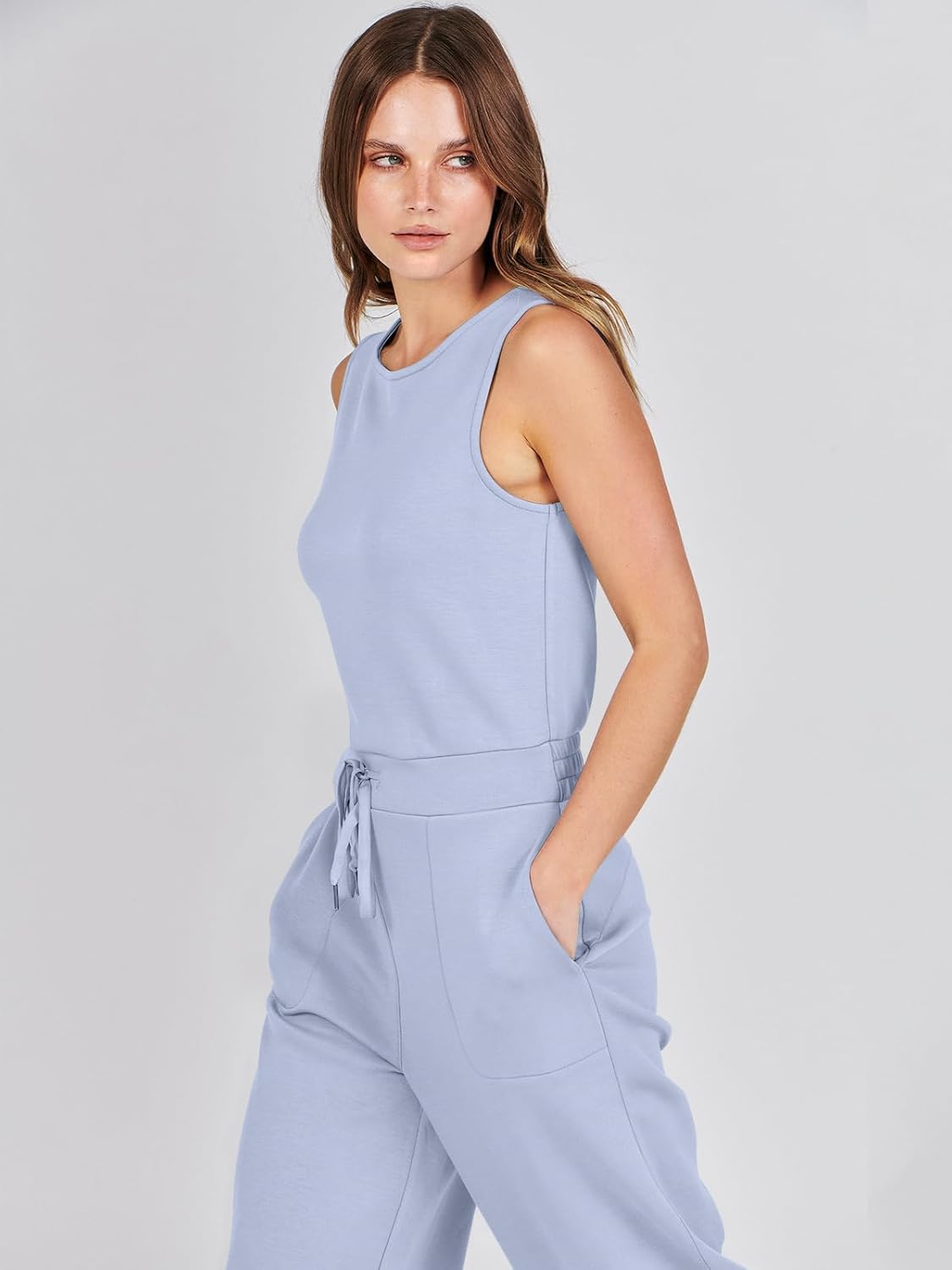 • Womens Jumpsuits 2025 Casual Summer Dressy Romper Sleeveless Wide Leg Long Pants Outfits Fashion Travel Clothes