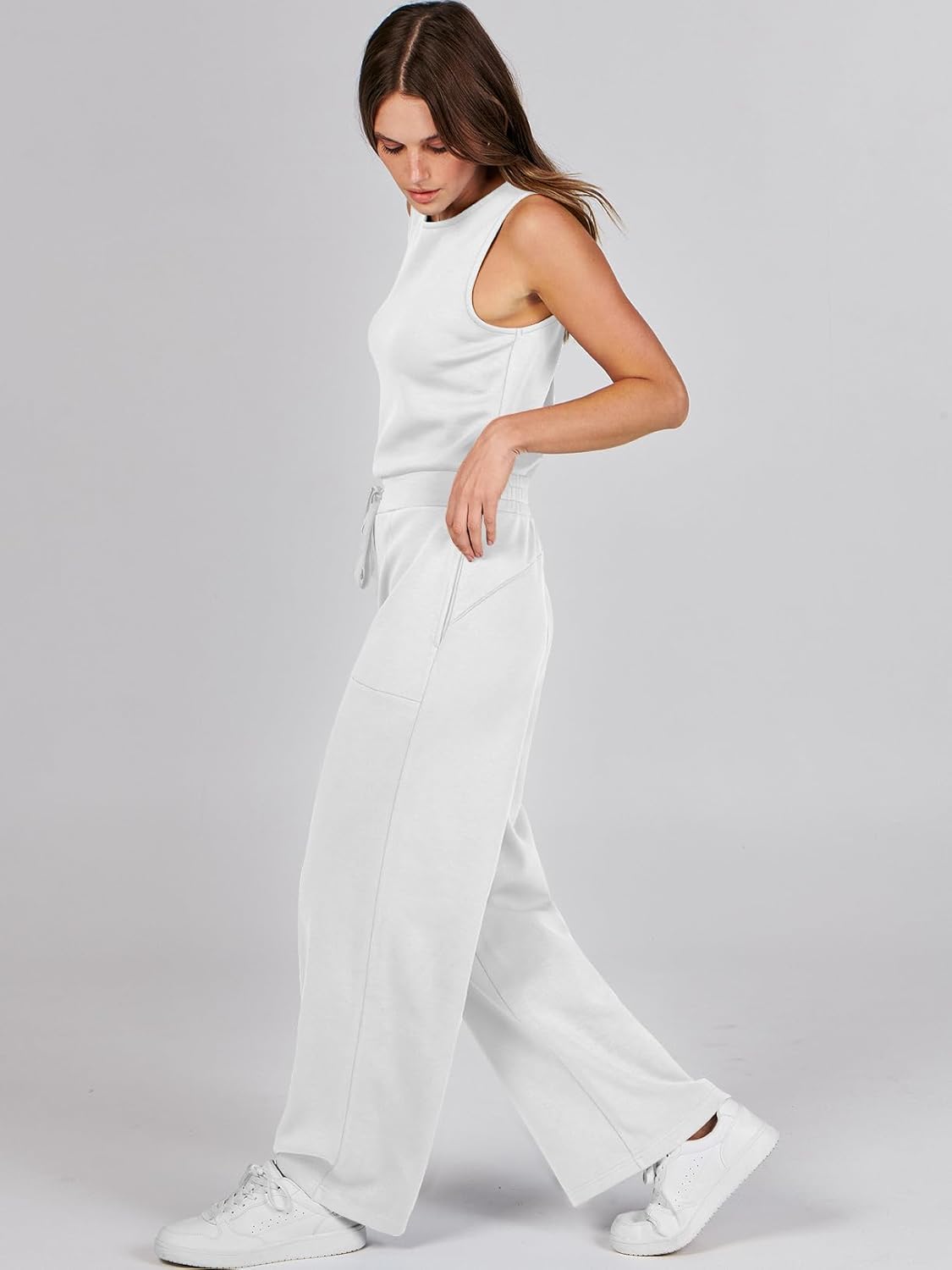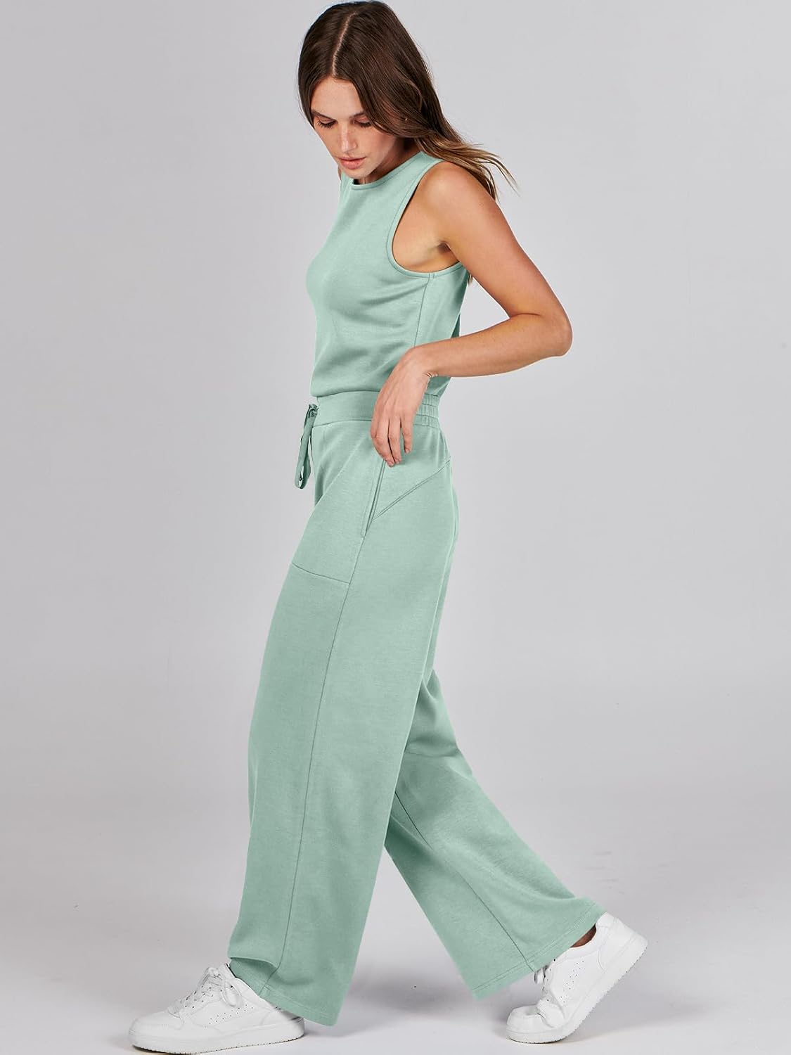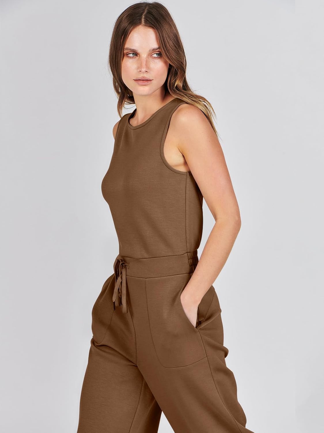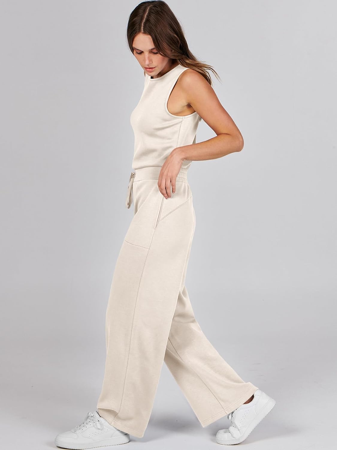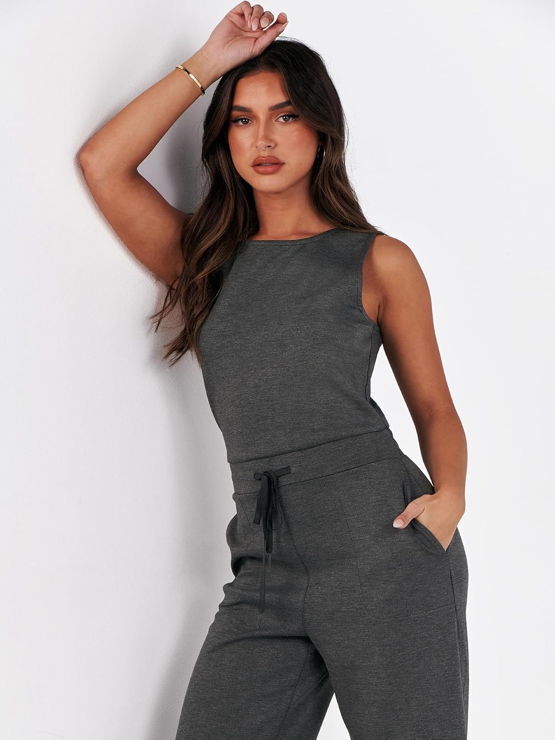 • Womens Jumpsuits 2025 Casual Summer Dressy Romper Sleeveless Wide Leg Long Pants Outfits Fashion Travel Clothes