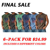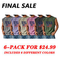 Independence Day Sale🔥  Men's Everyday Vintage American Independence Day Flag Printed Crew Neck Sleeveless Tank Top—6 packs for only $24.99 / 10 packs for only $34.99!