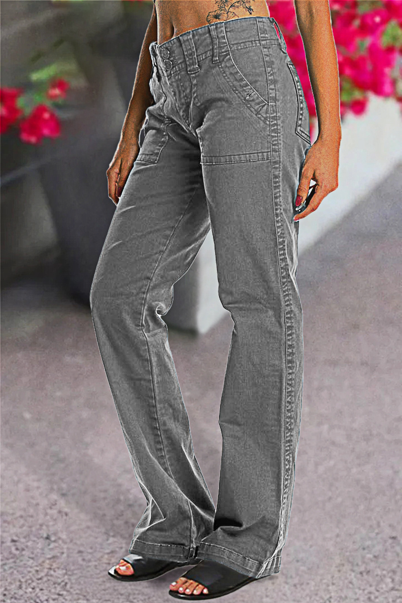 🔥Double Button Mid Waist Straight Leg Pants
