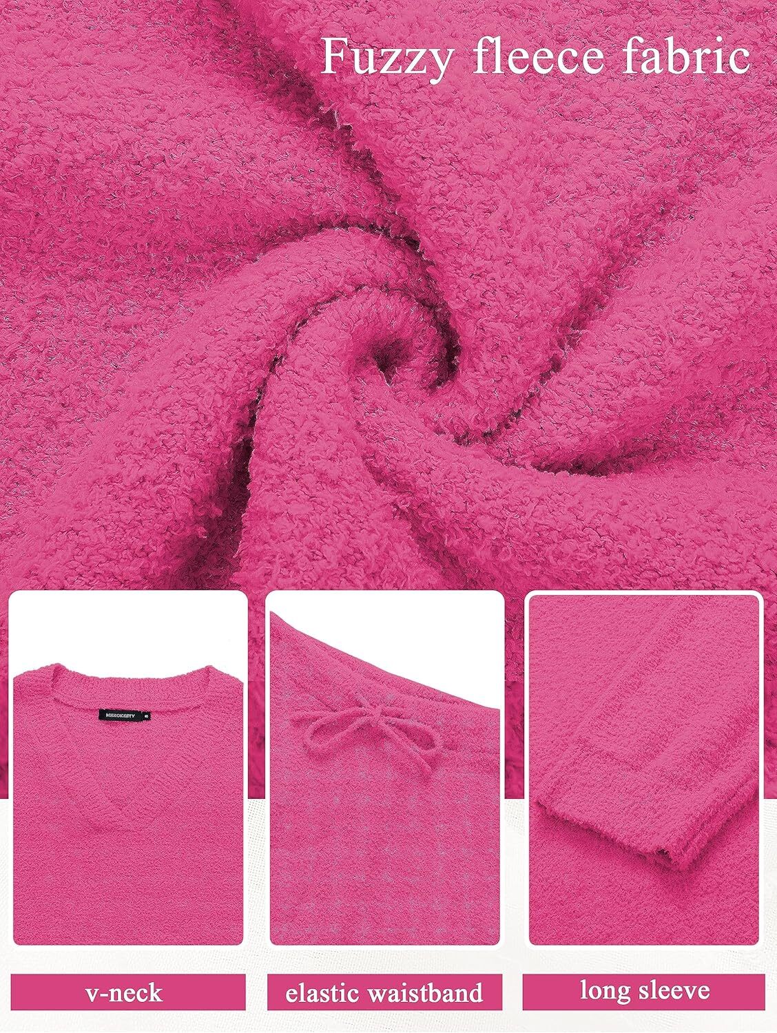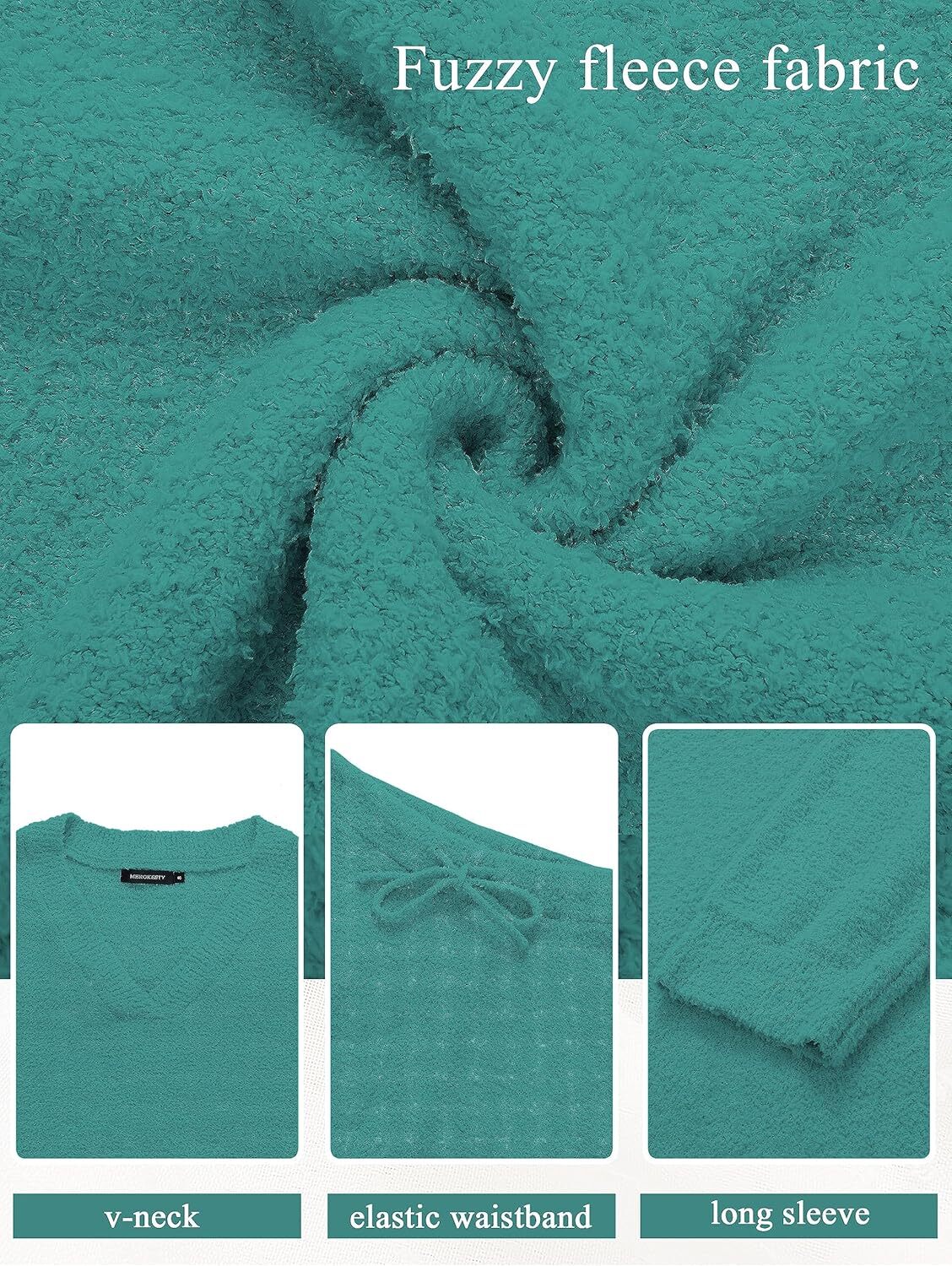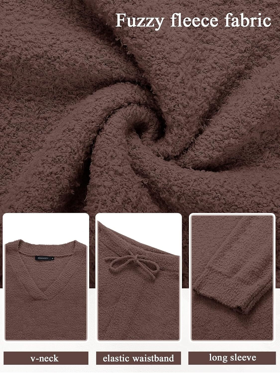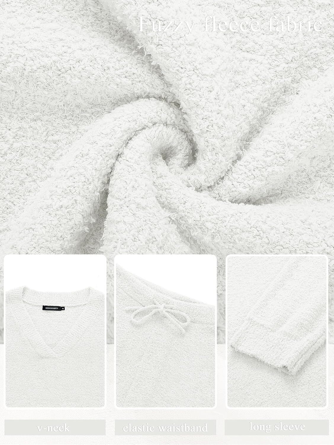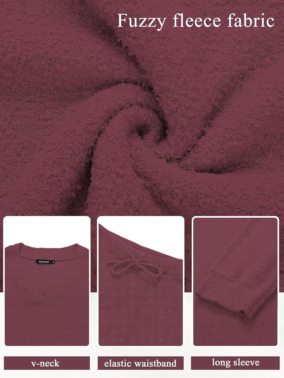 Casual Winter Pajama Set Long Sleeve V Neck Fuzzy Fleece Knitted Pj Sweater Sets