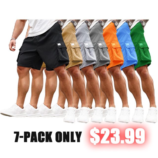 • 🔥 8-Pack Men's Plus Size Solid Flap Pocket Cargo Shorts
