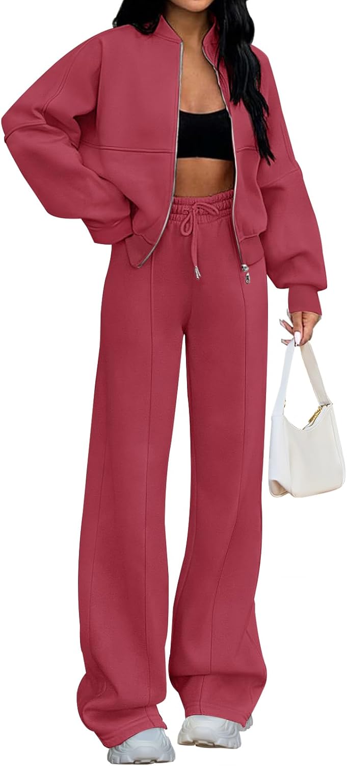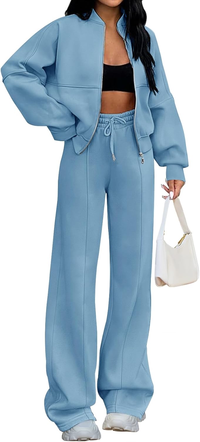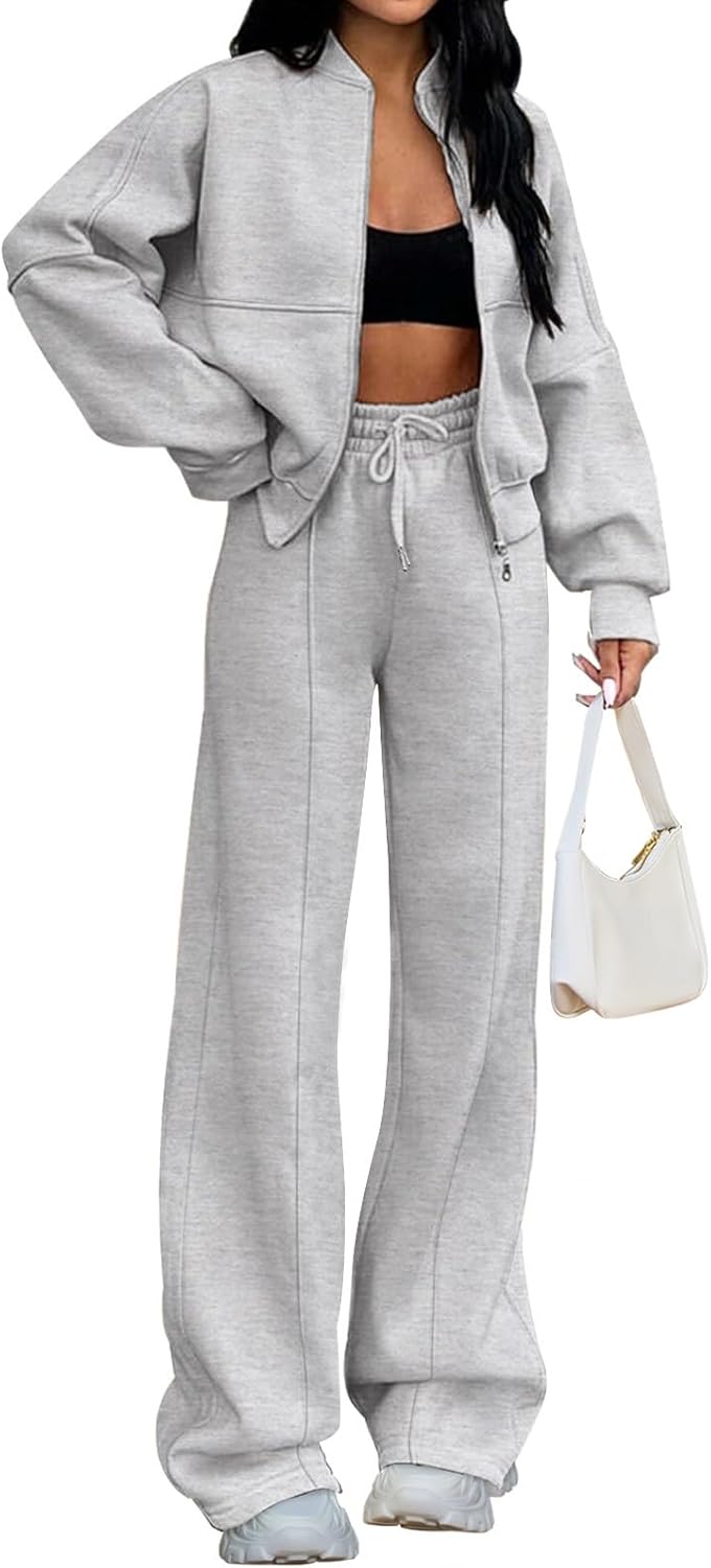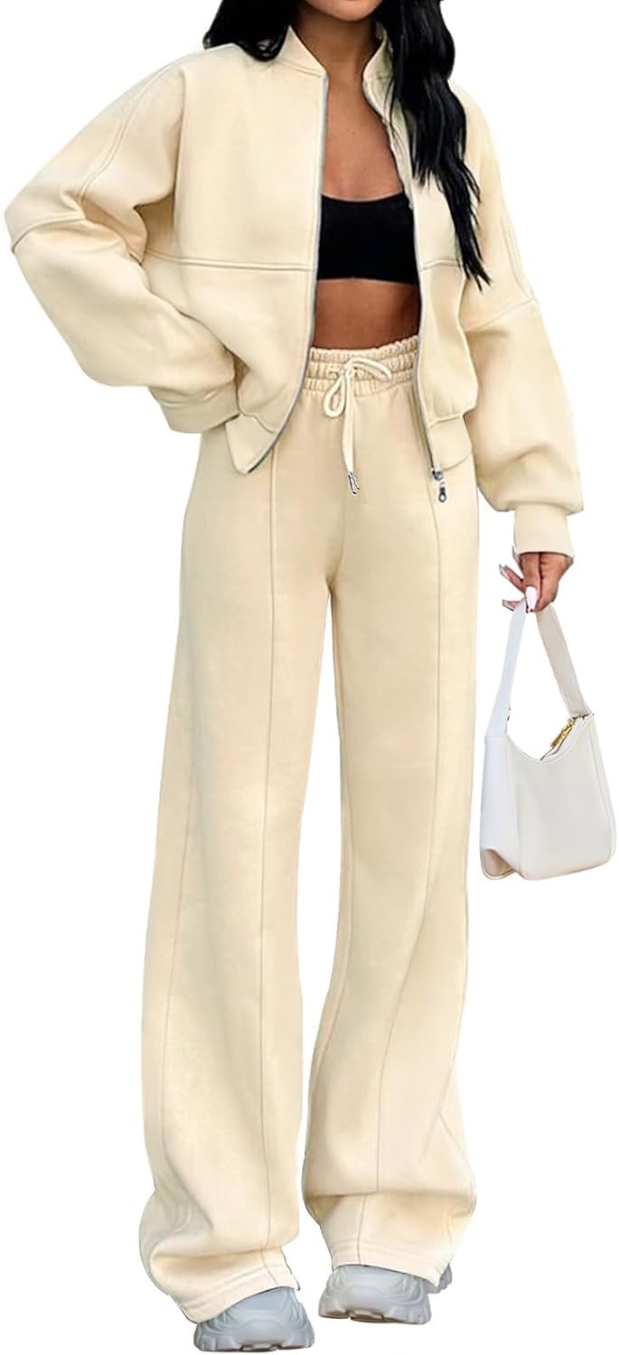 Versatile Style Zip-up jacket and wide-leg sweatpants can be worn together or separately for different looks.