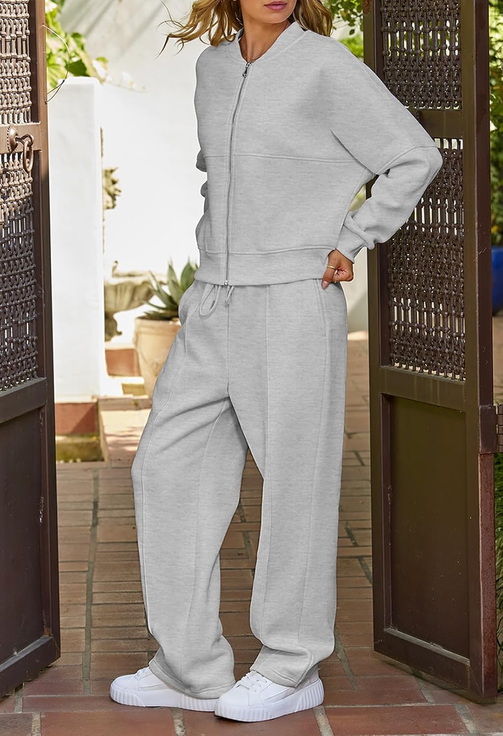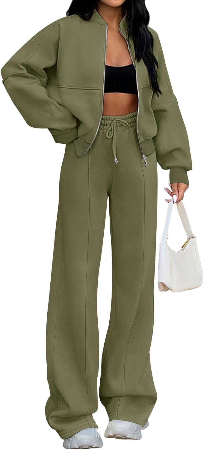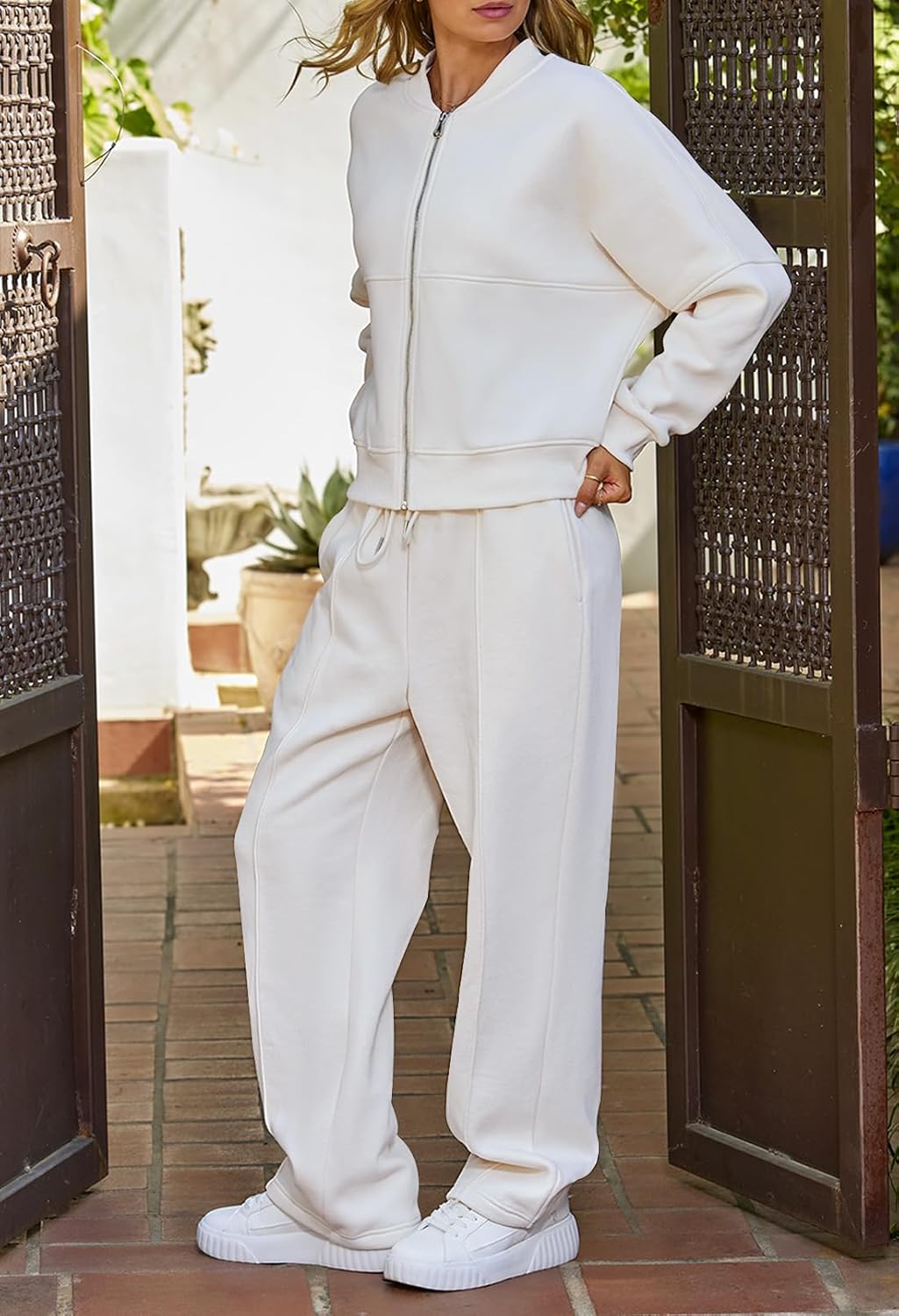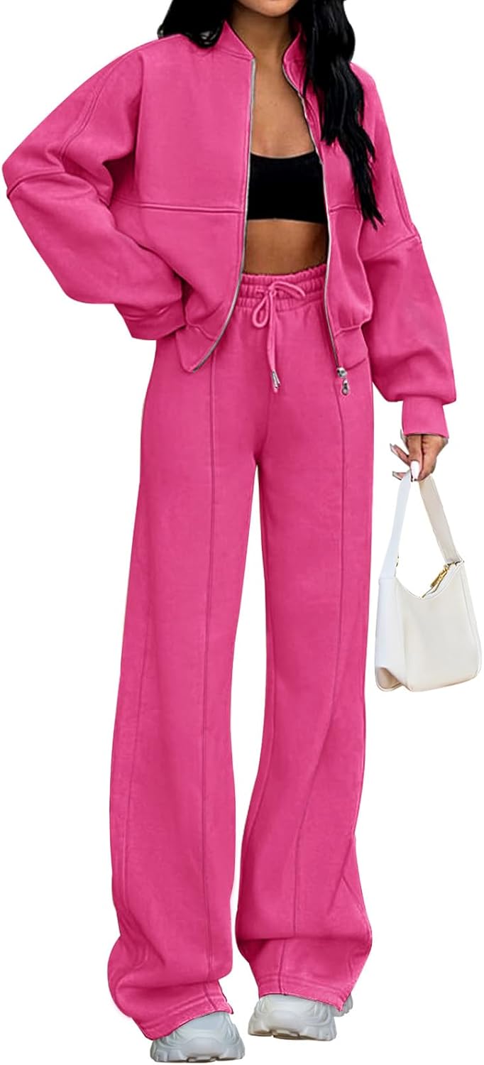 Versatile Style Zip-up jacket and wide-leg sweatpants can be worn together or separately for different looks.
