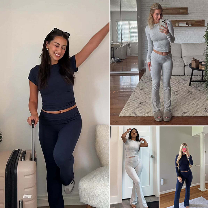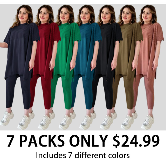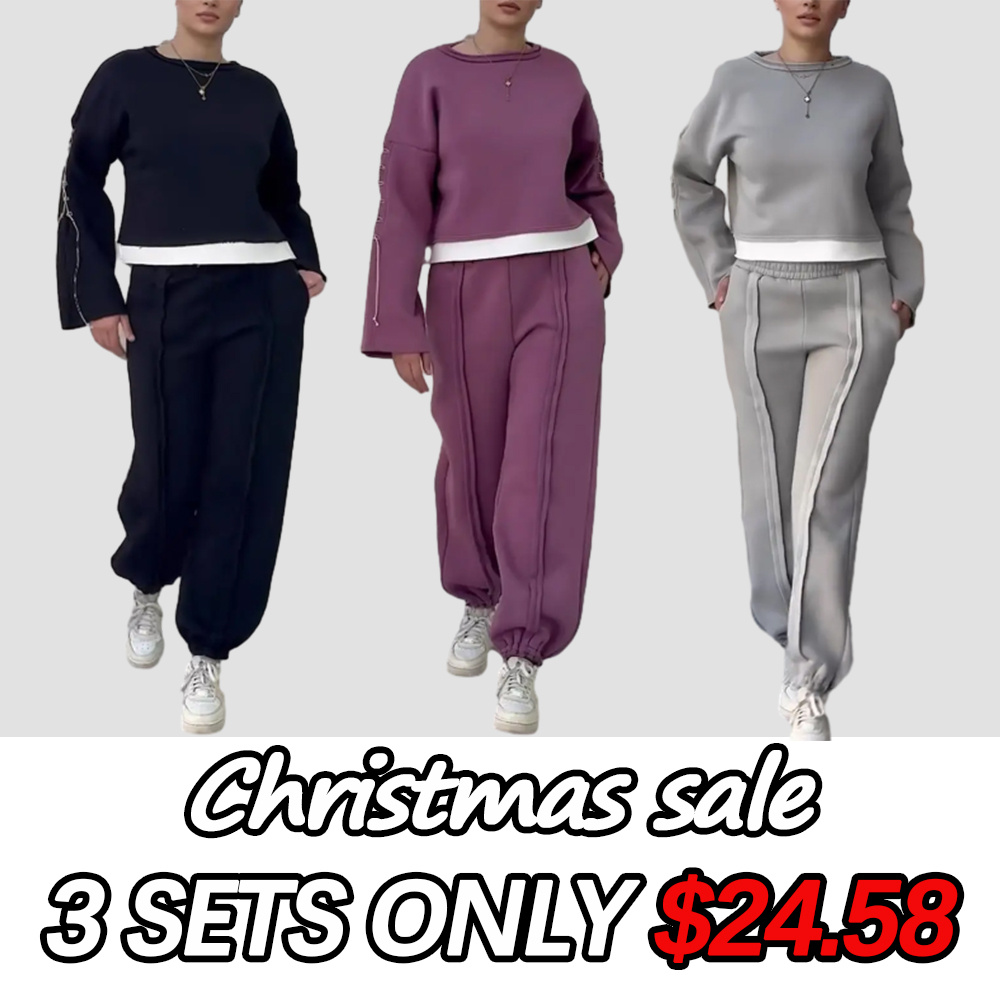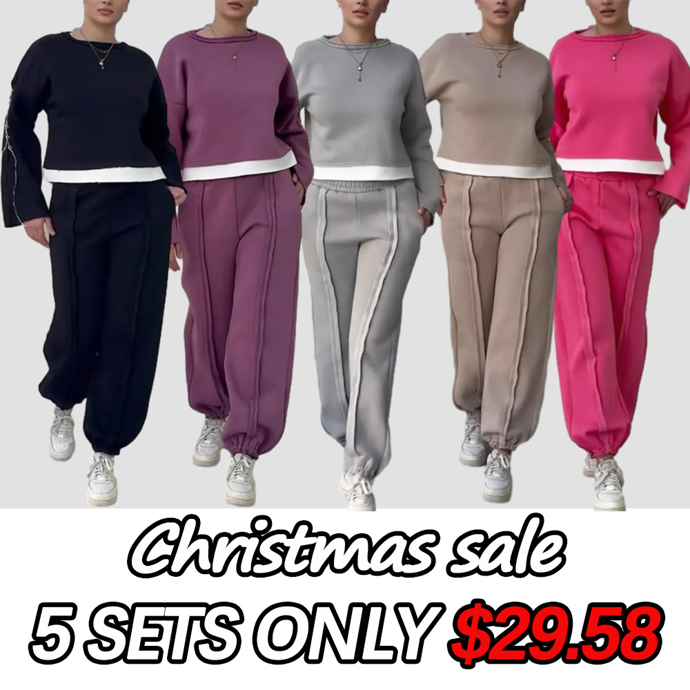 🎉Christmas Deals🎉Women's Casual Solid Color Round Neck Long Sleeve Slit Hem Sweatshirt Leggings Set