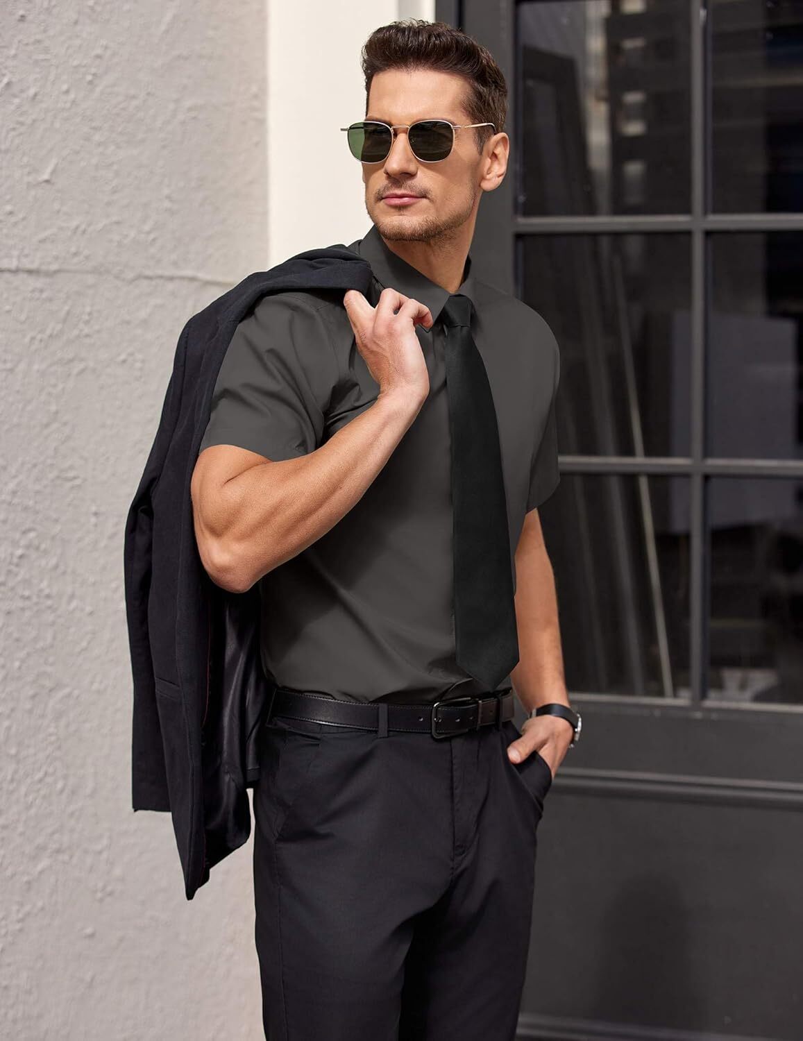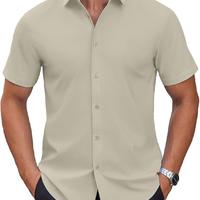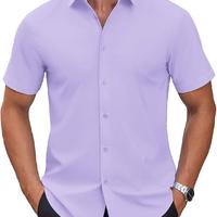 Mens Short Sleeve Dress Shirts Wrinkle Free Casual Button Down Shirts Summer Untucked Dress Shirt