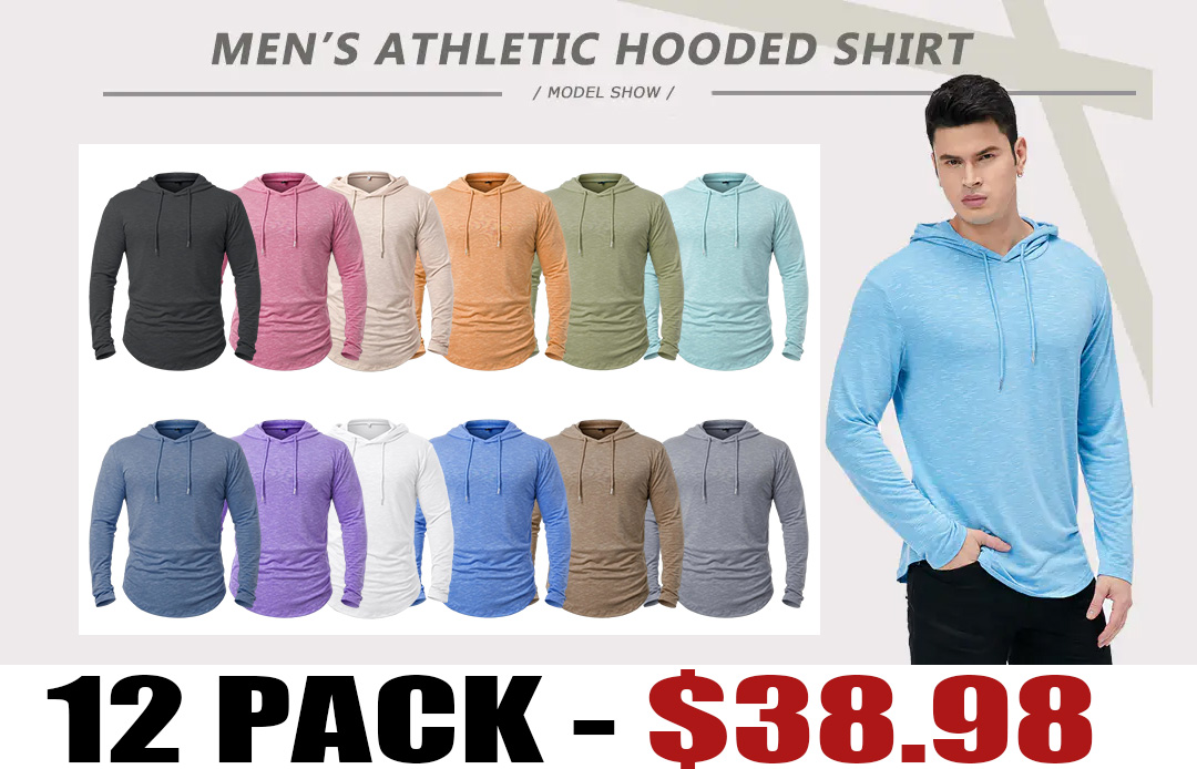 Gym Hoodie/Golf Hoodie/Athletic hoodies for men/Lightweight Long Sleeve Running Shirt/ Hooded Workout Shirt/Fishing Hoodie tops for men