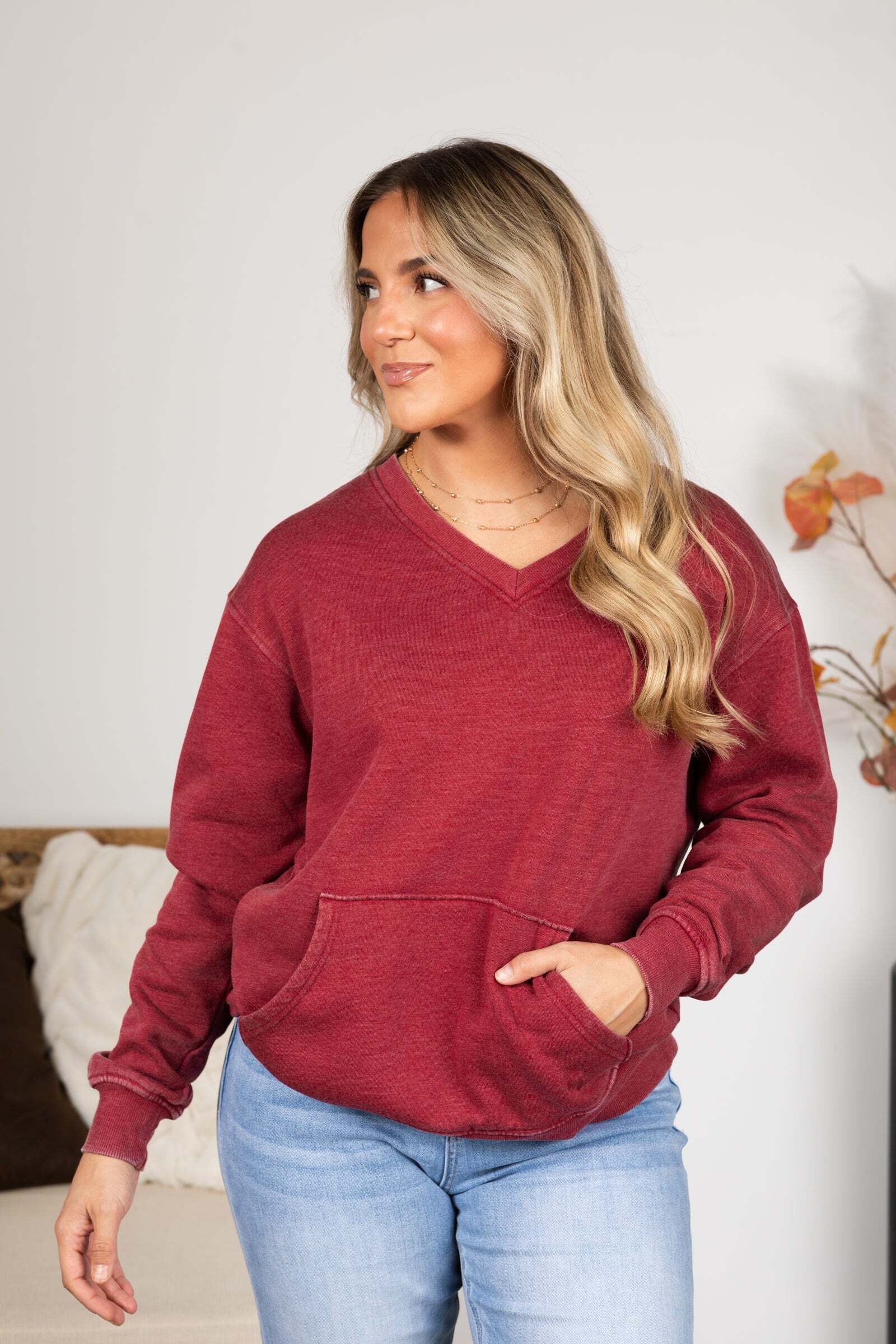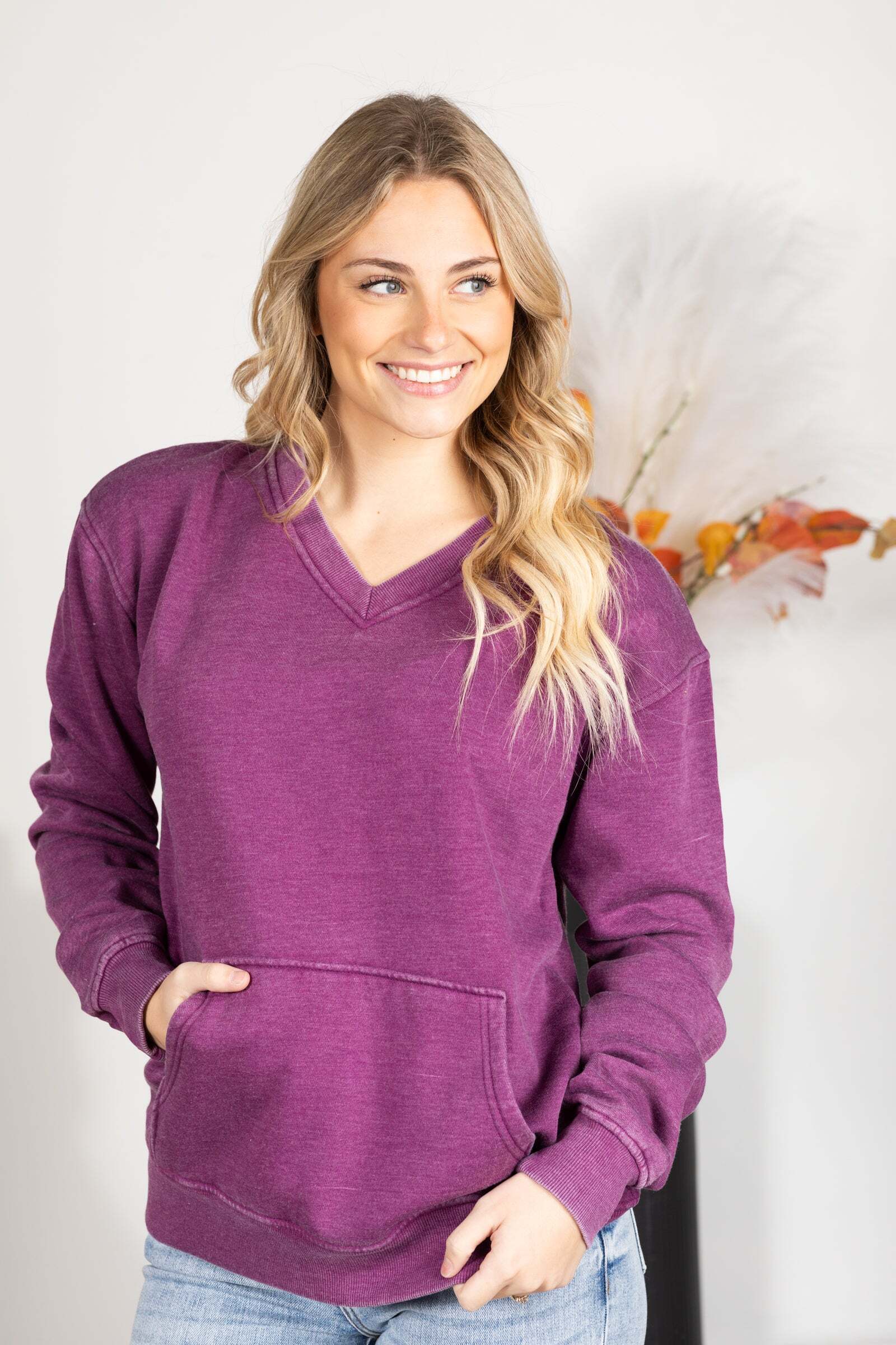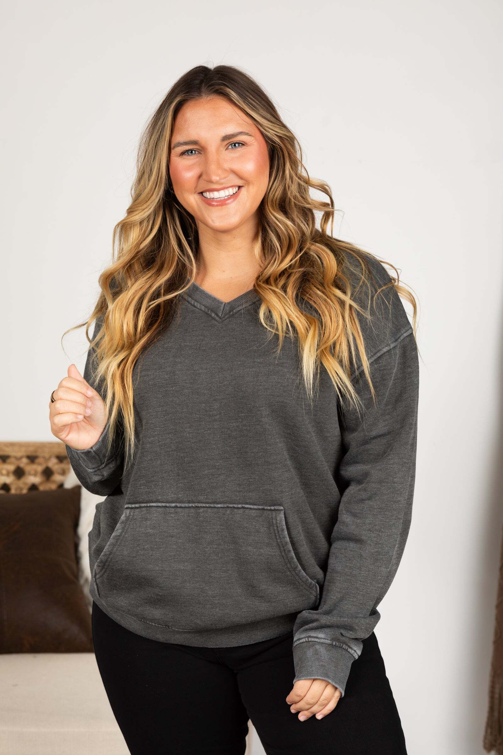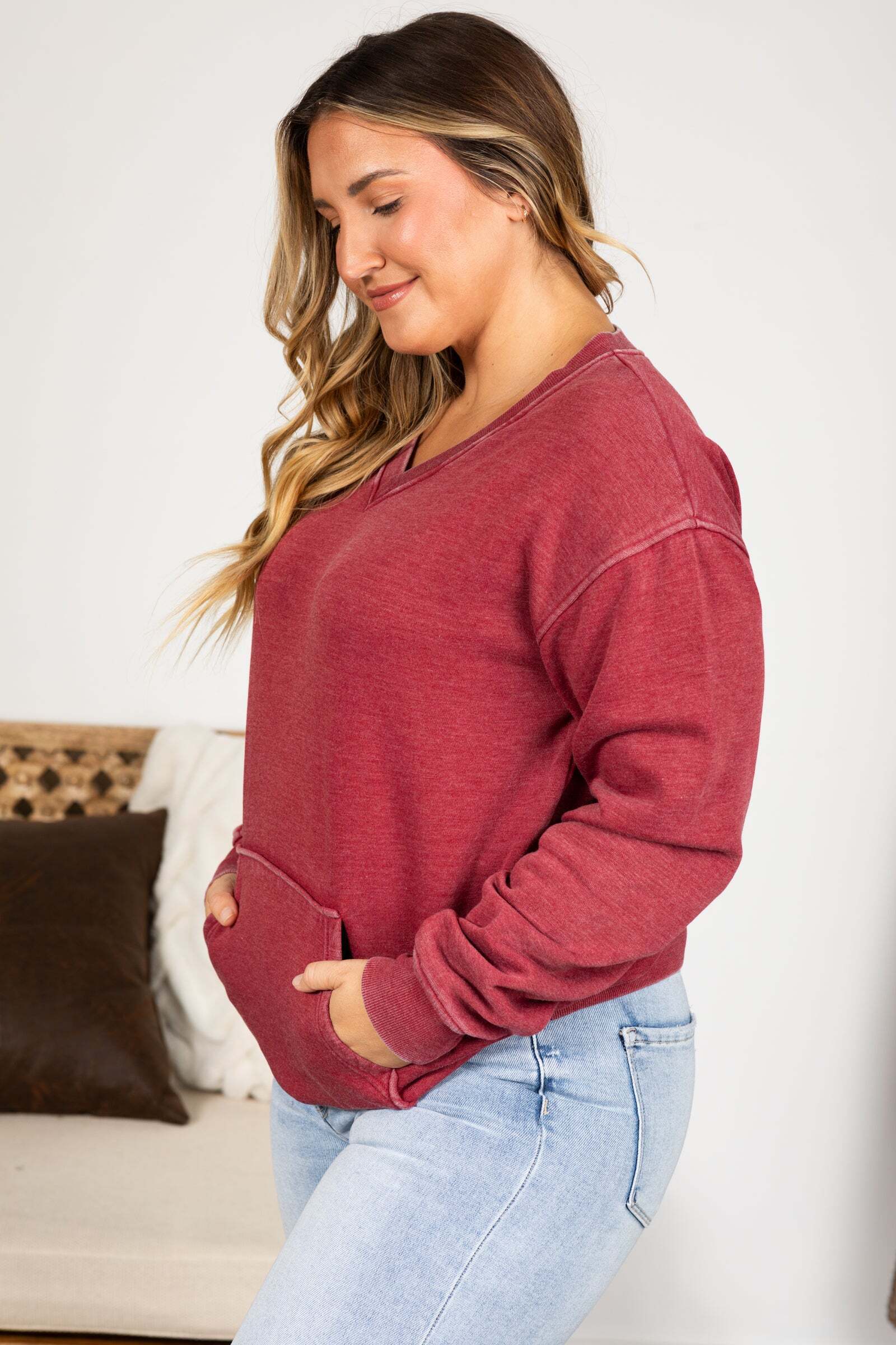 Pigment Dyed Cozy Campfire V-Neck Sweatshirt