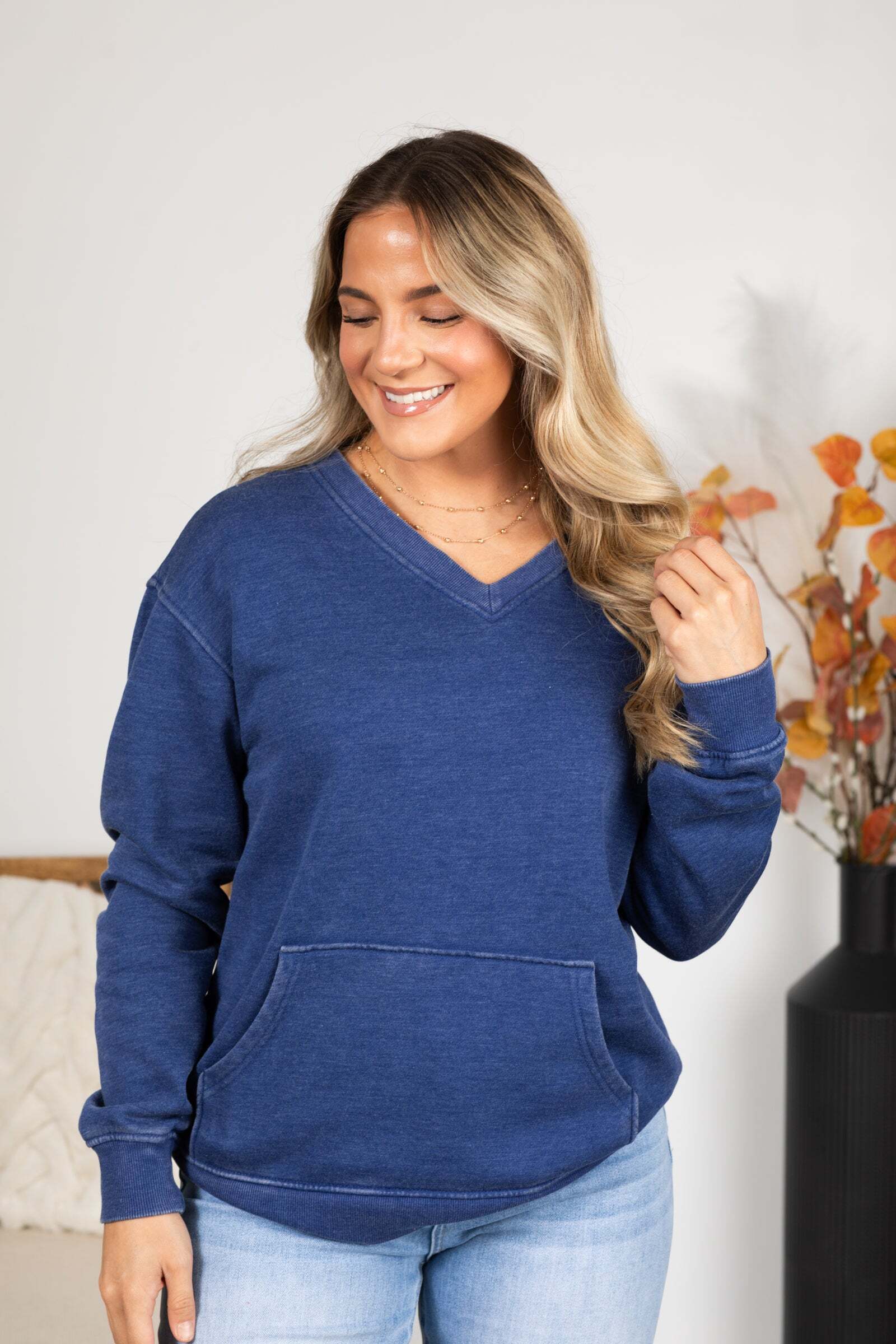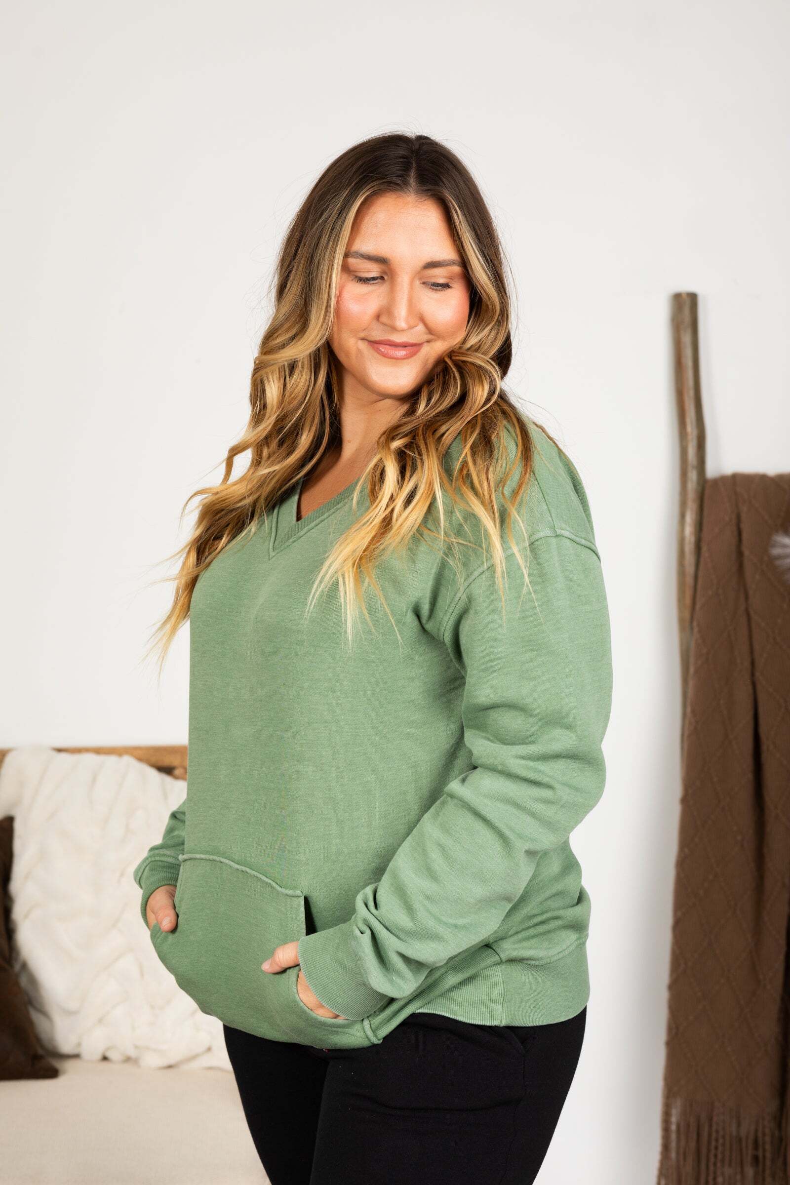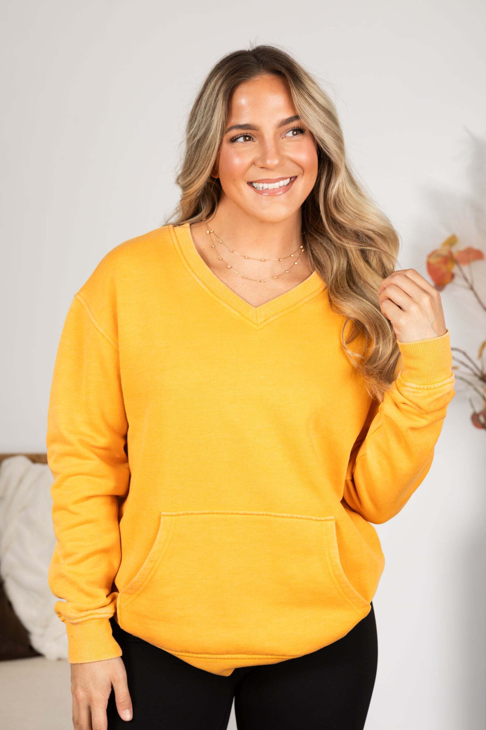 Pigment Dyed Cozy Campfire V-Neck Sweatshirt