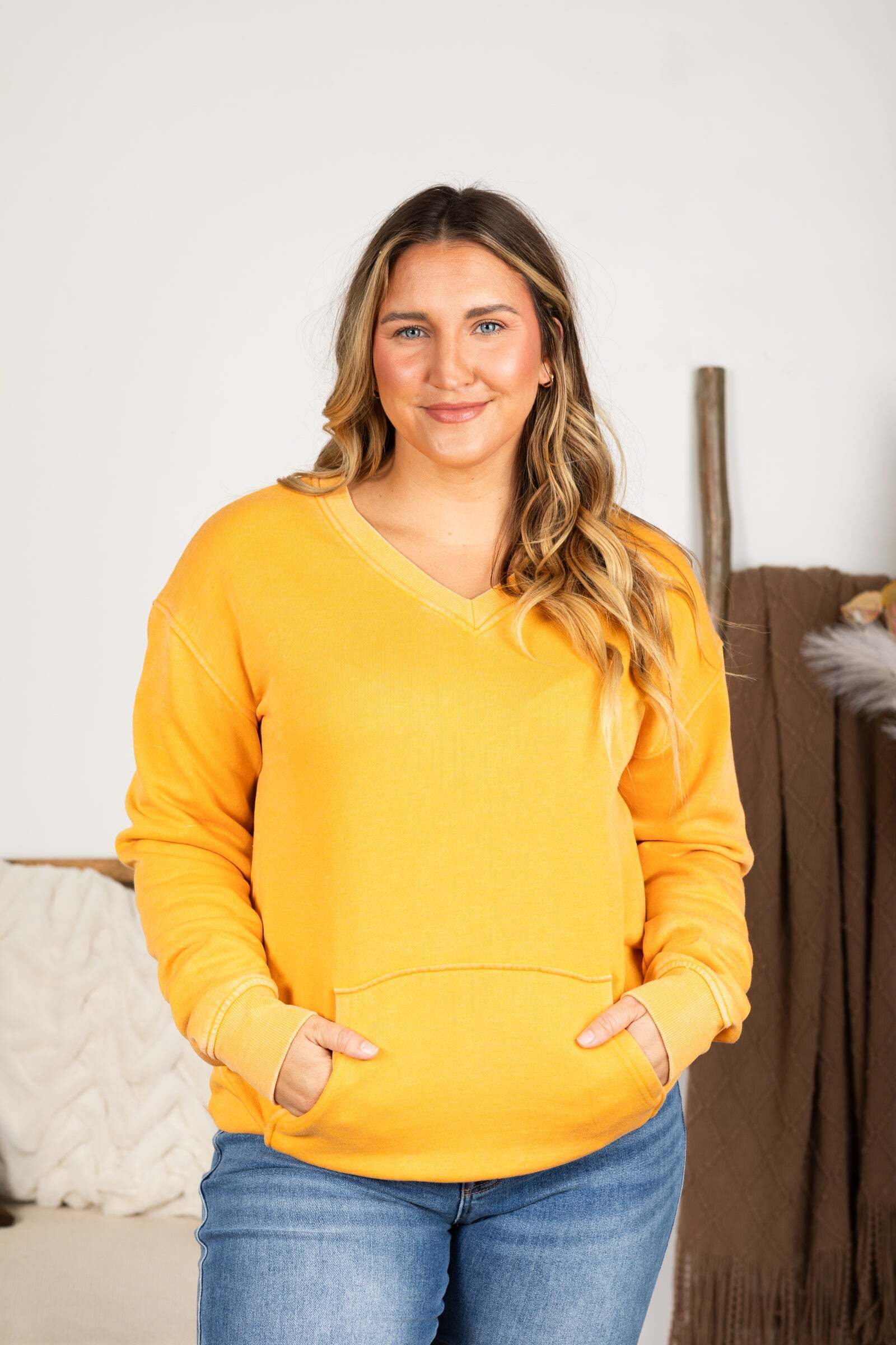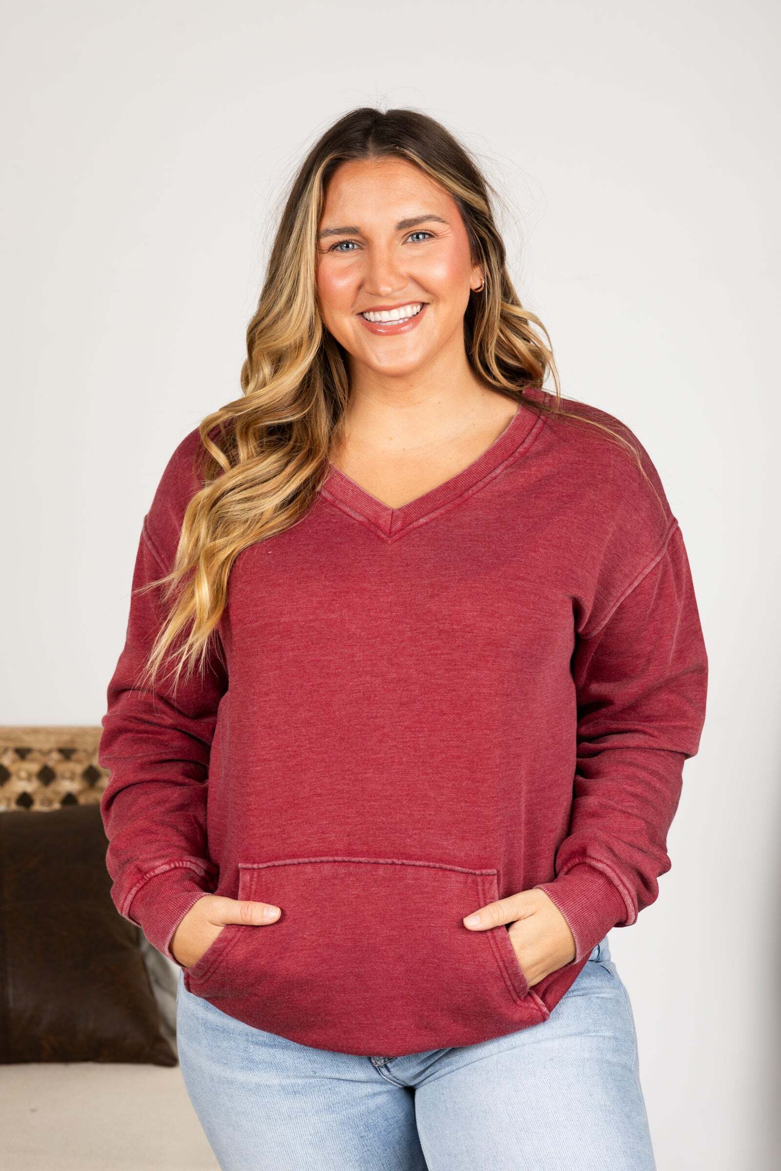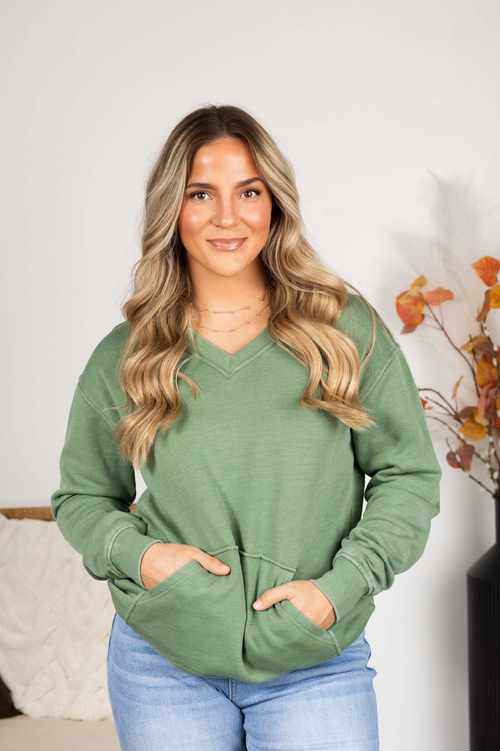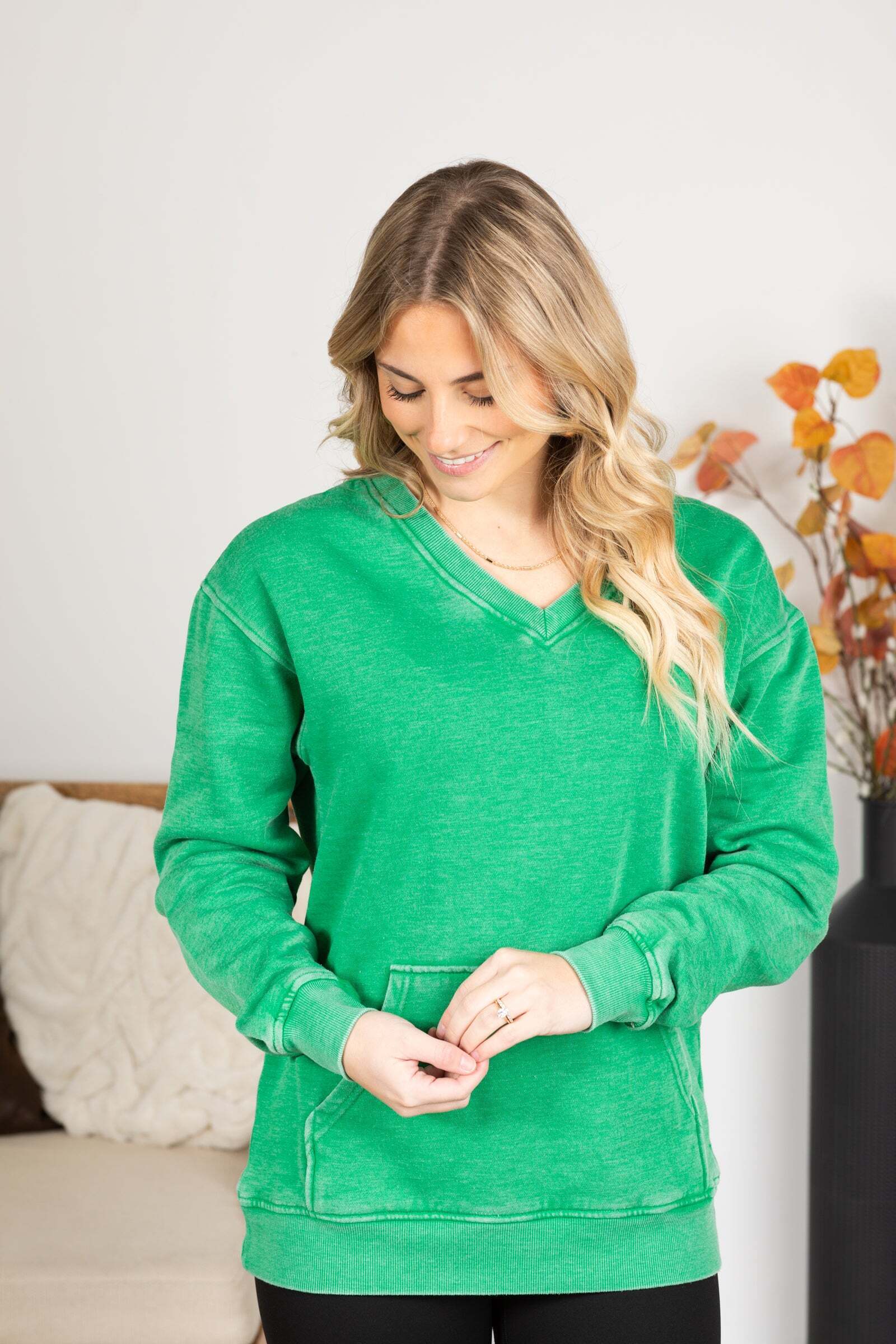 Pigment Dyed Cozy Campfire V-Neck Sweatshirt