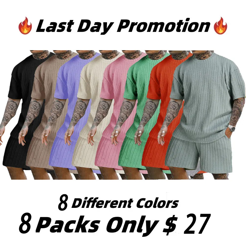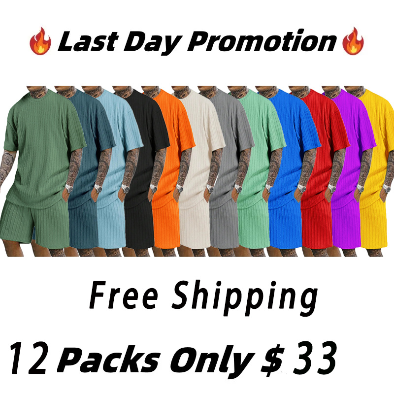 RoseSeek Men's 2 Piece Outfits Textured Drop Shoulder Summer Tops and Shorts Set