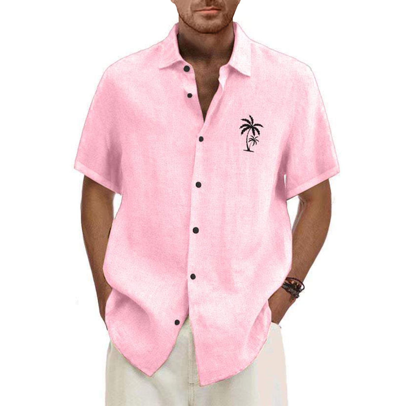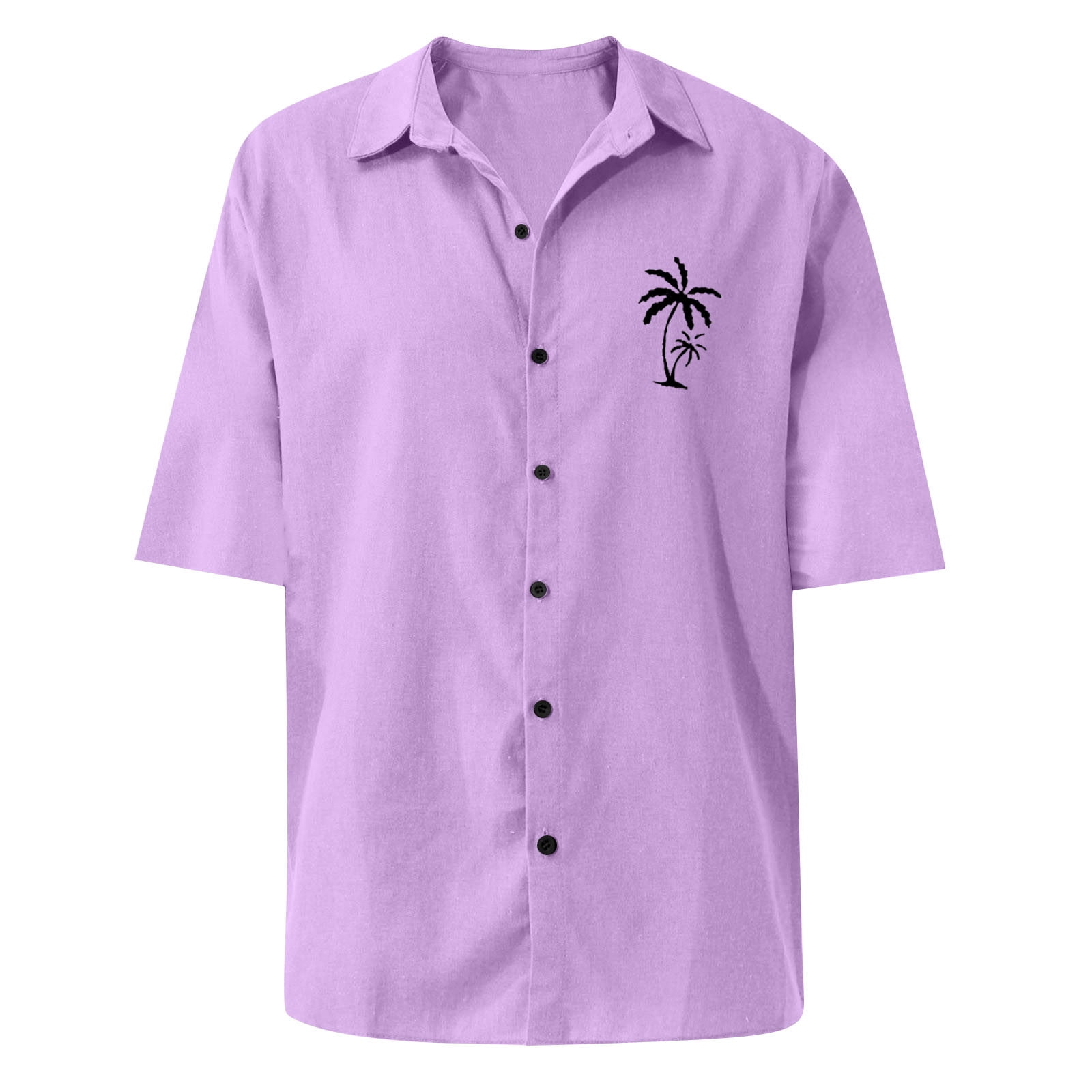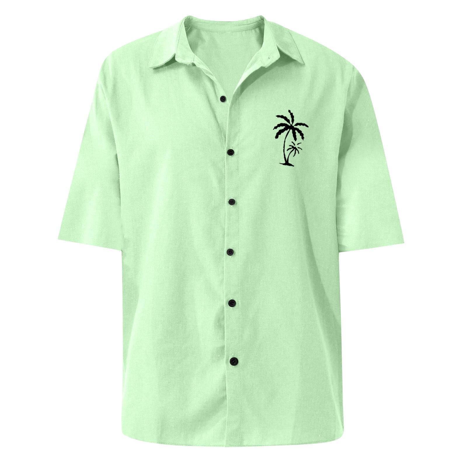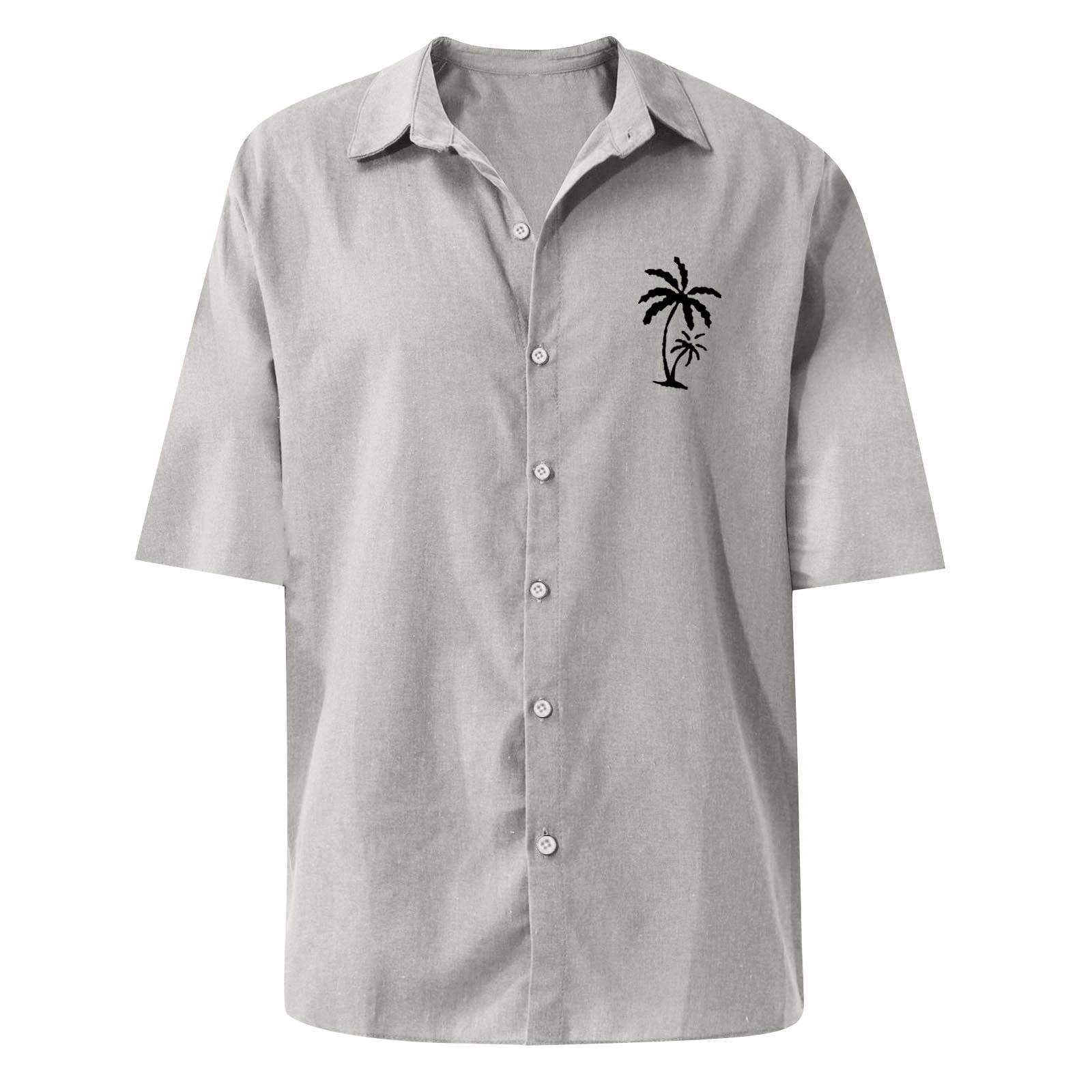 Size Chart Basic Summer Men Polo Shirt Collar Short Sleeved Beach Men's Polo Shirts, Coconut Tree Print Cardigan Loose Work Shirts for Men Polyester Button Down Polo Shirt Blue XL