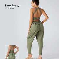 💝Last day promotion-⏰Backless Twisted U Neck Side Pocket Harem Casual Jumpsuit-Easy Peezy Edition