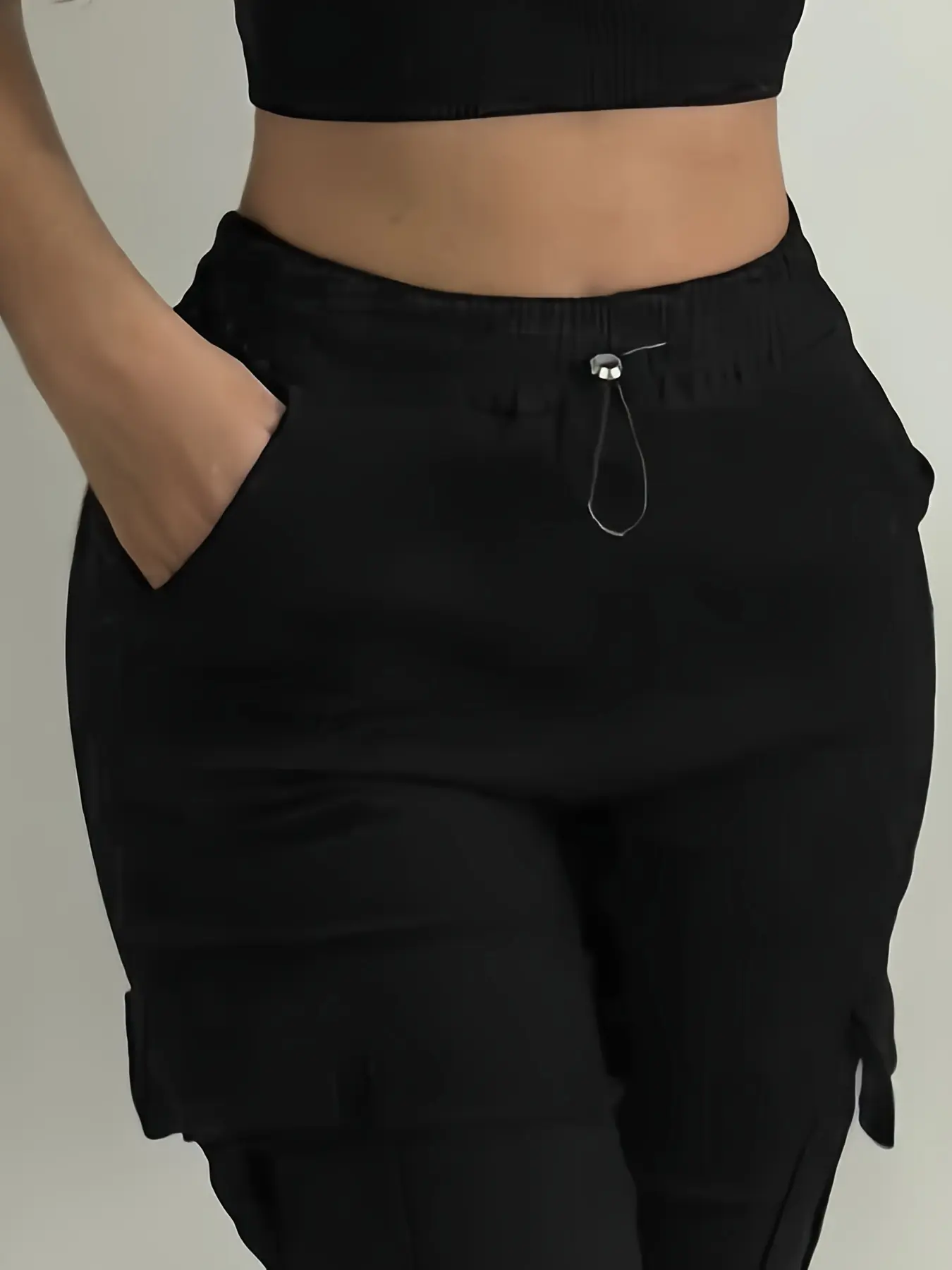 • 🔥Low Stock Alert!Pocket Design Cuffed Drawstring Pants