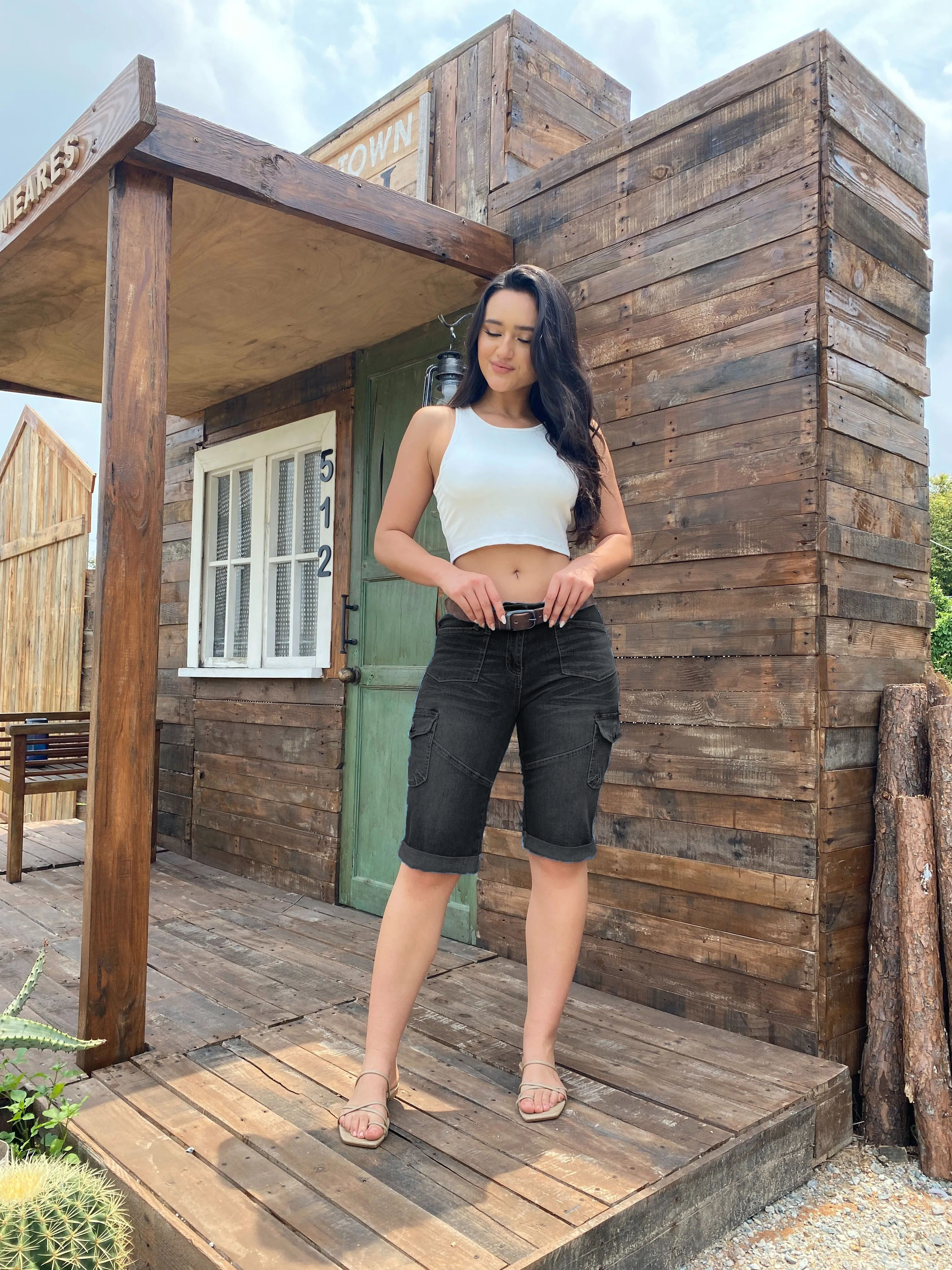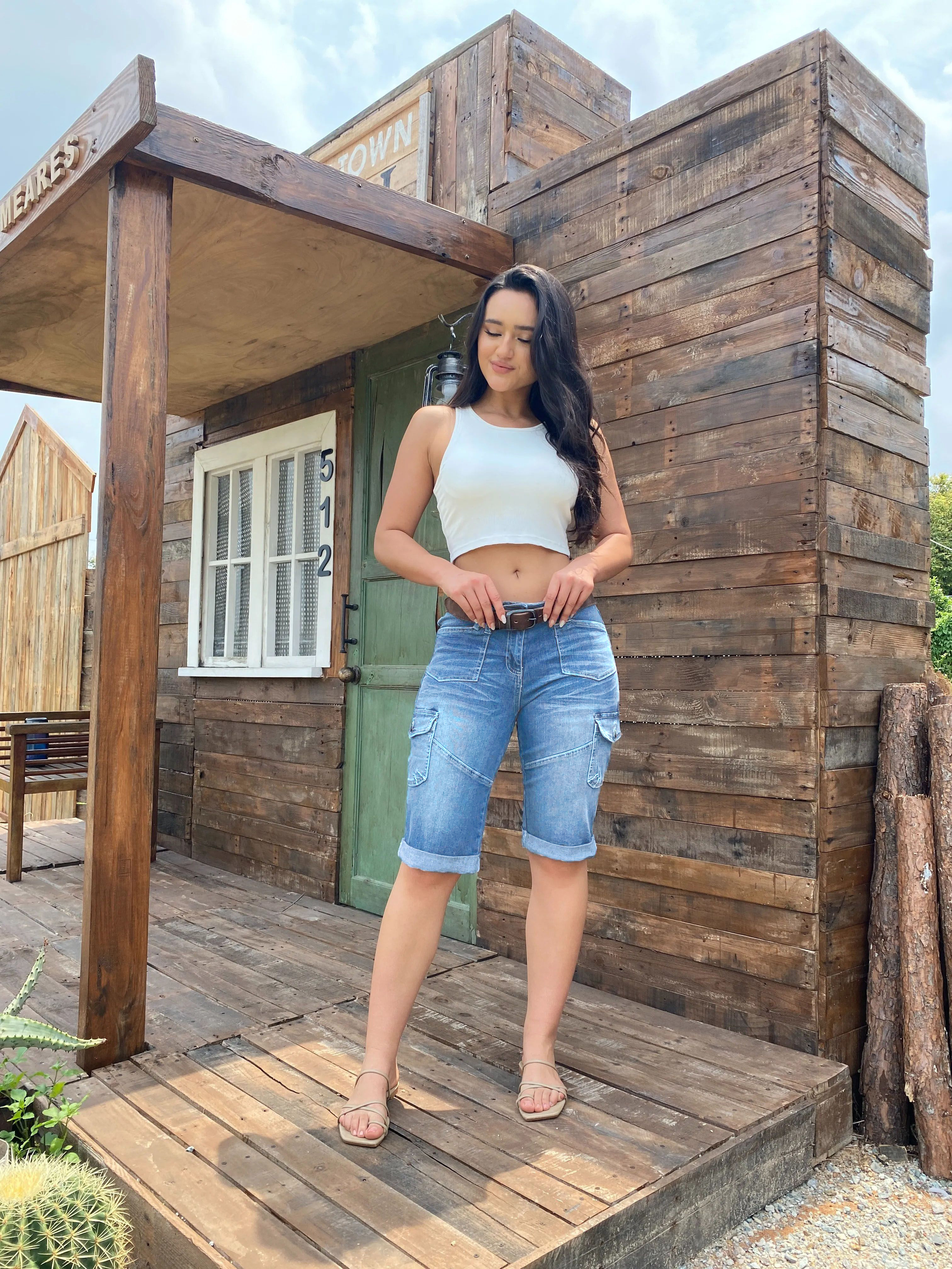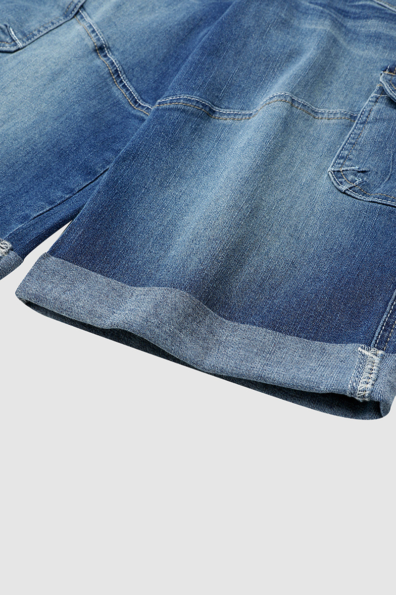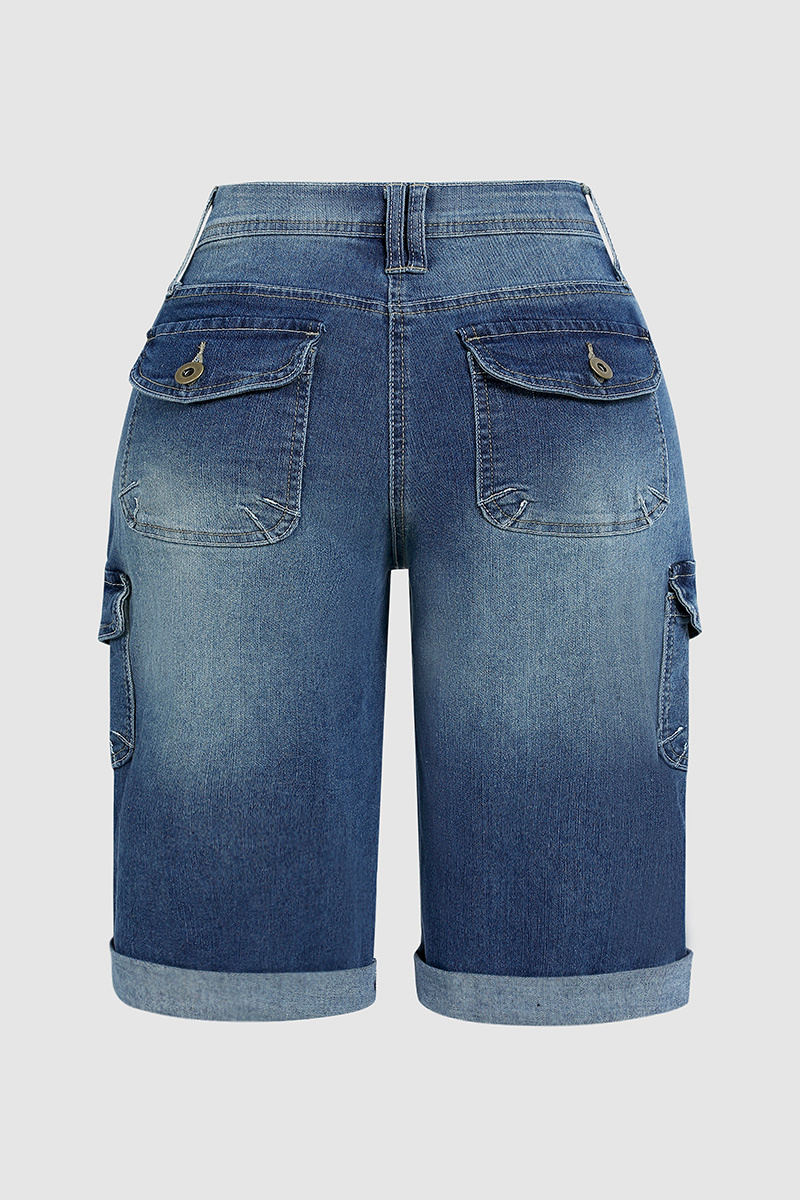 • Flap Pocket Roll Hem Denim Bermuda Shorts Without Belt